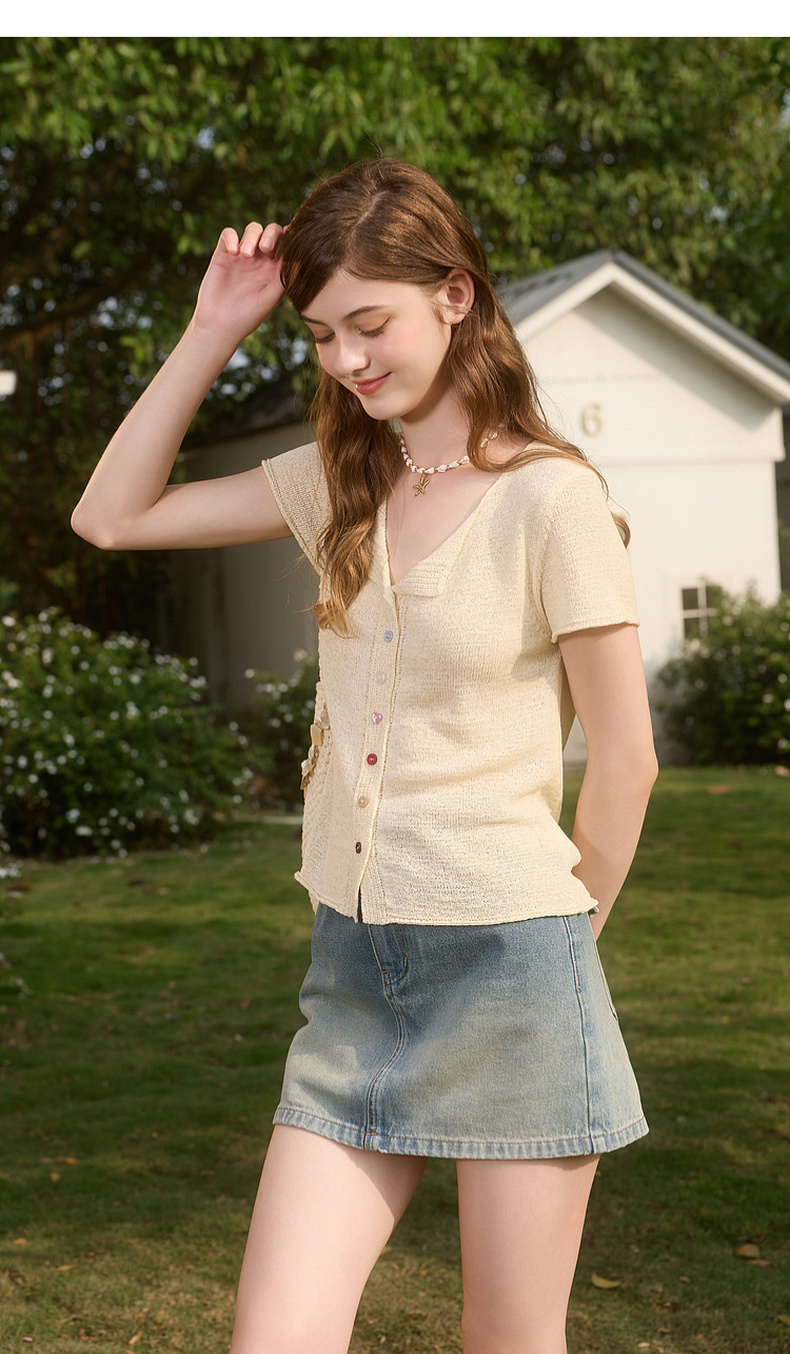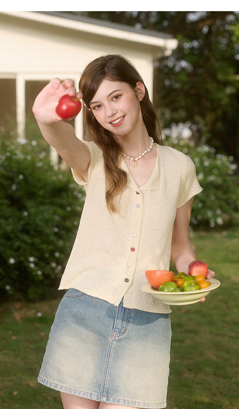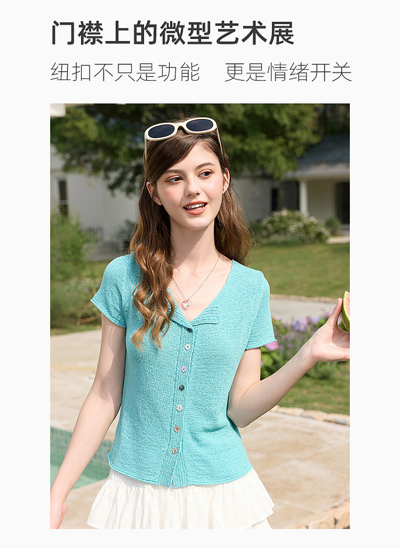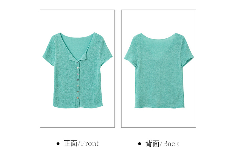三彩独醒2026春季新款多巴胺针织衫小翻领短袖毛衫修身短款上衣F