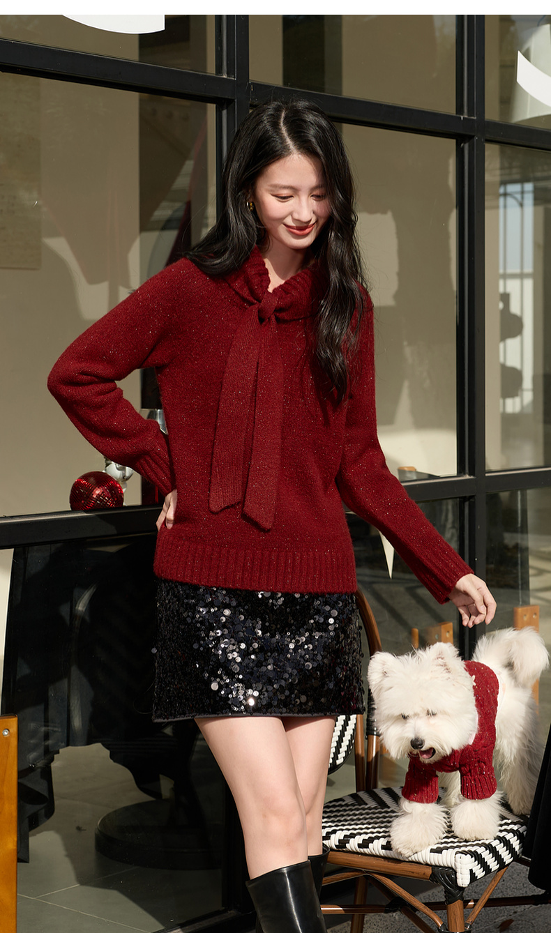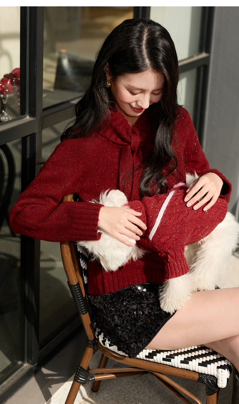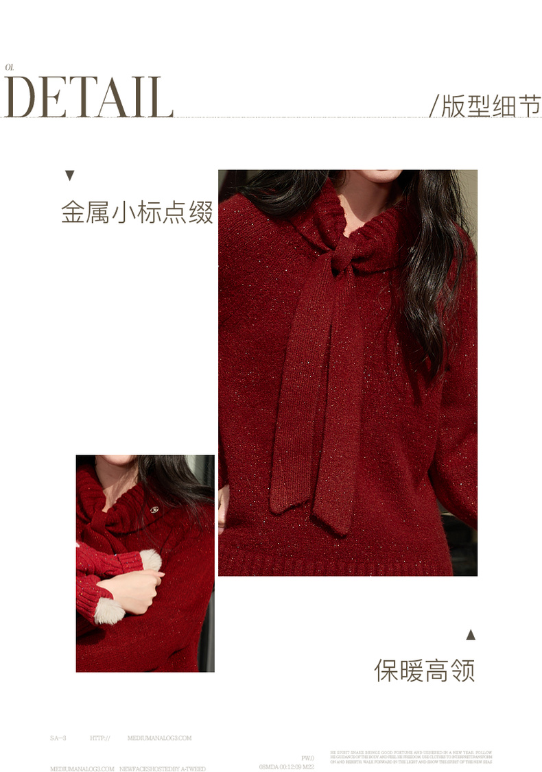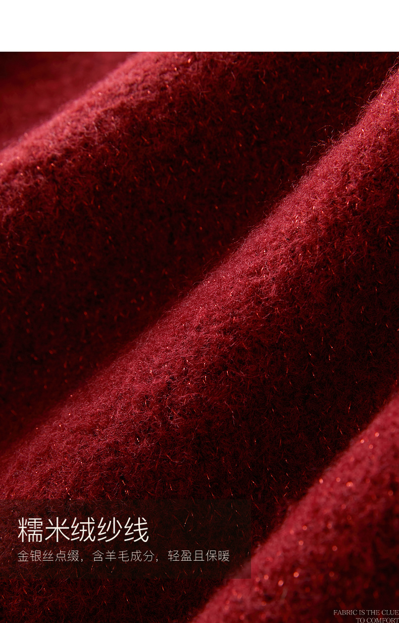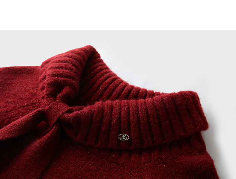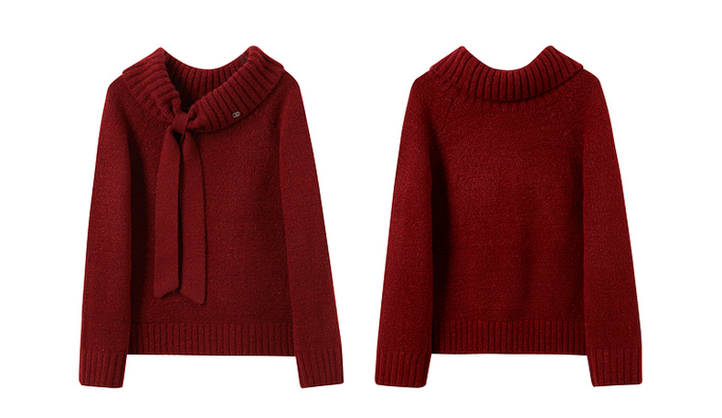 三彩2026春季新款红色毛衣新年毛衫套头长袖气质高领保暖上衣S
