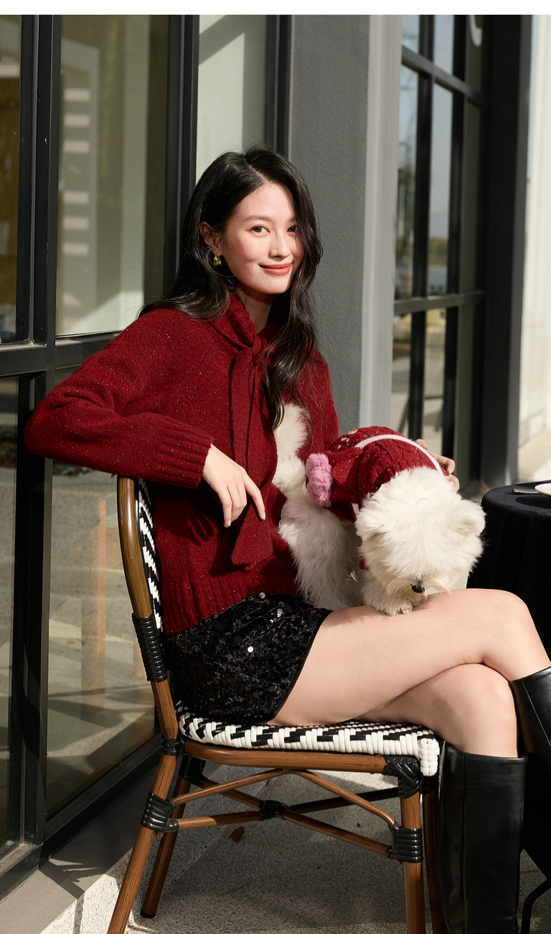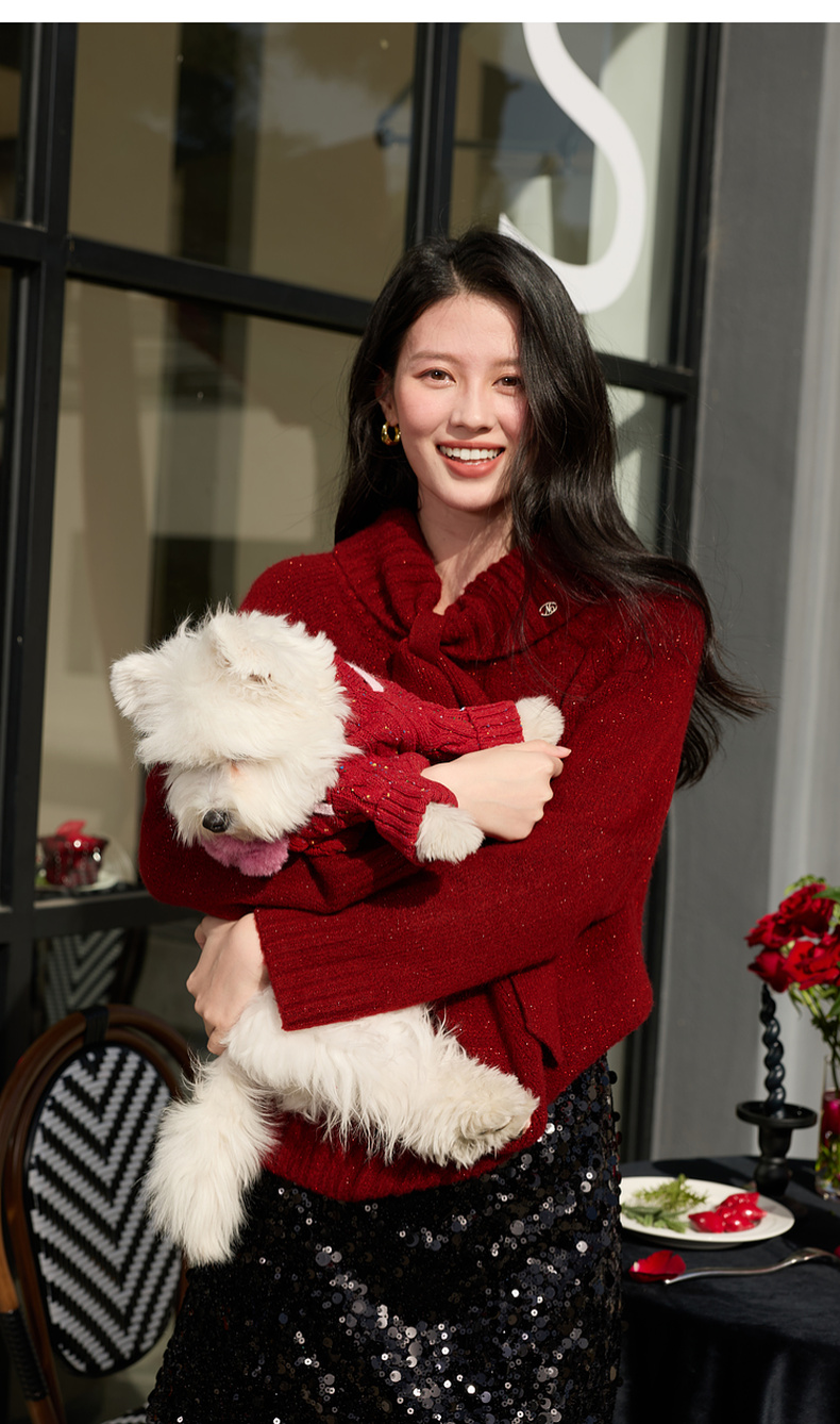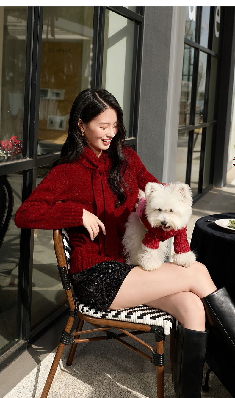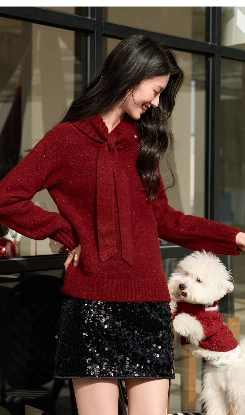 三彩2026春季新款红色毛衣新年毛衫套头长袖气质高领保暖上衣S