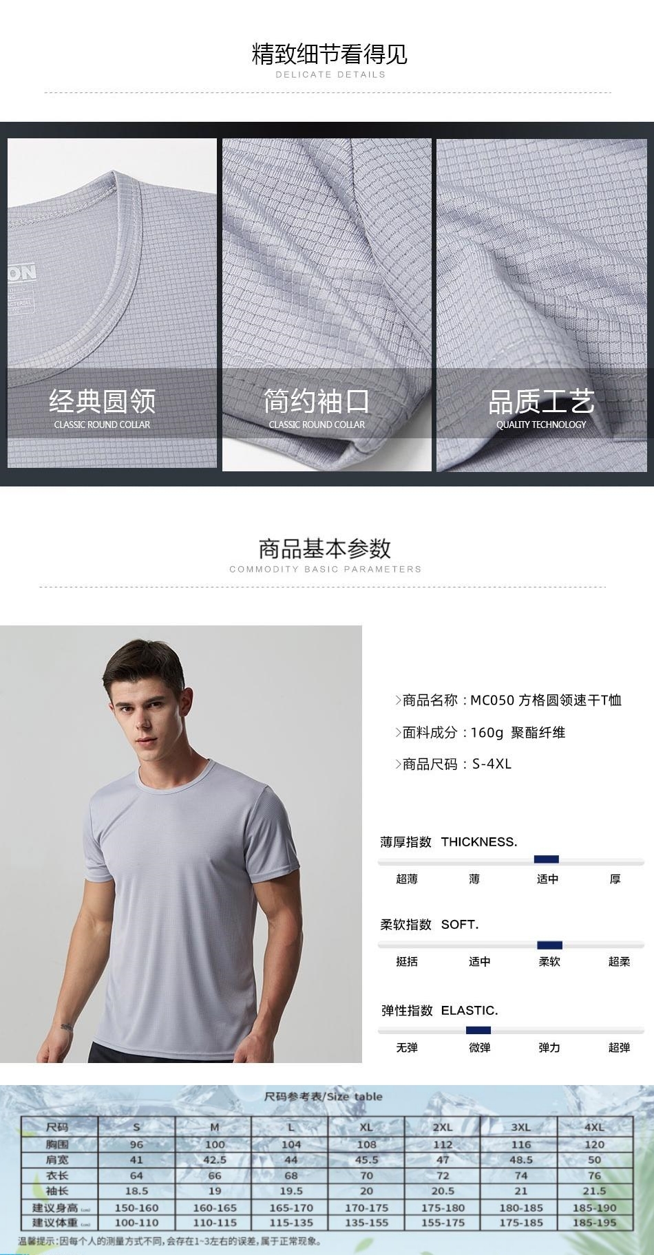 49.9元到手5件 男女夏季纯色宽松高弹速干衣 透气舒服不闷汗,简约舒适好版型,方格速干圆领T恤 MC-050