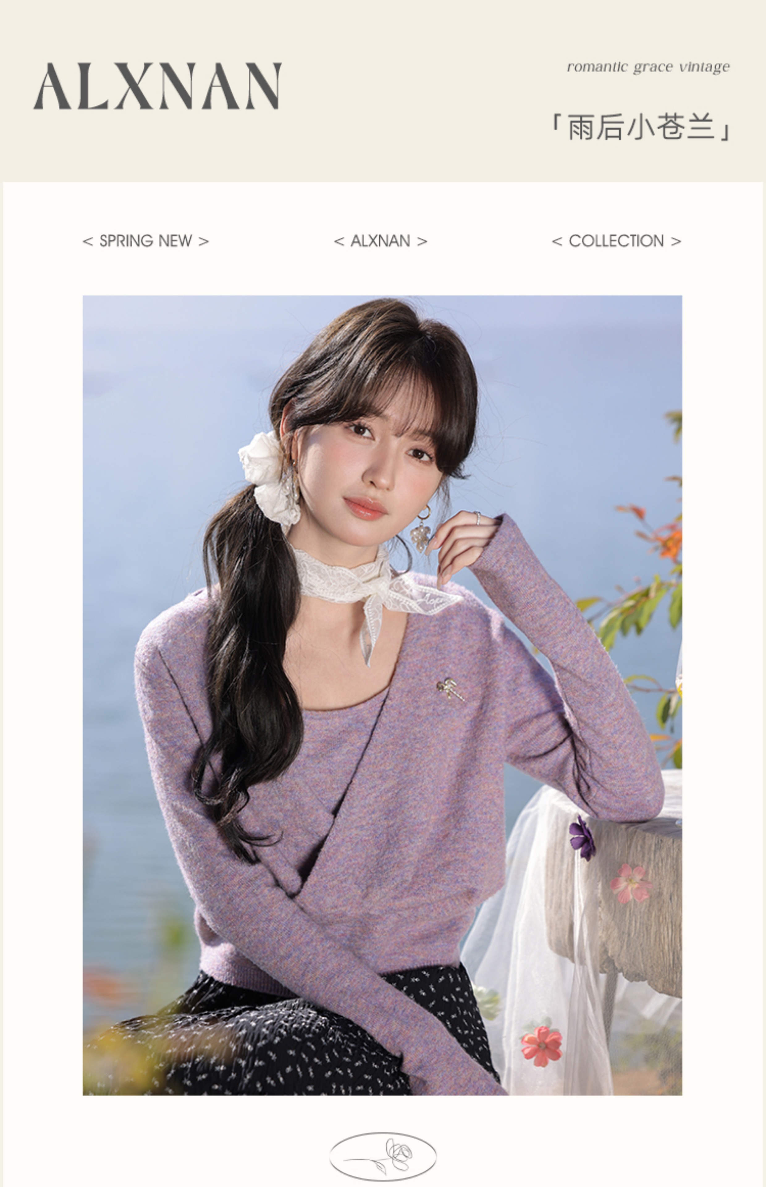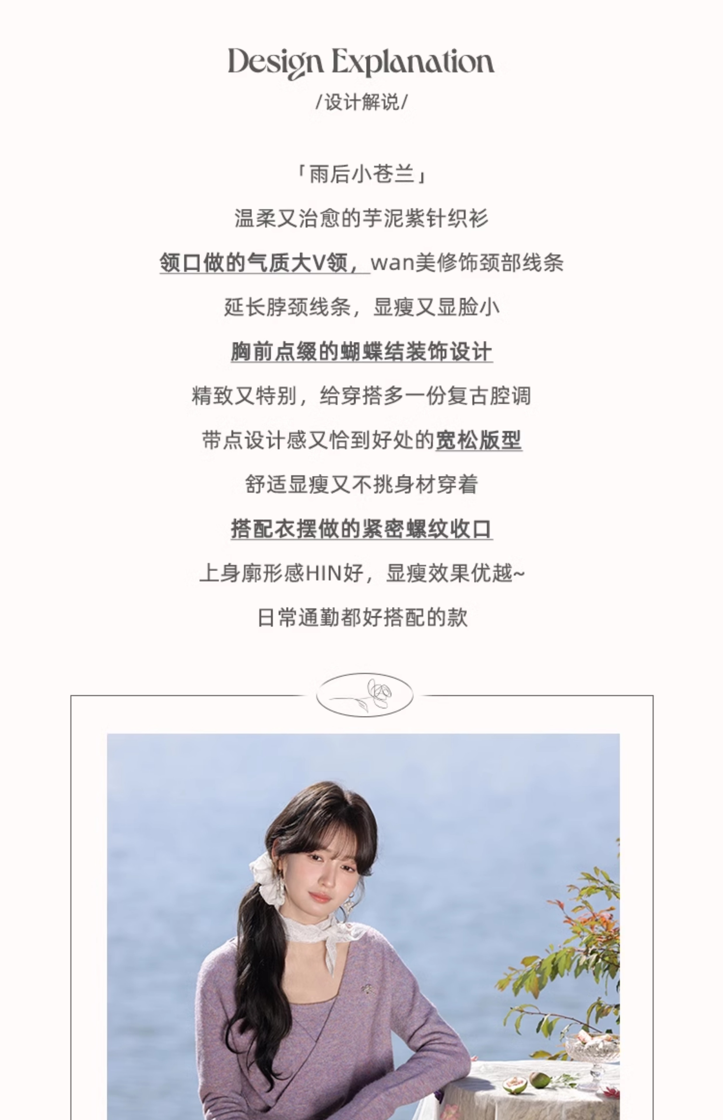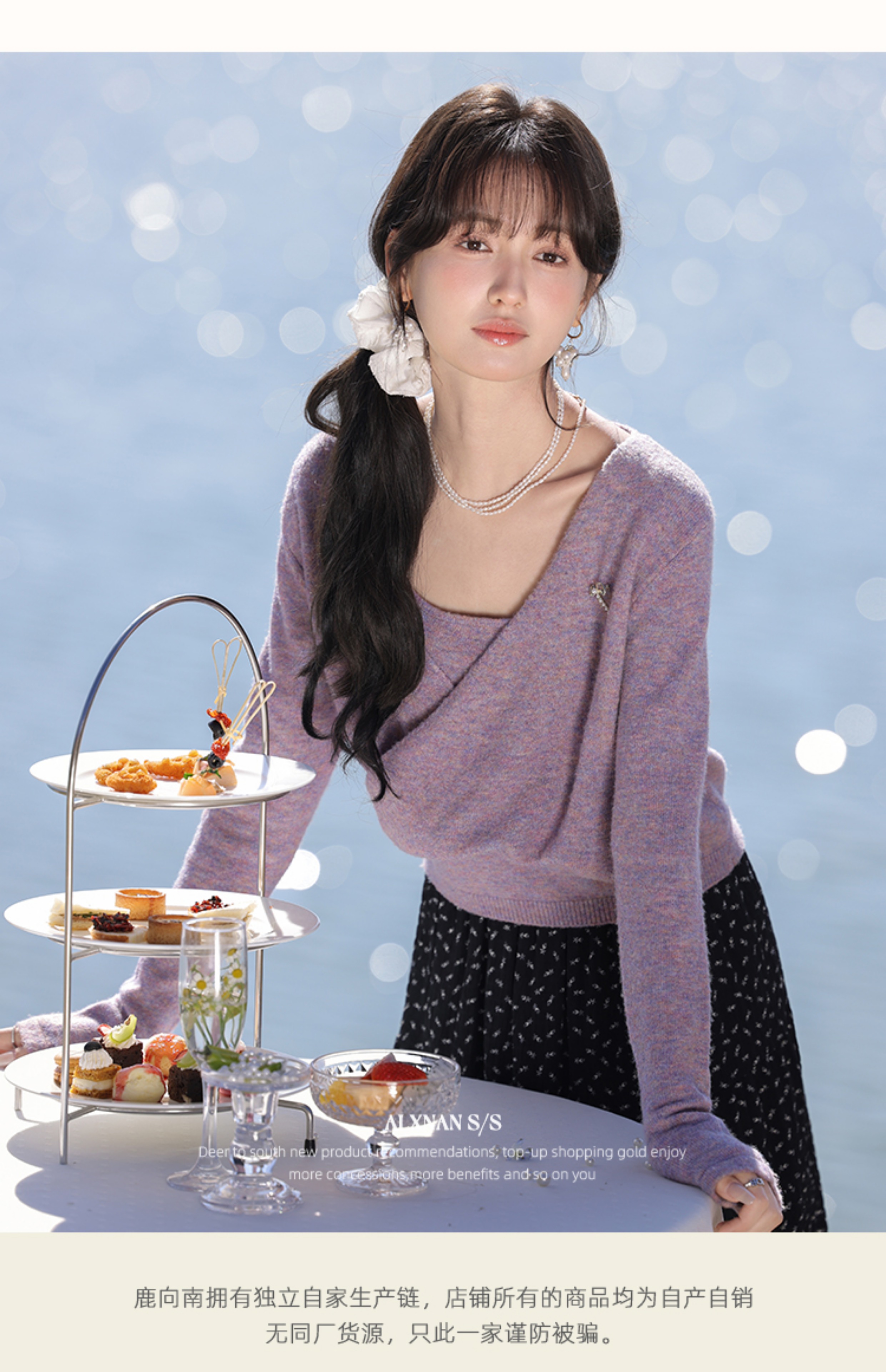 【65折秒杀】鹿向南「雨后小苍兰」香芋紫针织衫女春季新款设计感小众上衣背心L52981DD