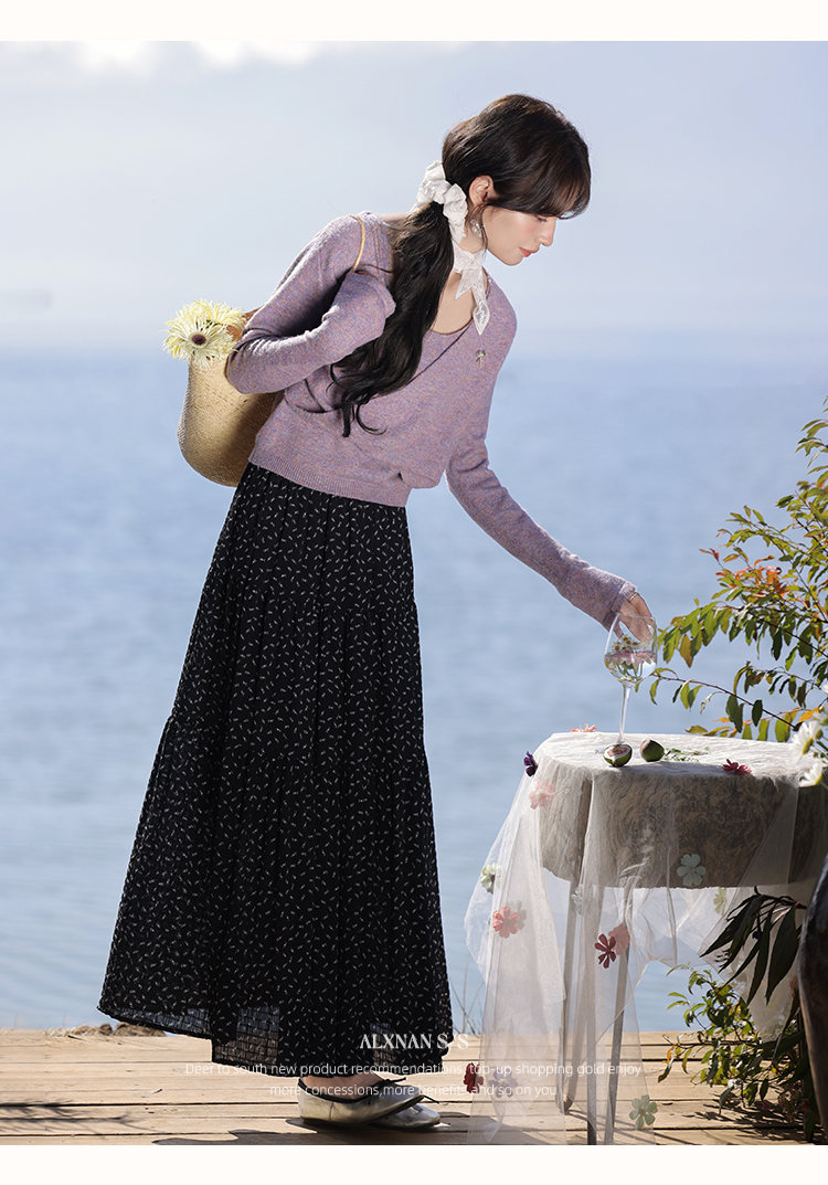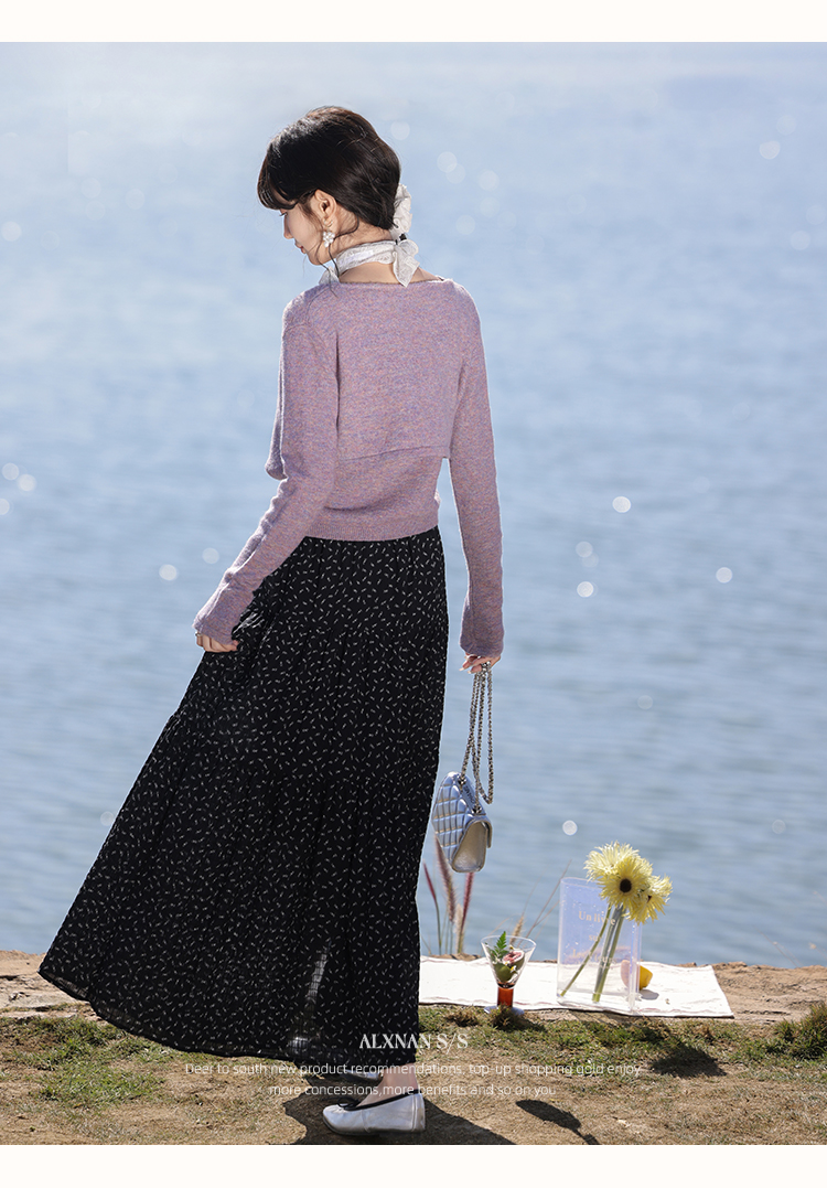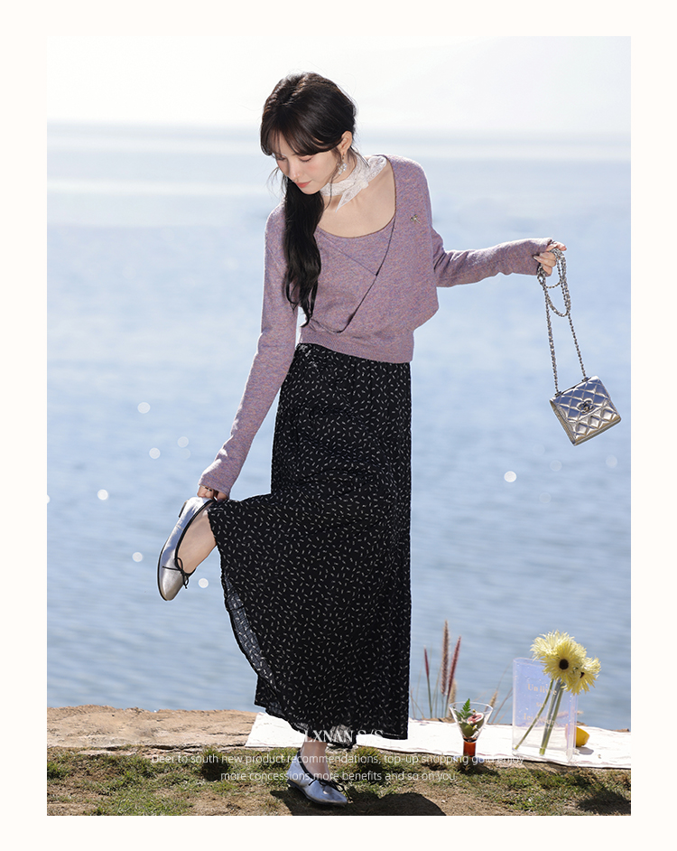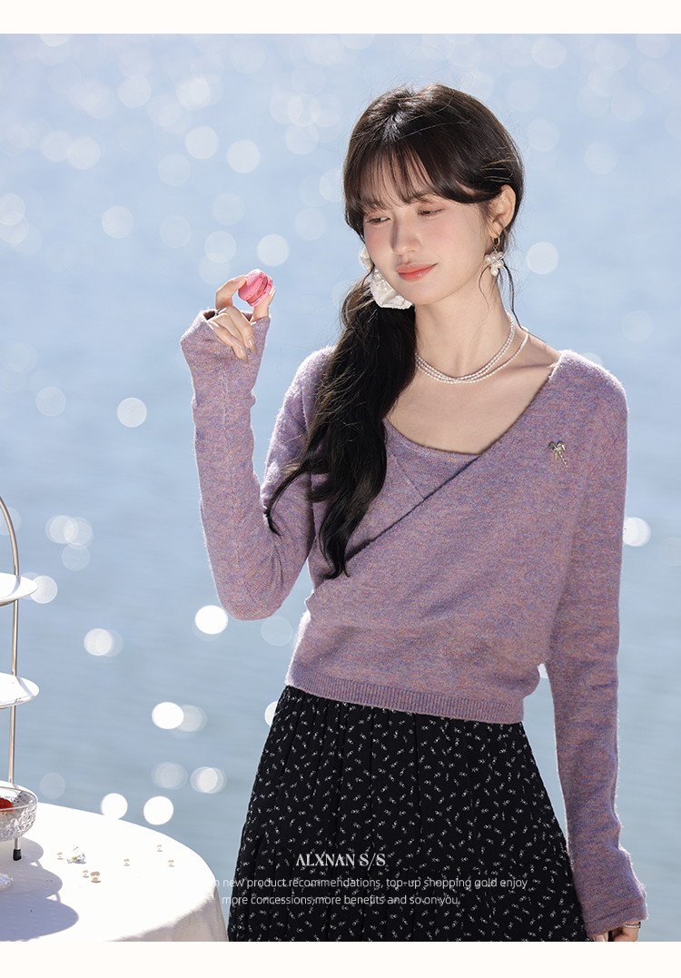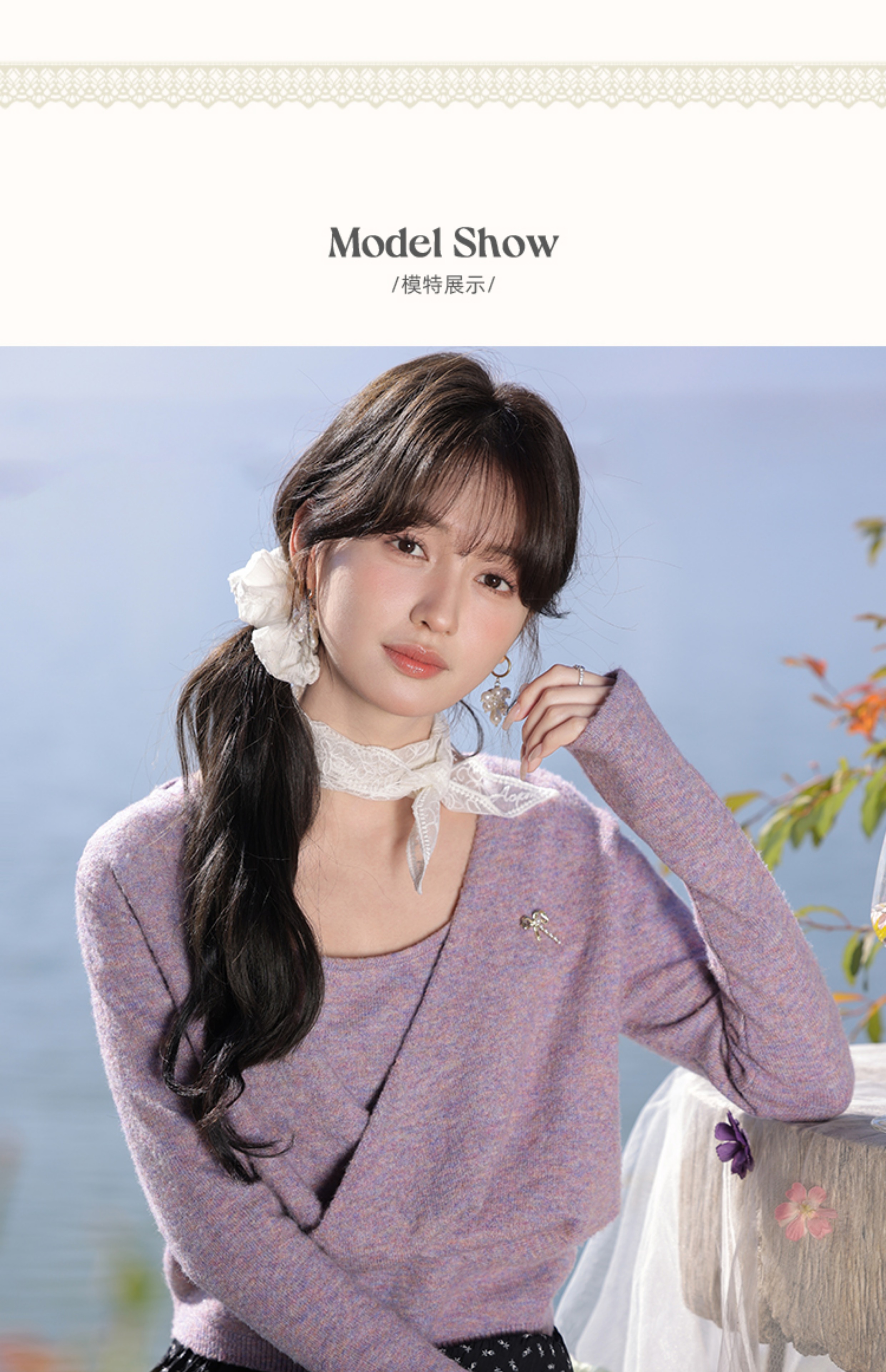 【65折秒杀】鹿向南「雨后小苍兰」香芋紫针织衫女春季新款设计感小众上衣背心L52981DD