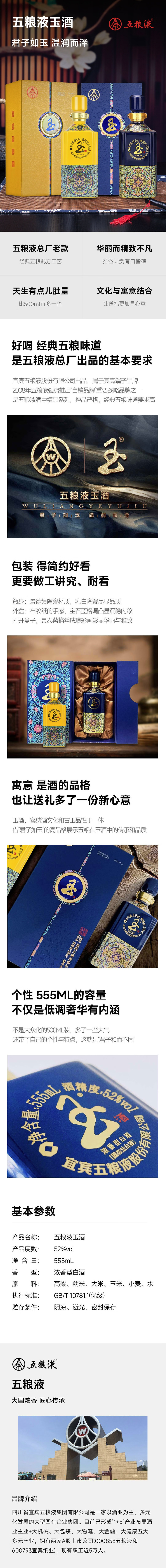 【品鉴收藏】2022年 五粮液 玉酒 宝石蓝 浓香型白酒 52度 555ml*6瓶整箱