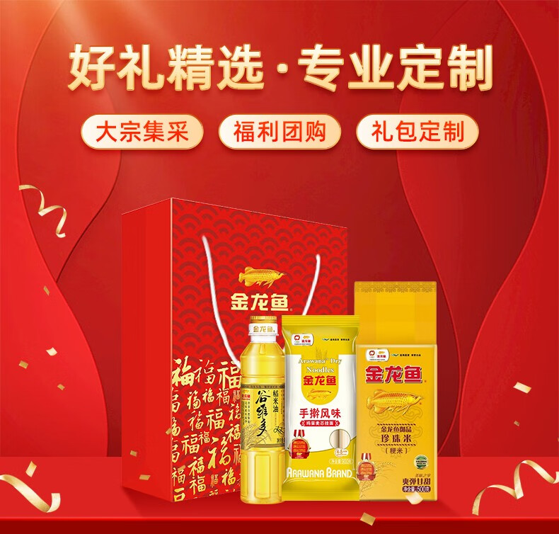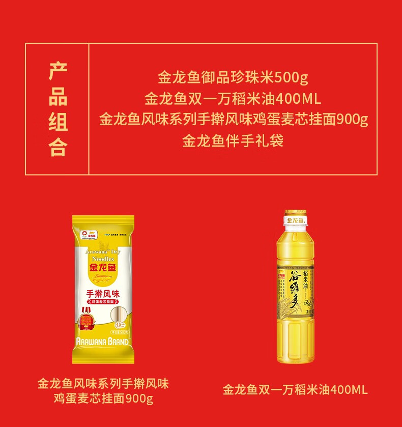 金龙鱼米面油组合礼袋(御品珍珠米500g+挂面900g+稻米油400ML)