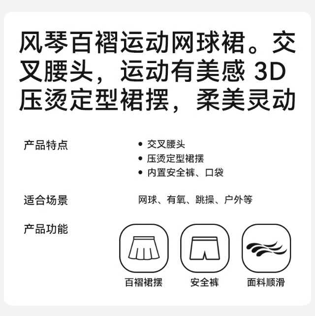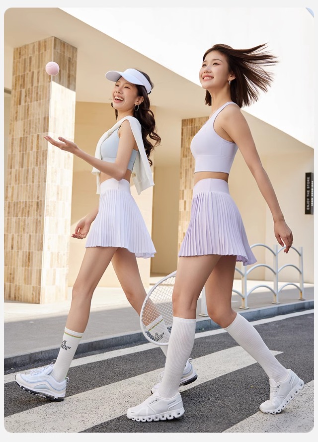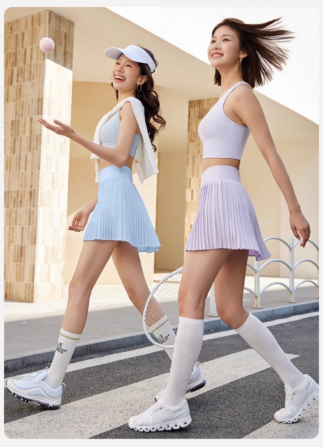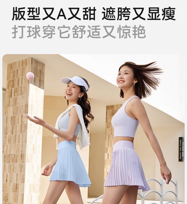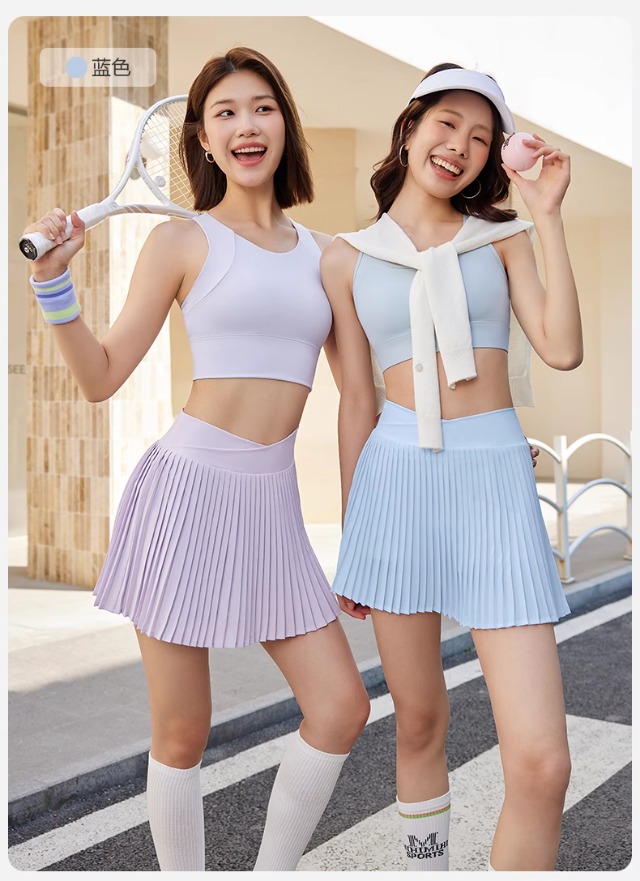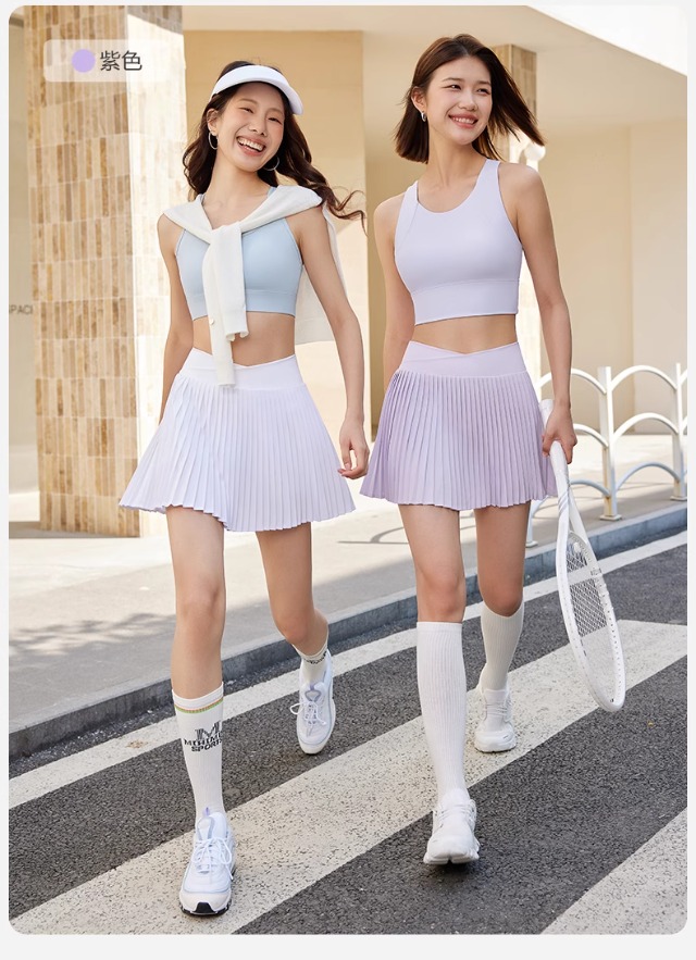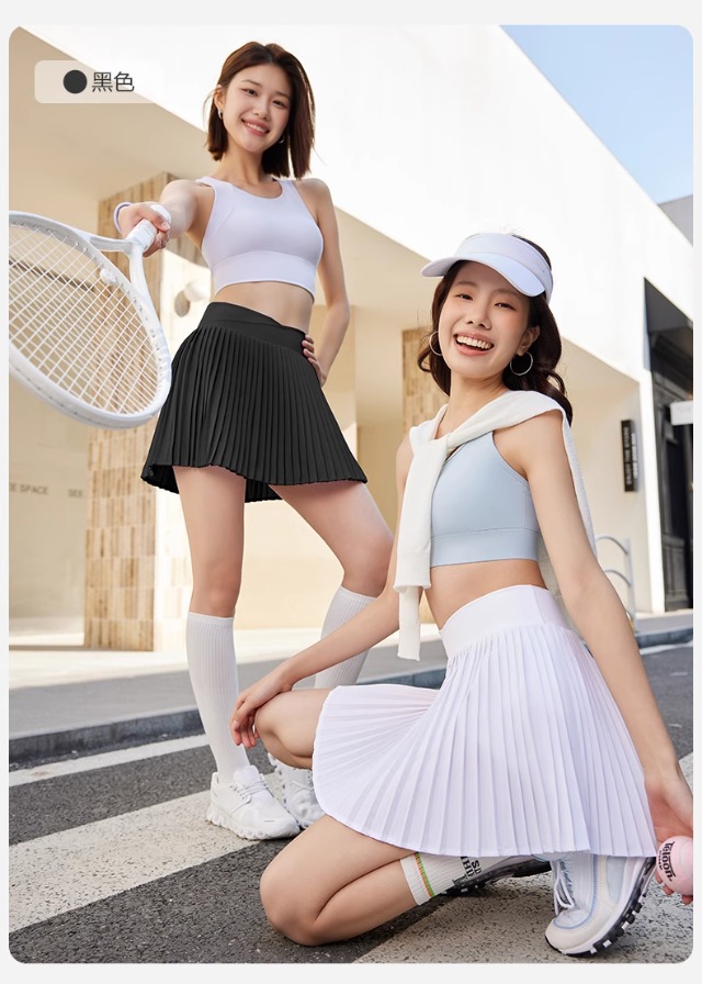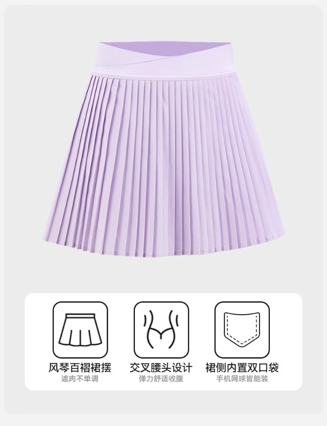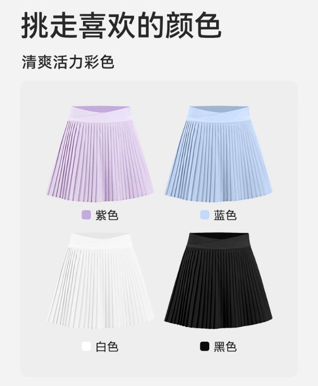【Neverme】防走光高腰交叉假两件运动健身百褶裙SQ8812