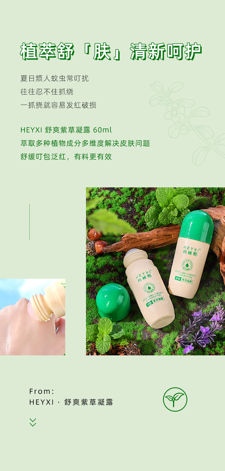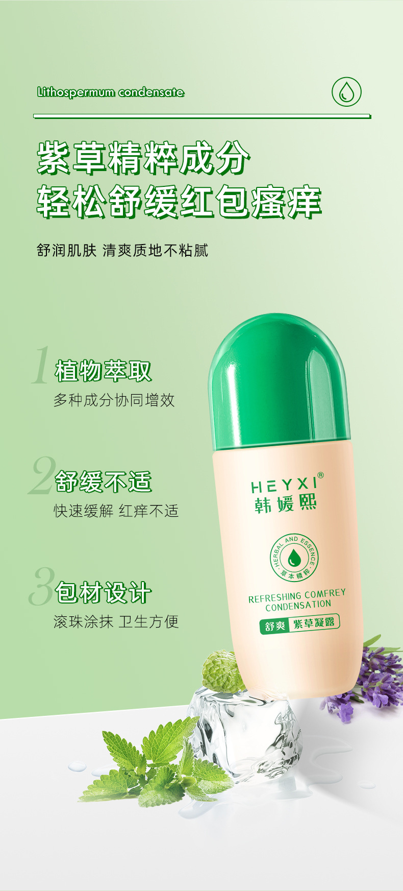 【买二送一】HEYXI韩媛熙新品舒爽紫草凝露走珠 防蚊虫叮咬 舒爽止痒 紫草膏花露水60ml 户外防护不用忧!
