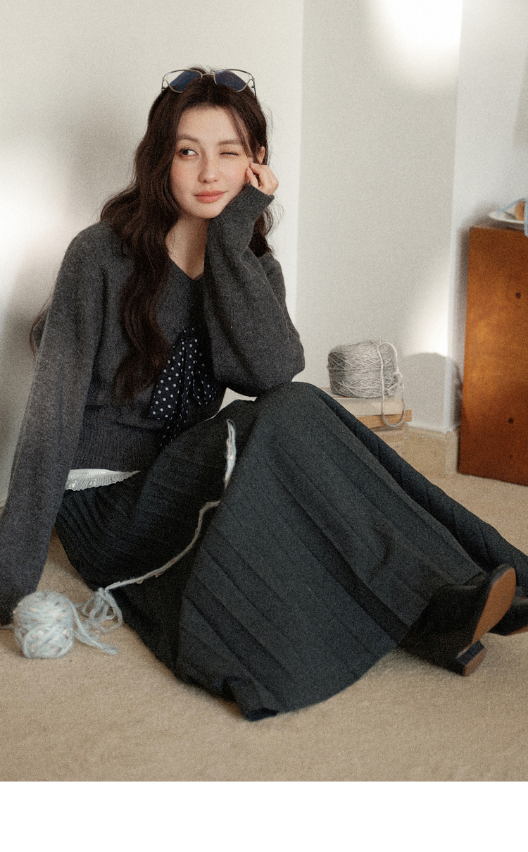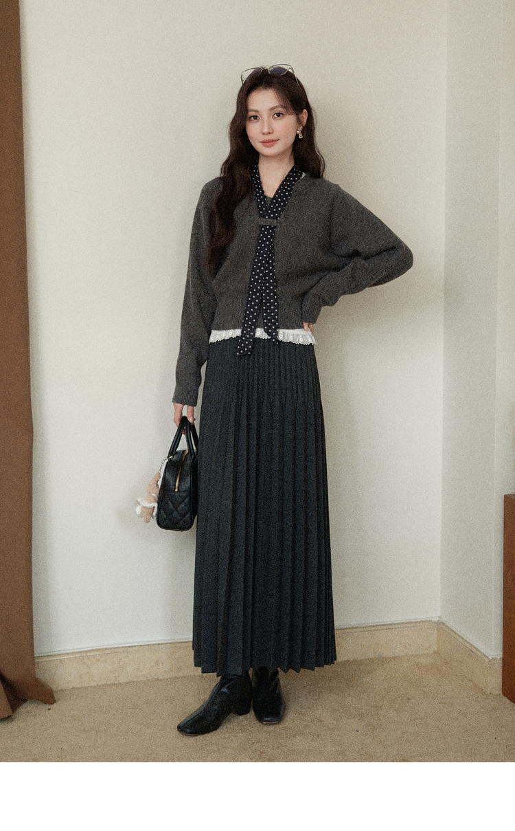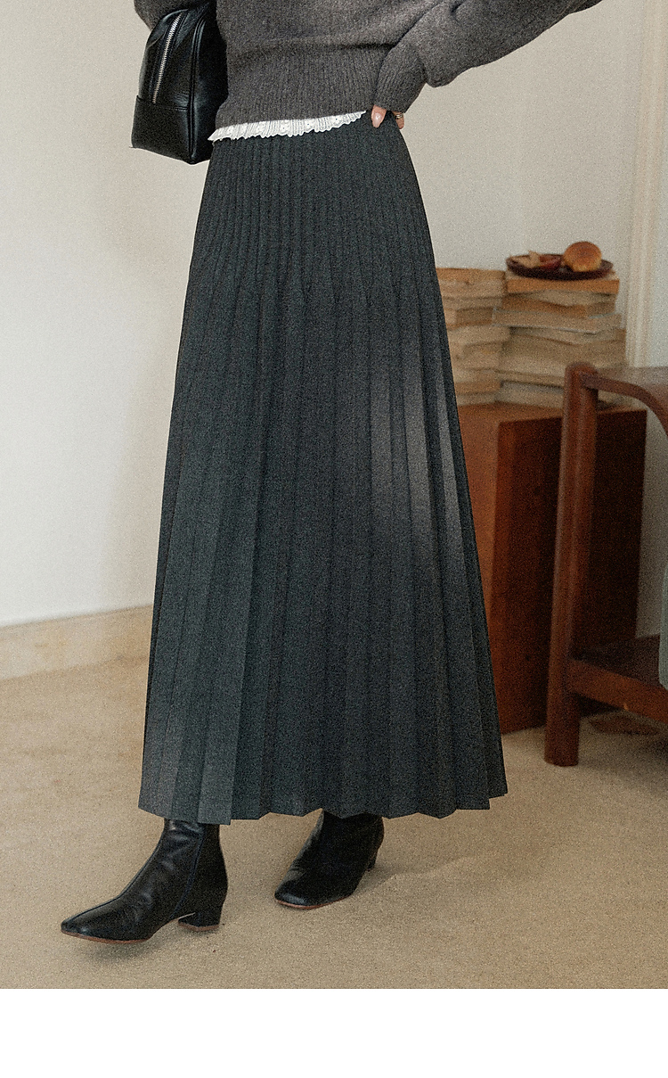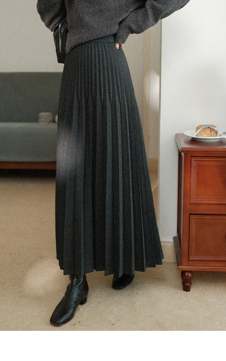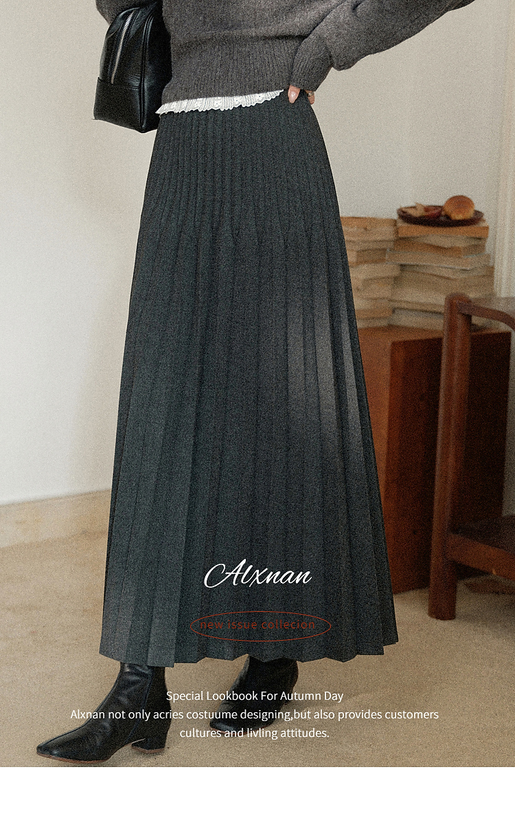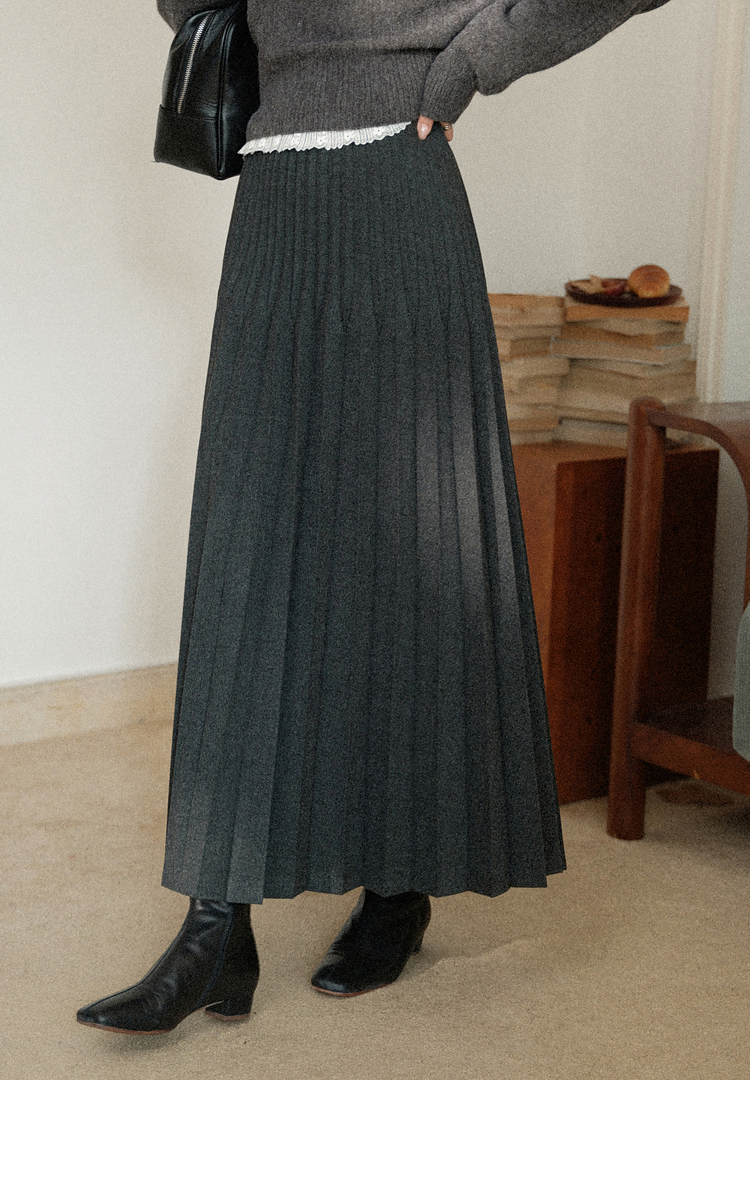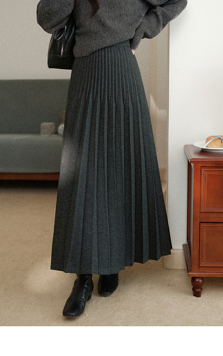 鹿向南「柔灰漫步」灰色百褶A字半身裙女秋冬新款气质显瘦中长裙