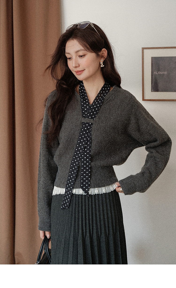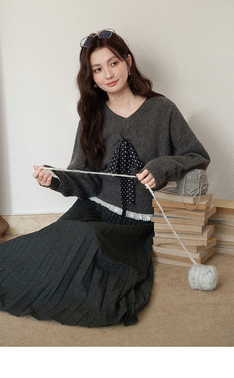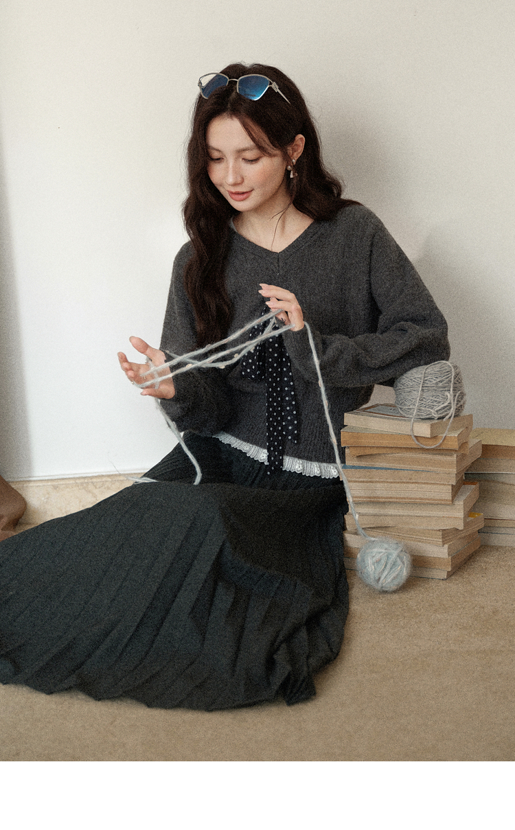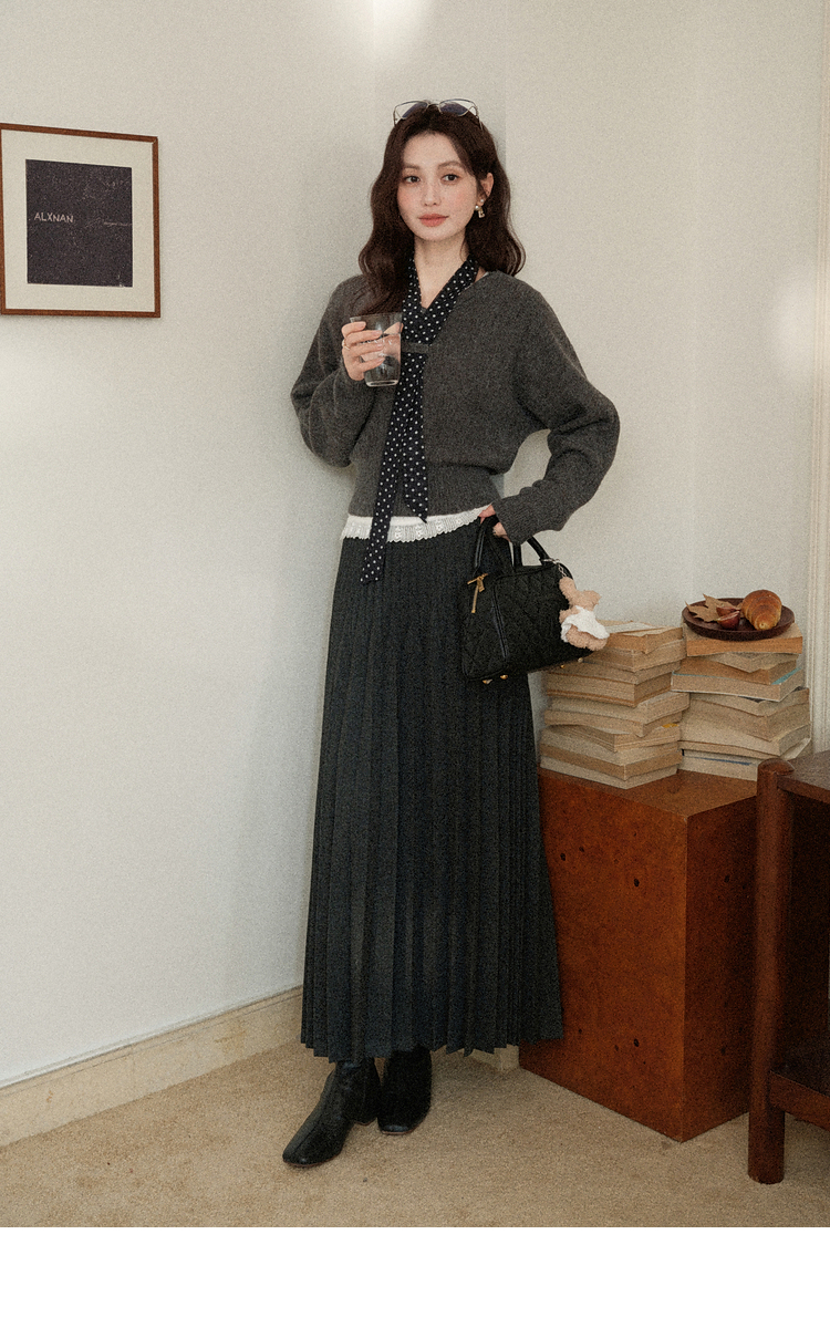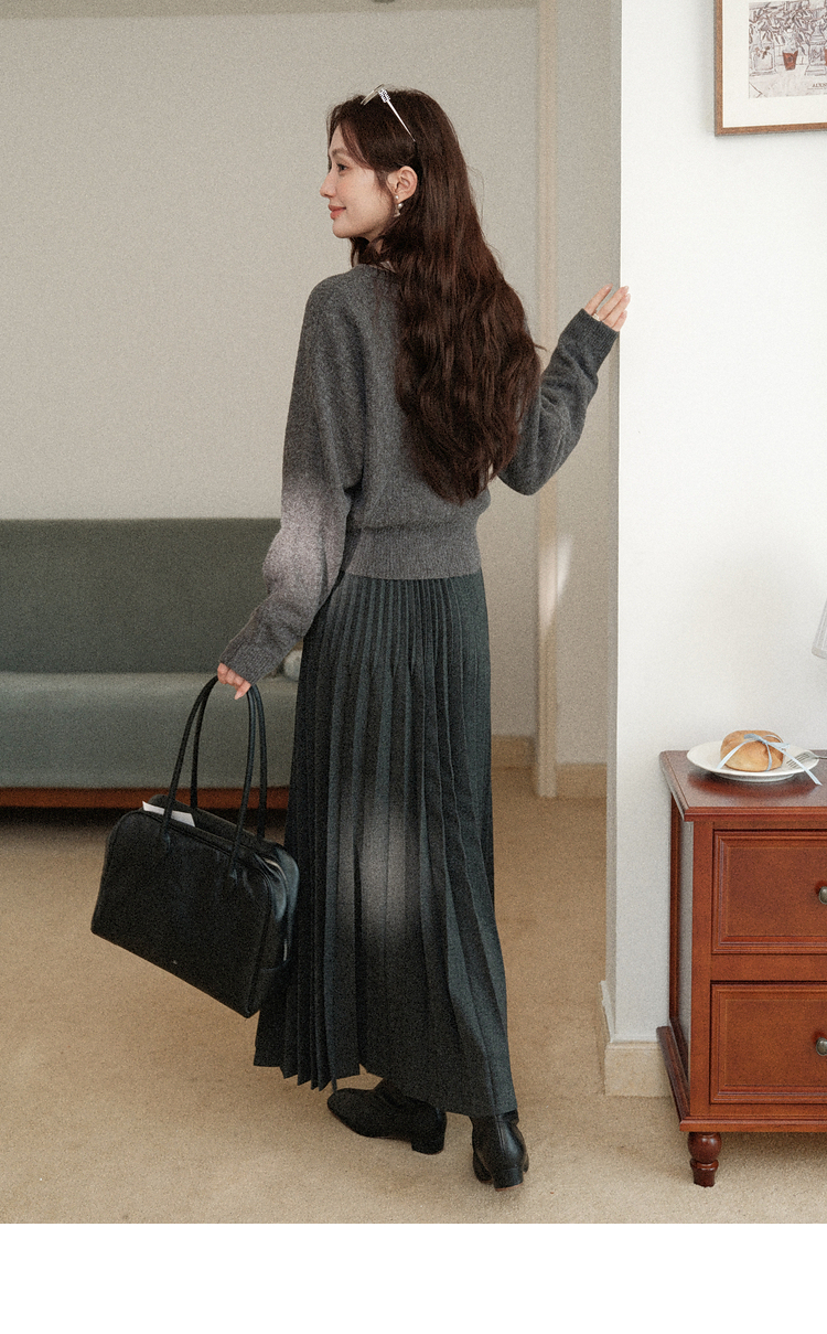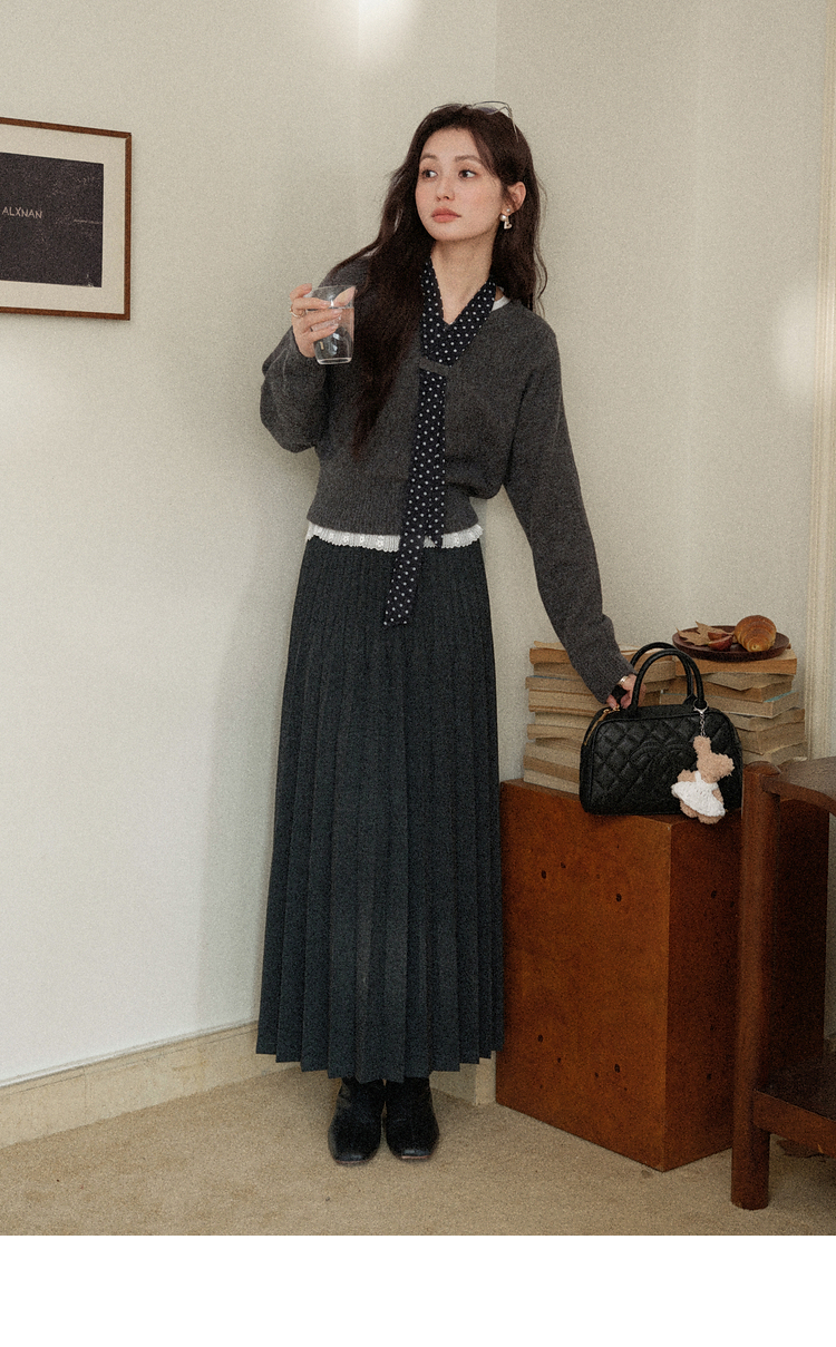 鹿向南「柔灰漫步」灰色百褶A字半身裙女秋冬新款气质显瘦中长裙
