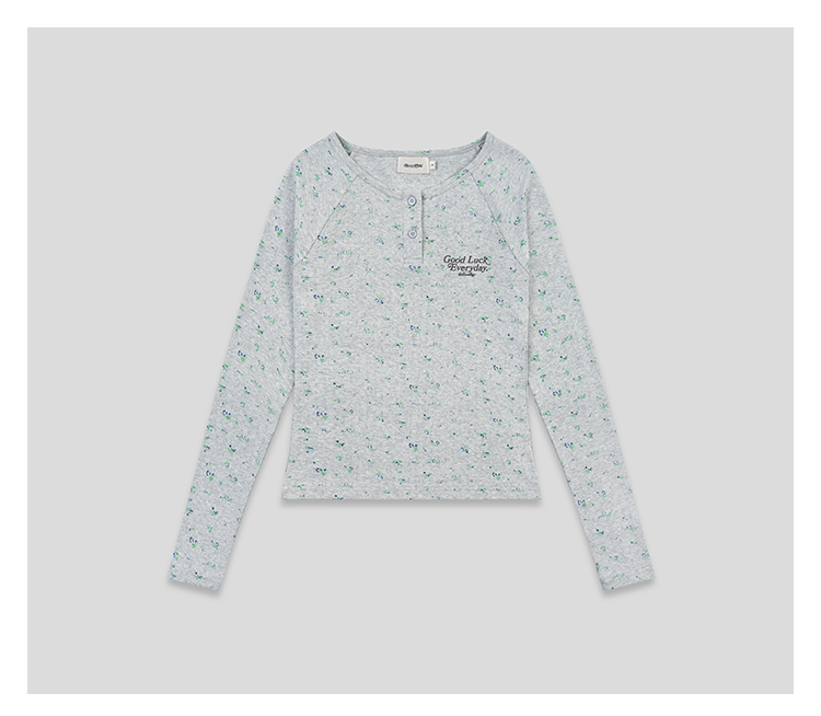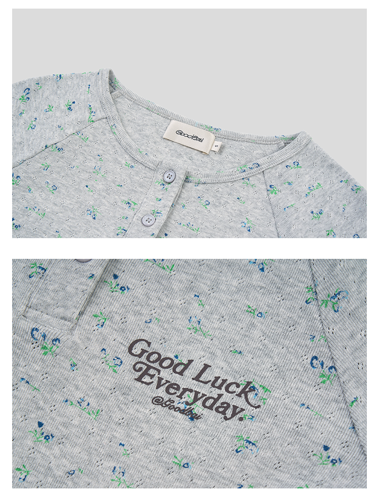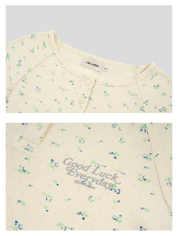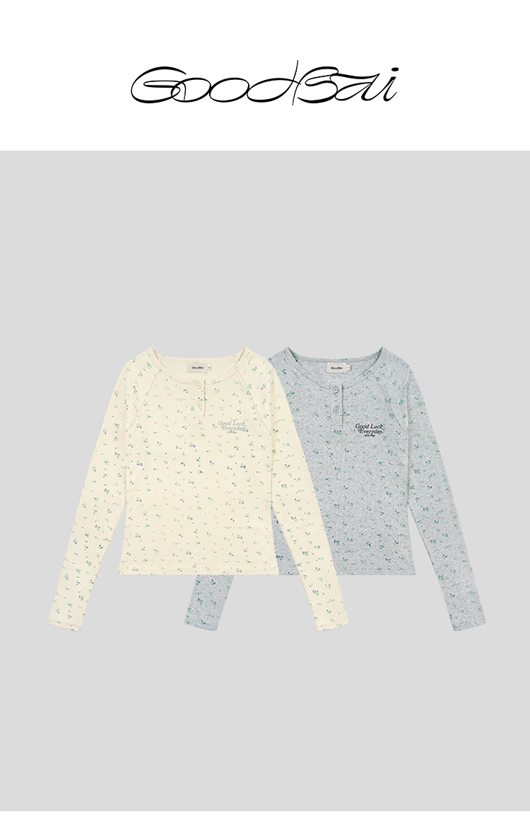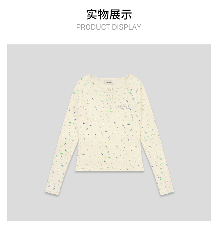 GOODBAI Good Luck Everyday slogan印花碎花圆领插肩长袖T恤