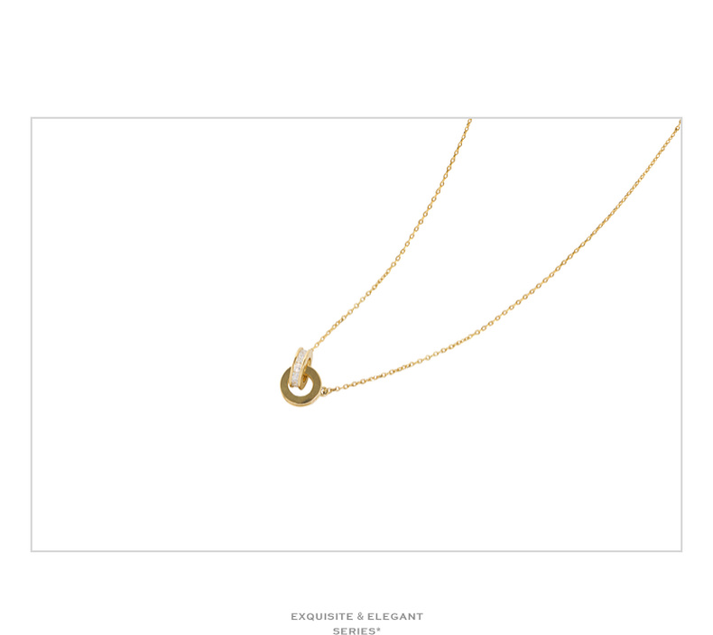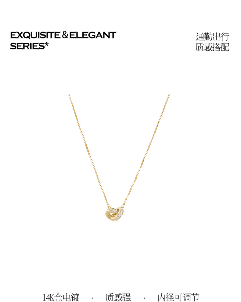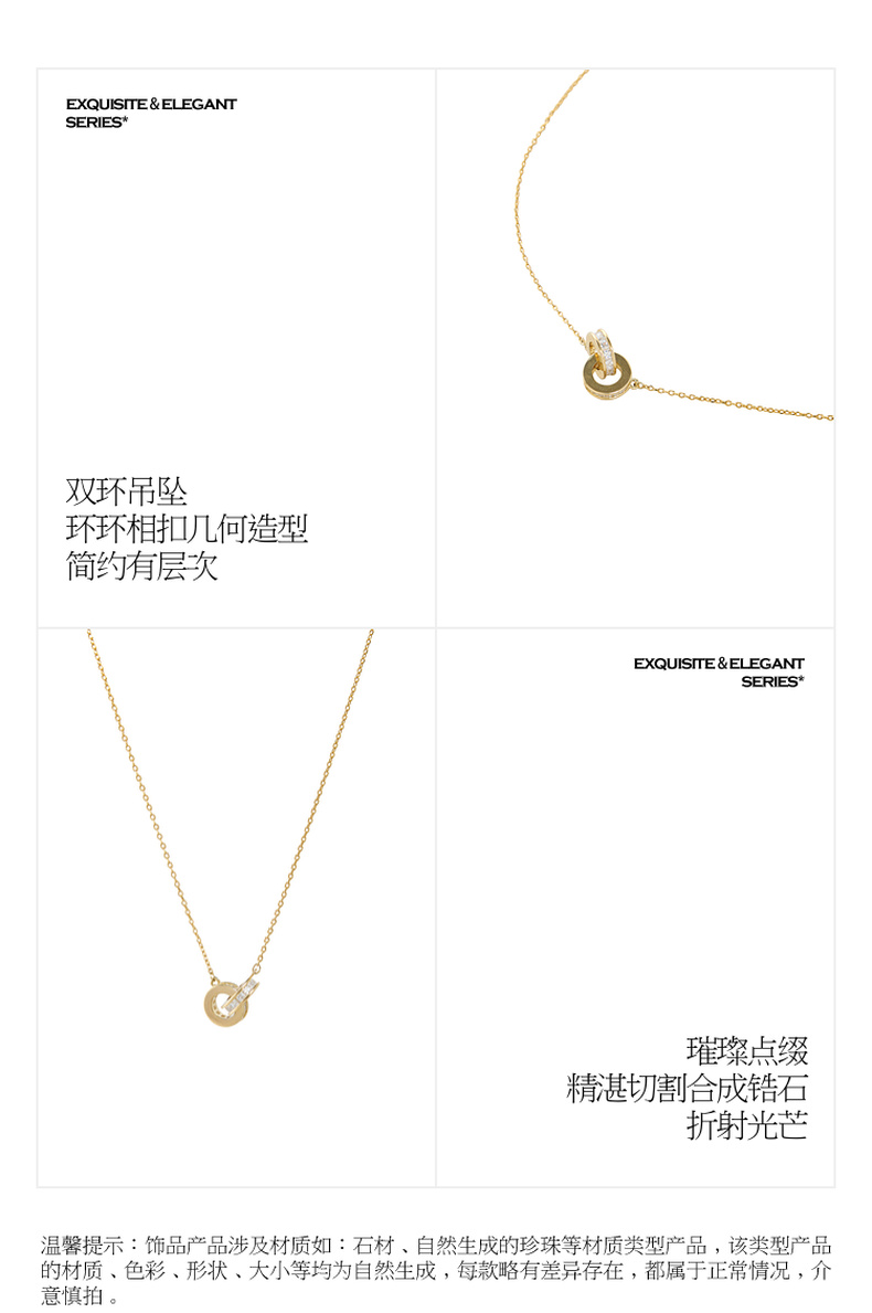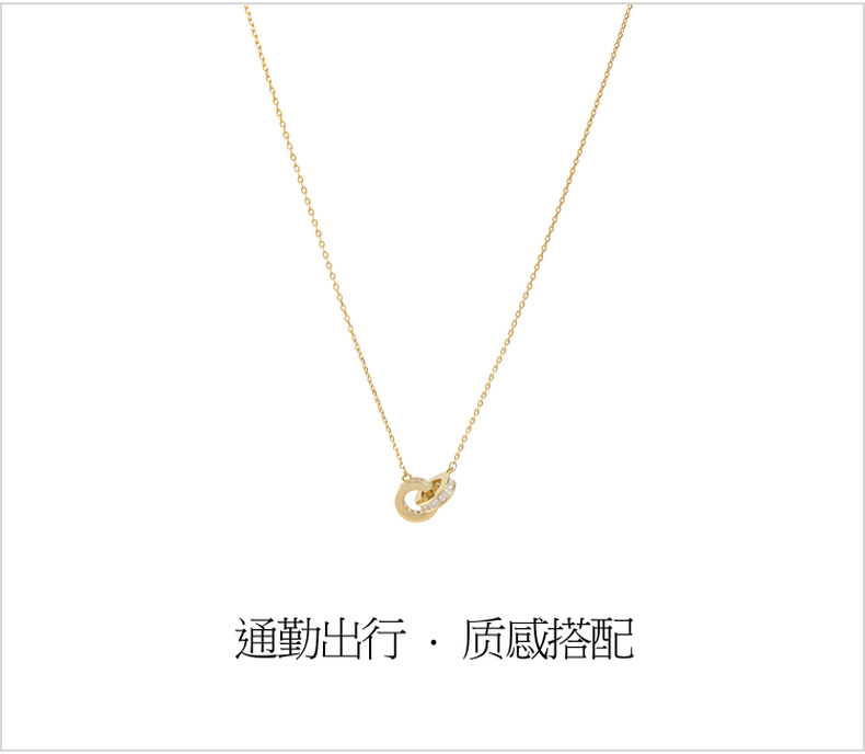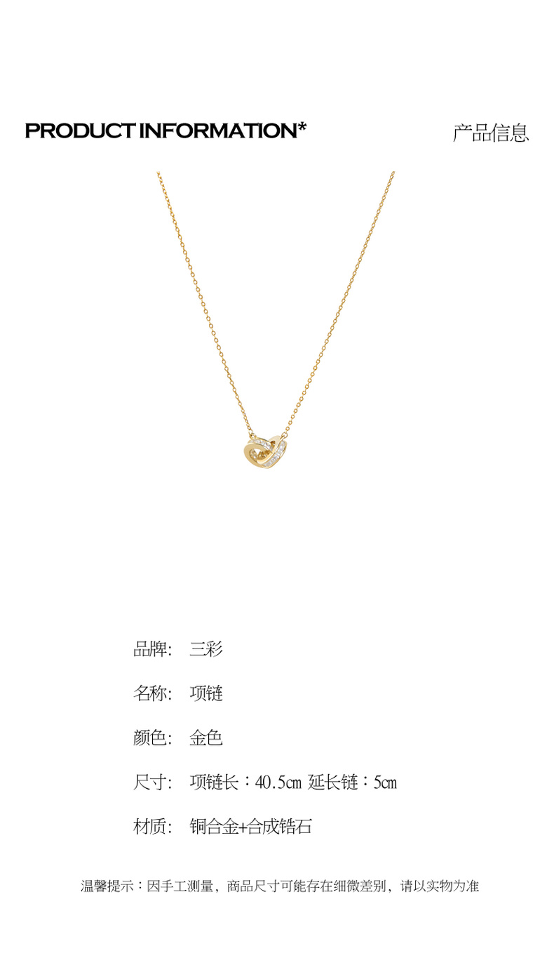 三彩2026新款极简几何双环吊坠项链轻奢锆石通勤约会设计感高级