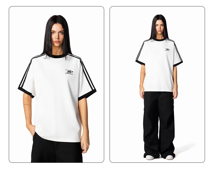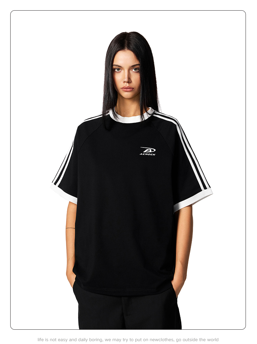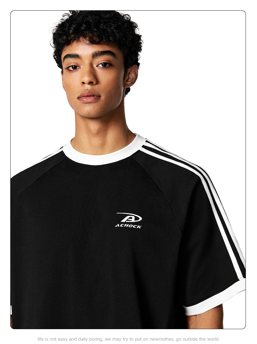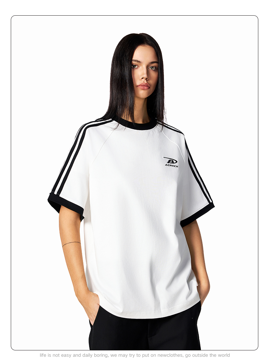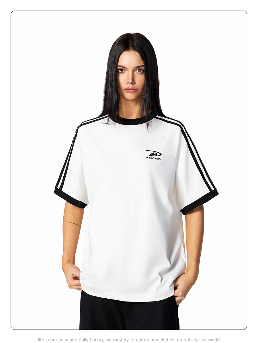 【Achock官方店】美式高街织带拼接新款T恤潮牌简约情侣圆领短袖