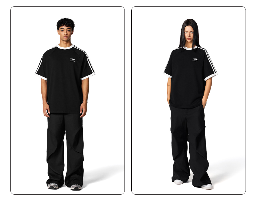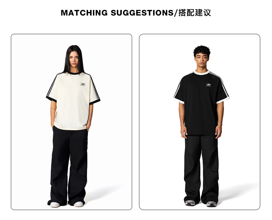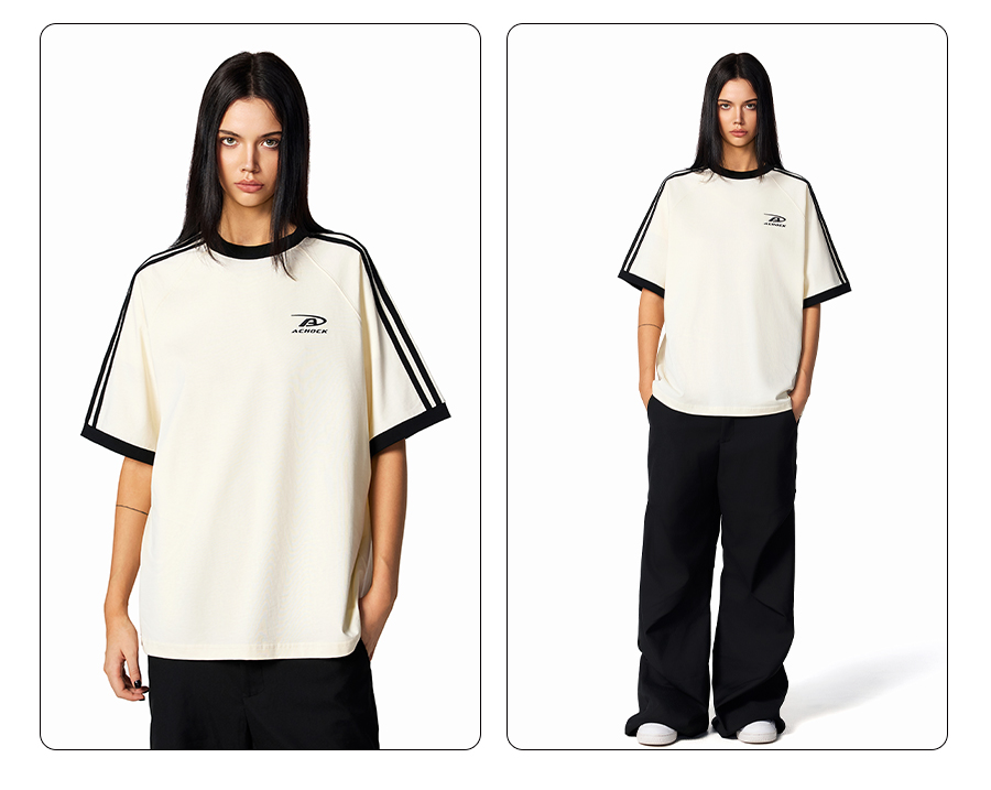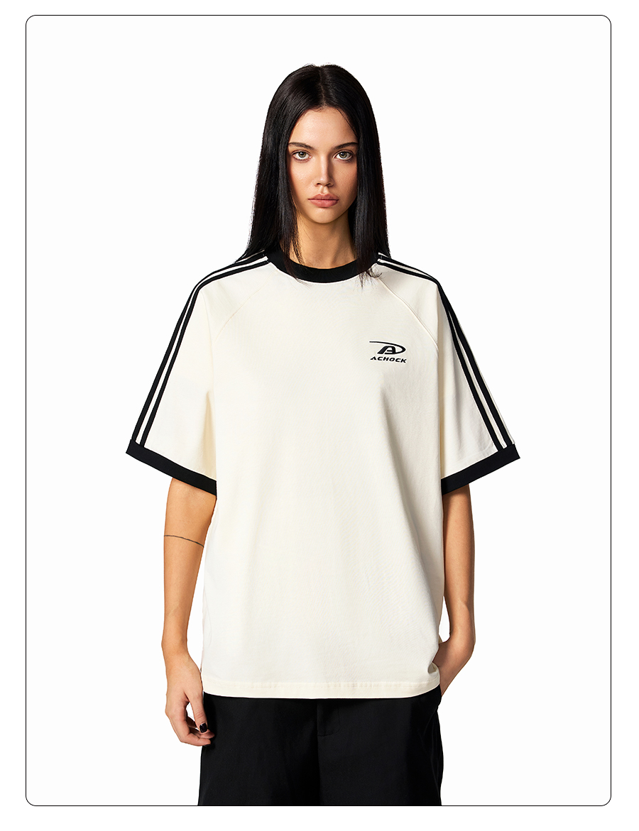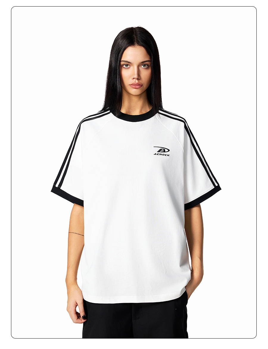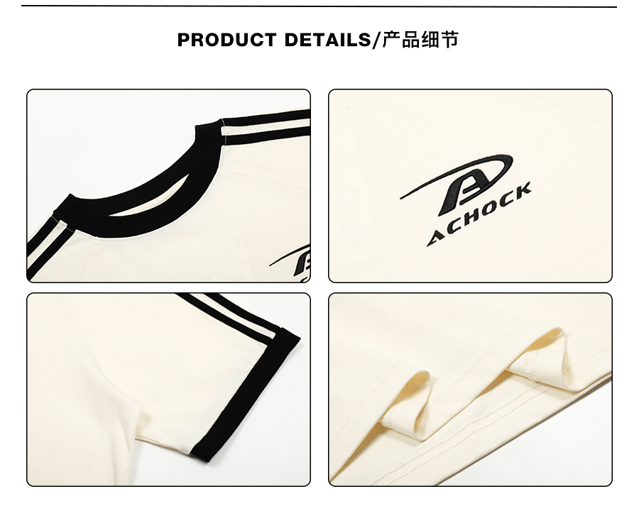 【Achock官方店】美式高街织带拼接新款T恤潮牌简约情侣圆领短袖