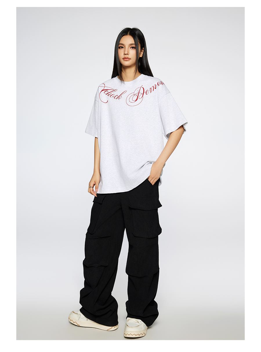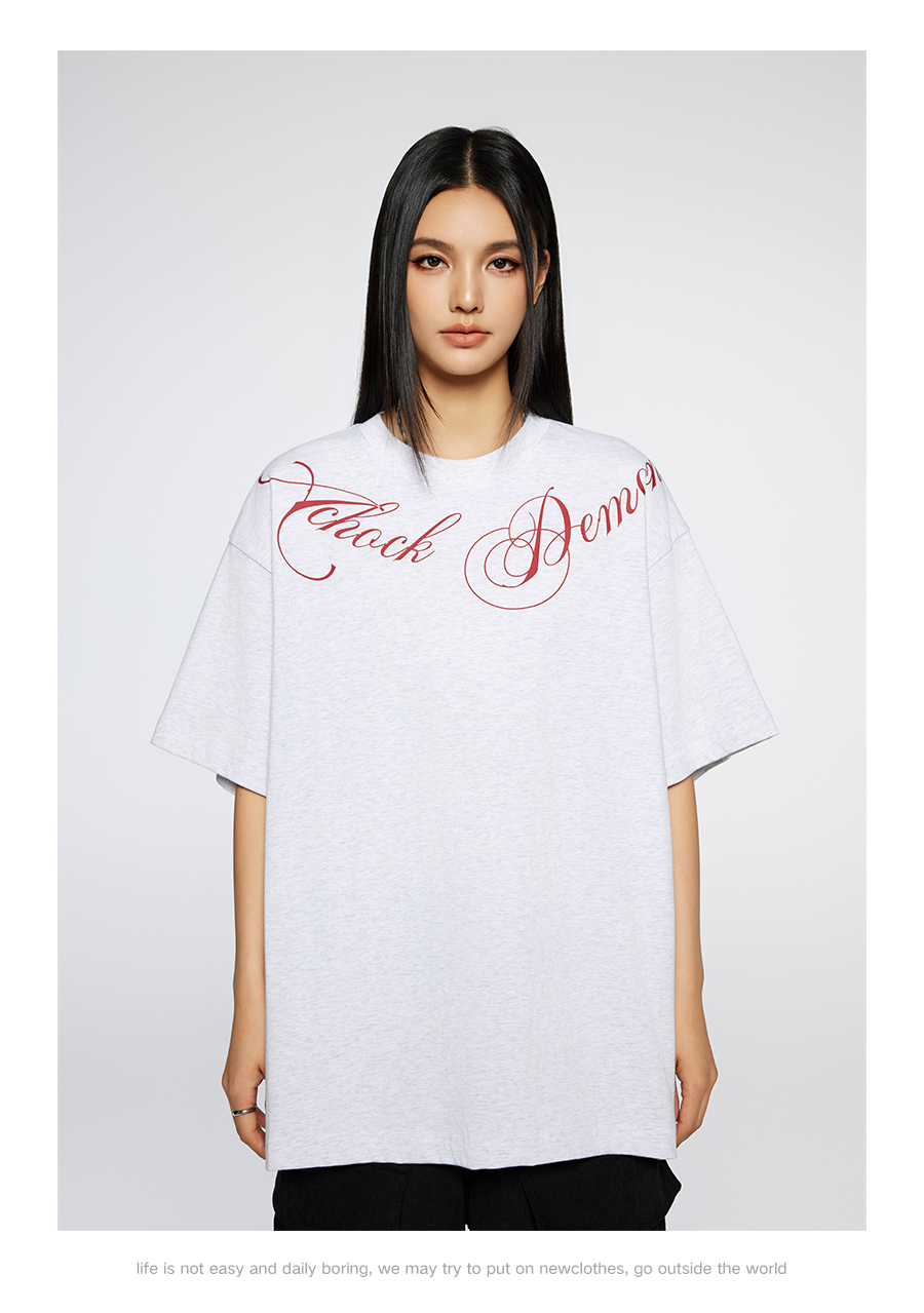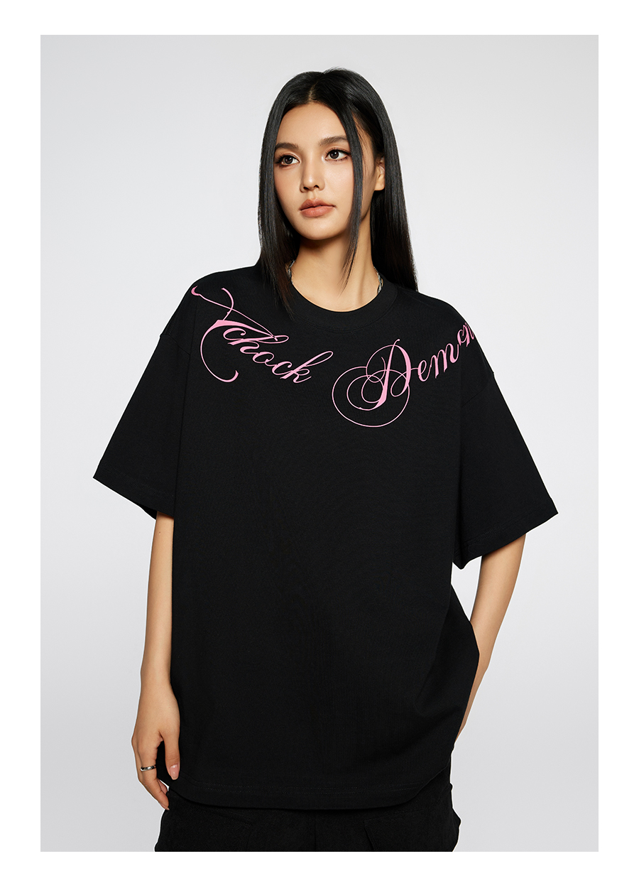 【Achock官方店】潮牌街头花体字印花T恤美式潮牌情侣圆领短袖男