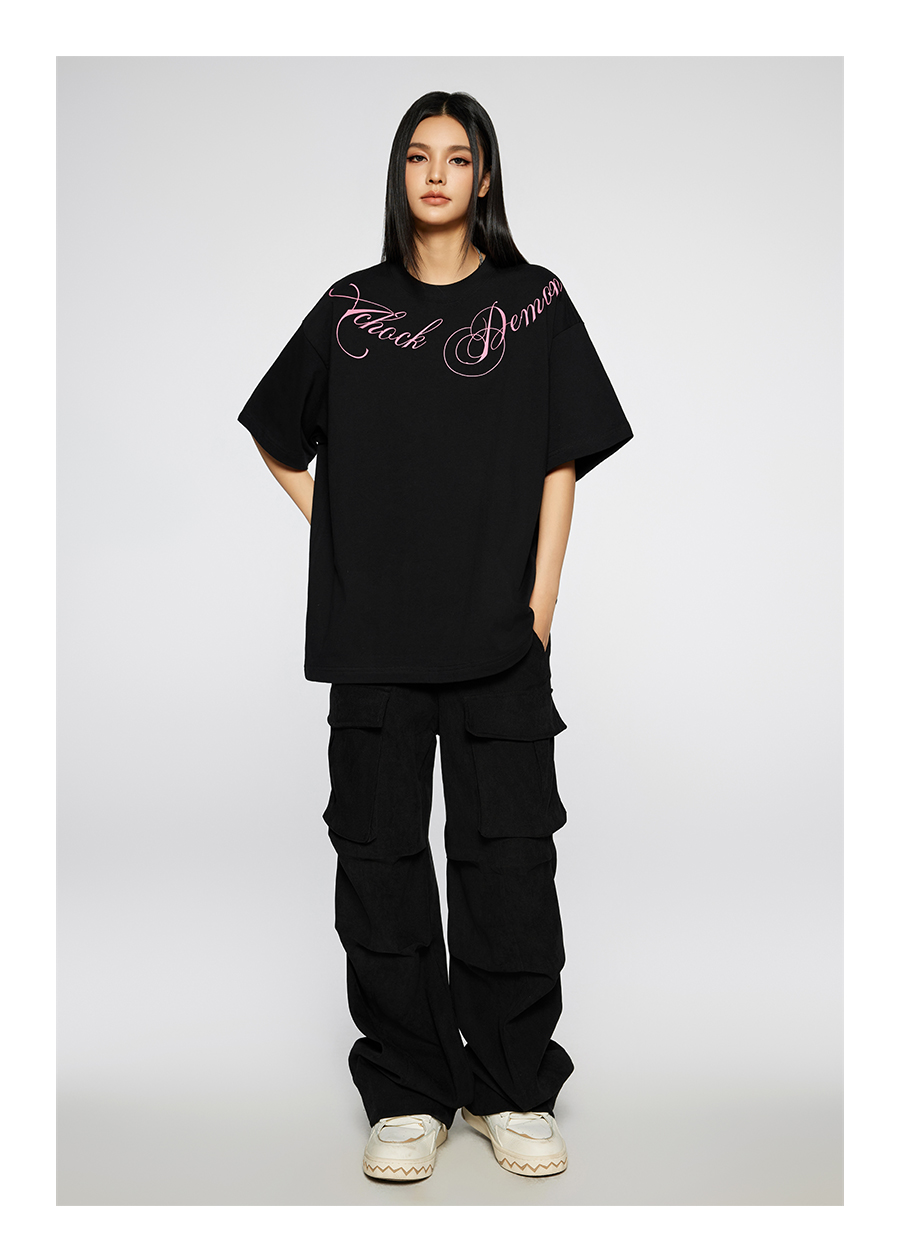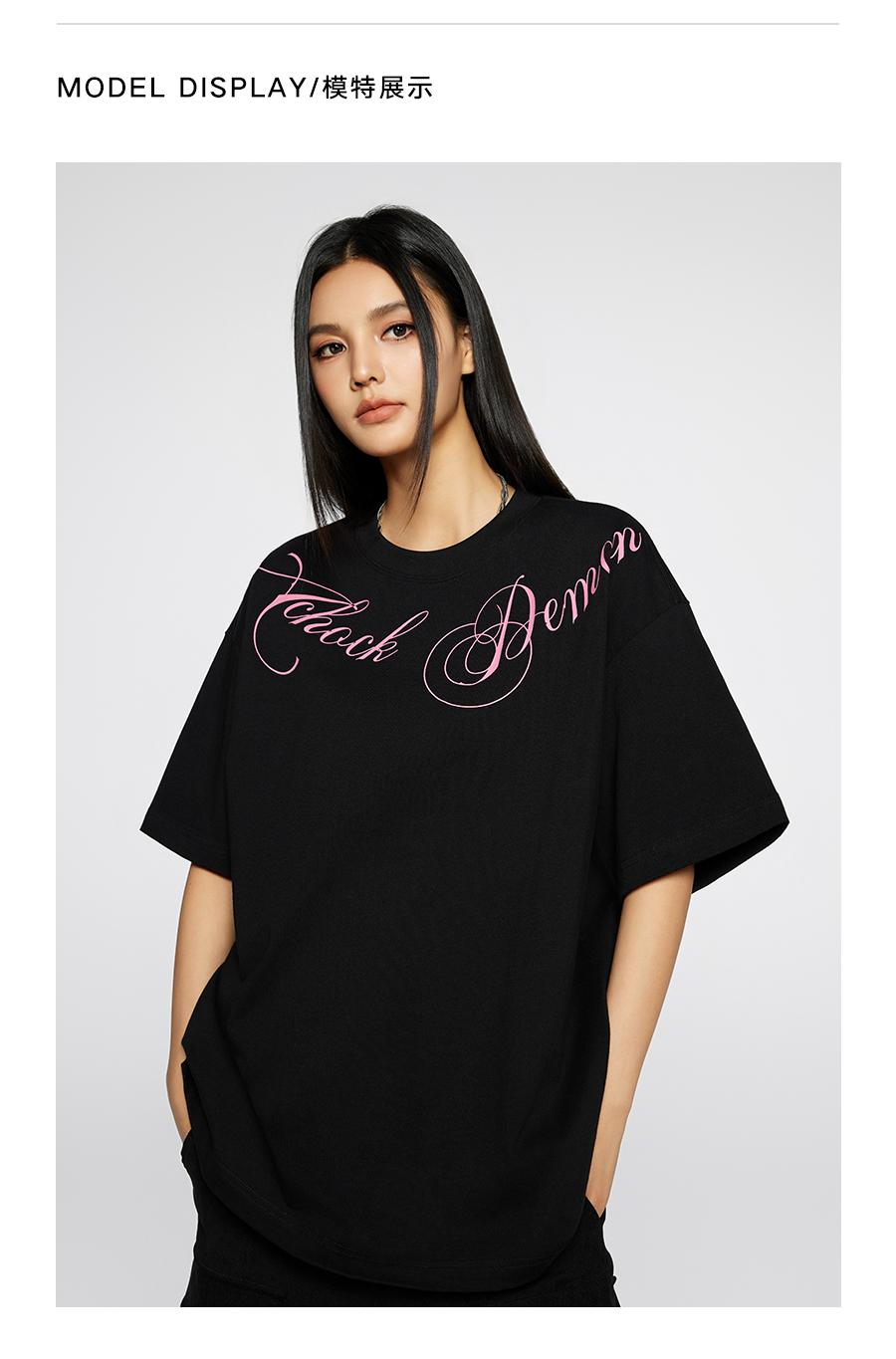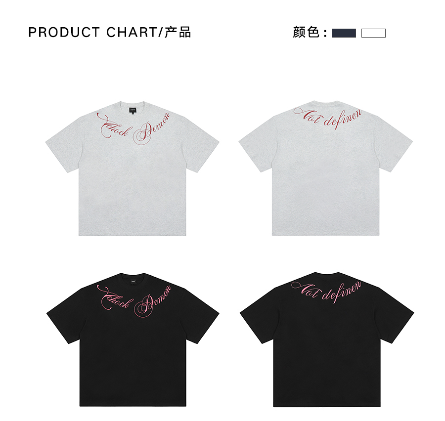 【Achock官方店】潮牌街头花体字印花T恤美式潮牌情侣圆领短袖男