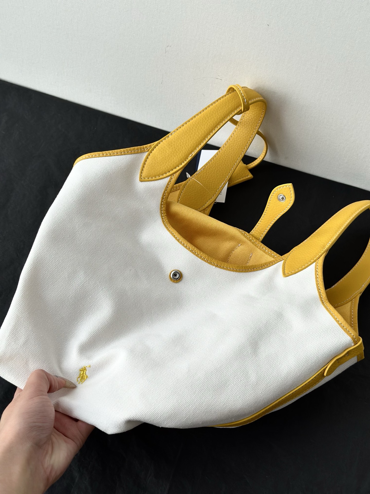采用一系列鲜艳色彩,旨在传递Ralph Lauren标志性 Polo 衫蕴含的欢乐态度与乐观精神,以明亮色彩、品质结构和标志性细节为基础,廓形简约慵懒,款式实用,这款托特包选用舒适的面料制成,搭配背心式肩带,便于携带和搭配!