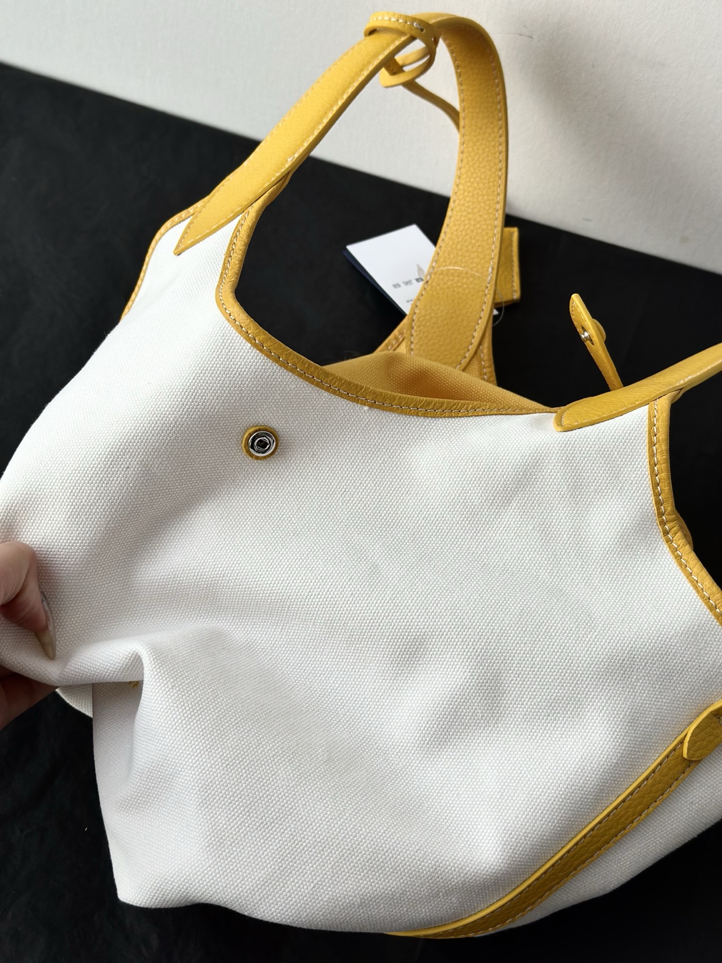 顶部嵌锁搭扣双重设计 根据物体大小调节包型!轻便又能装 自来旧的亚麻白色,很随意很慵懒的感觉