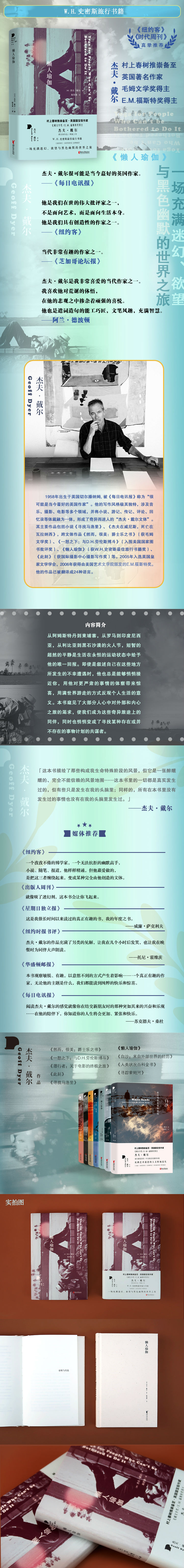 杰夫·戴尔是我蕞喜爱的当代作家之一。我喜欢他对荒诞的体悟,在他的悲观之中掺杂着顽强的喜悦。他也是遣词造句的能工巧匠,文笔风趣,充满智慧。——阿兰·德波顿