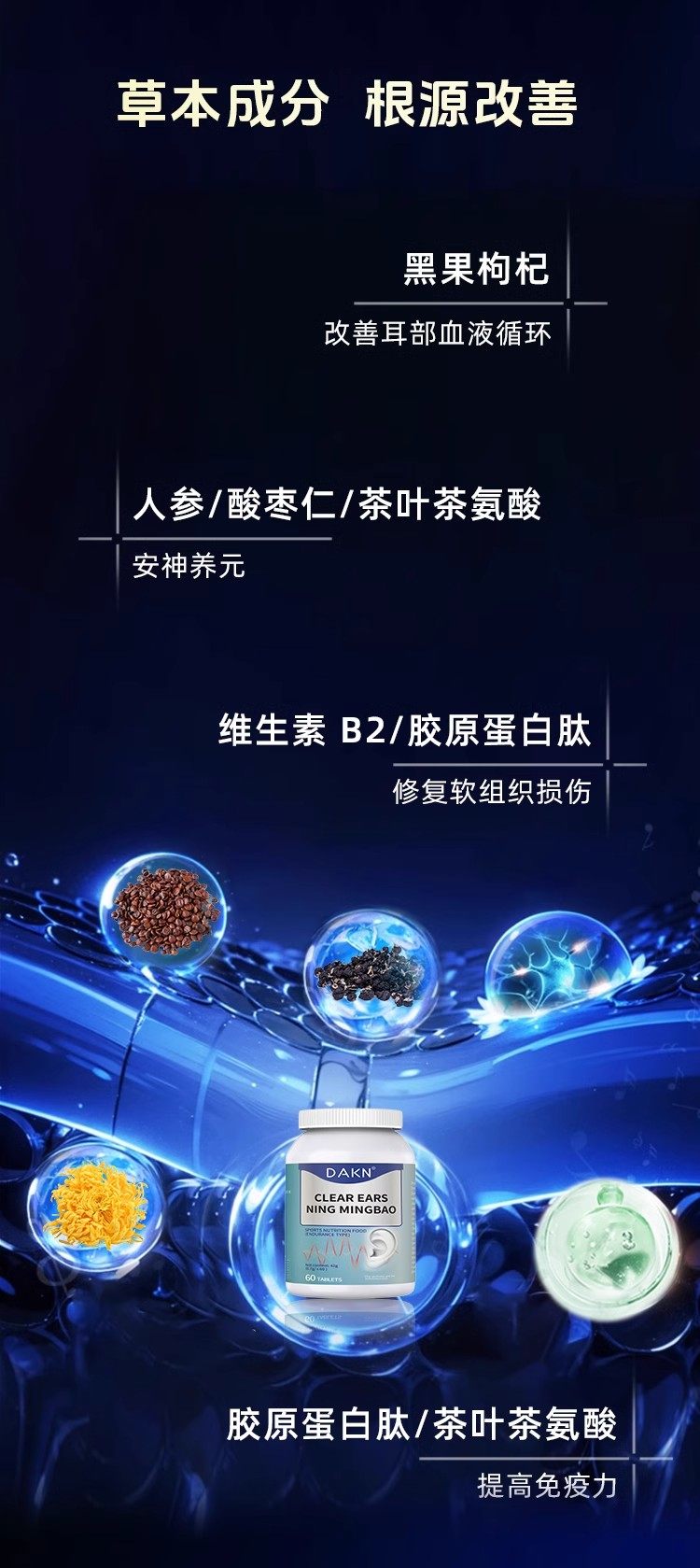 DAKN清洱宁鸣宝耳鸣神经性损伤修复脑鸣克星耳鸣宝清耳