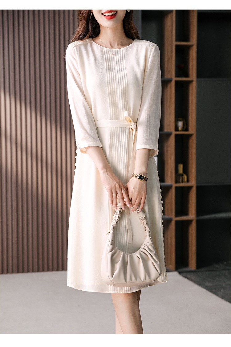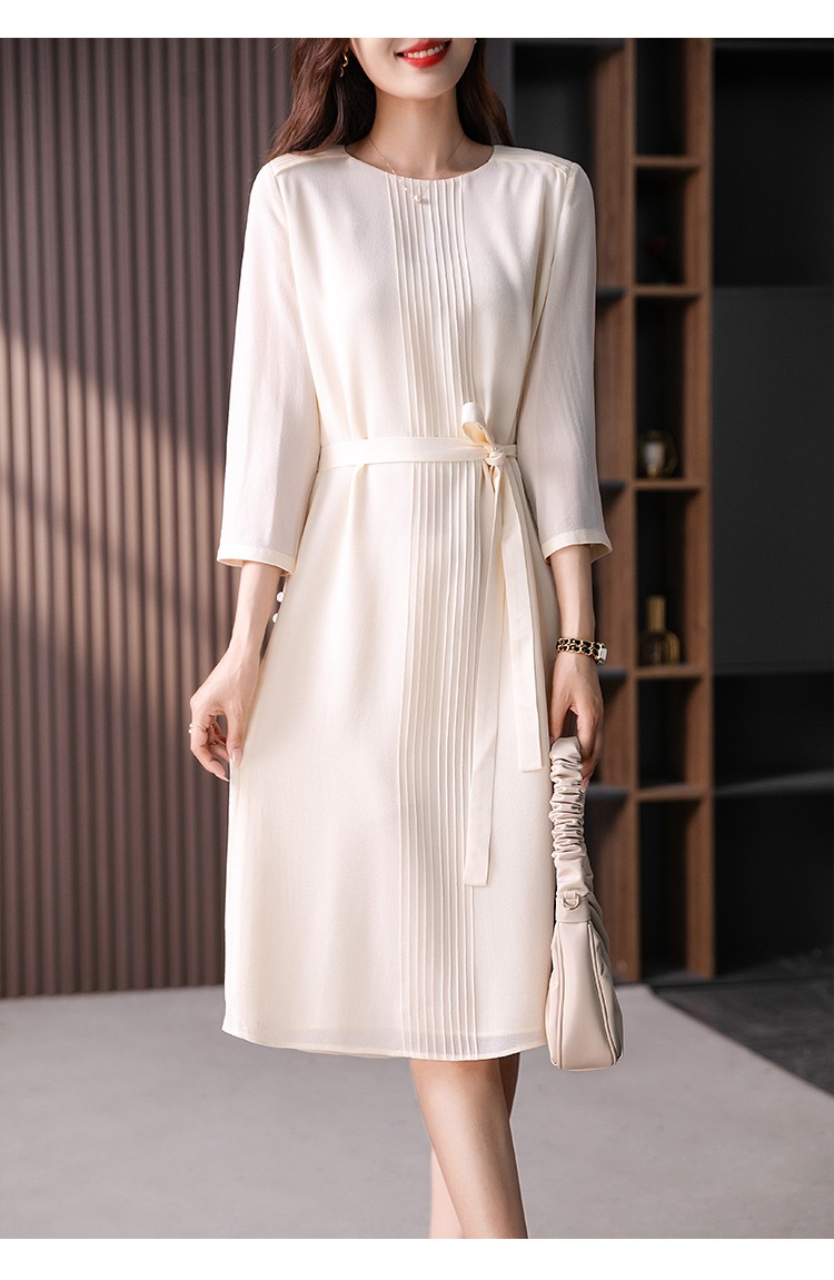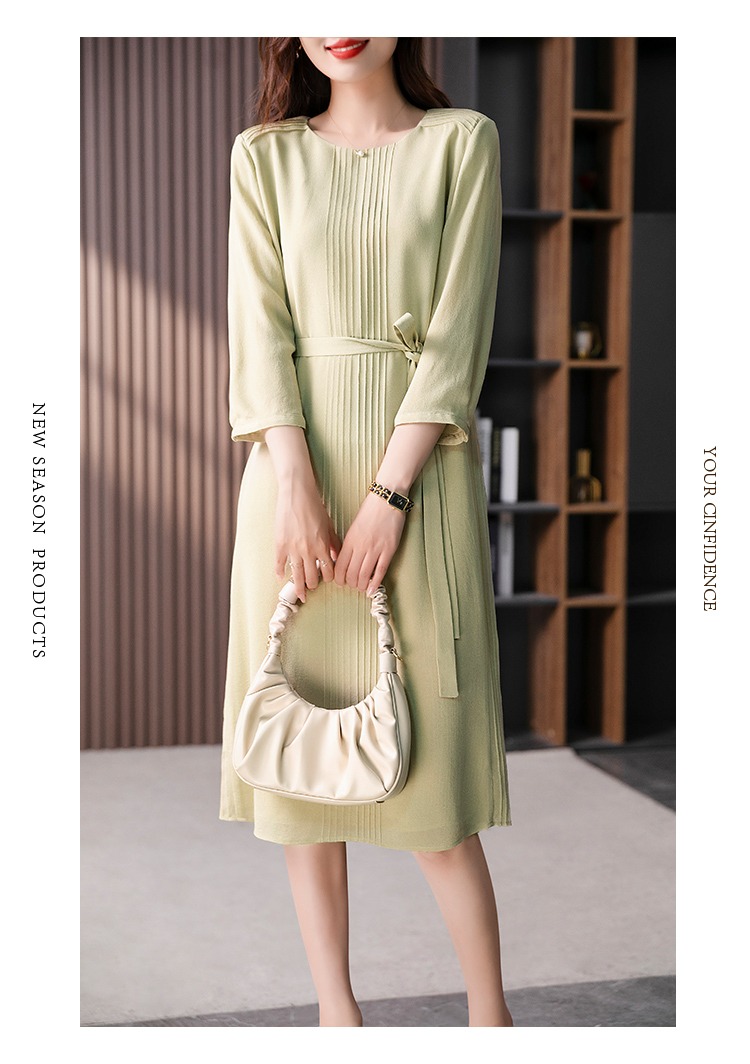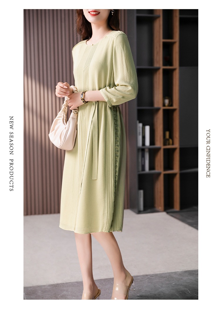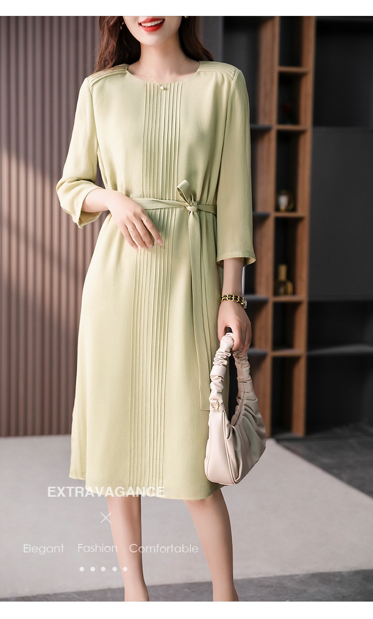 YX【定制12天】减龄真丝连衣裙女2024夏季新款气质收腰显瘦桑蚕丝中长裙子