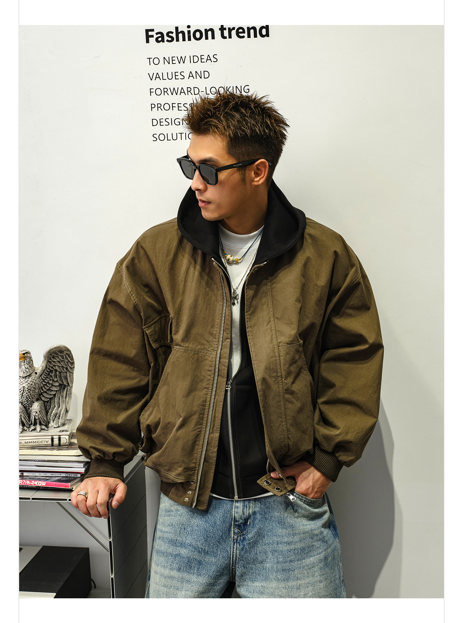 徐太浪【军绿色 拼接工装】缉明线立领夹克男春秋季休闲拉链外套