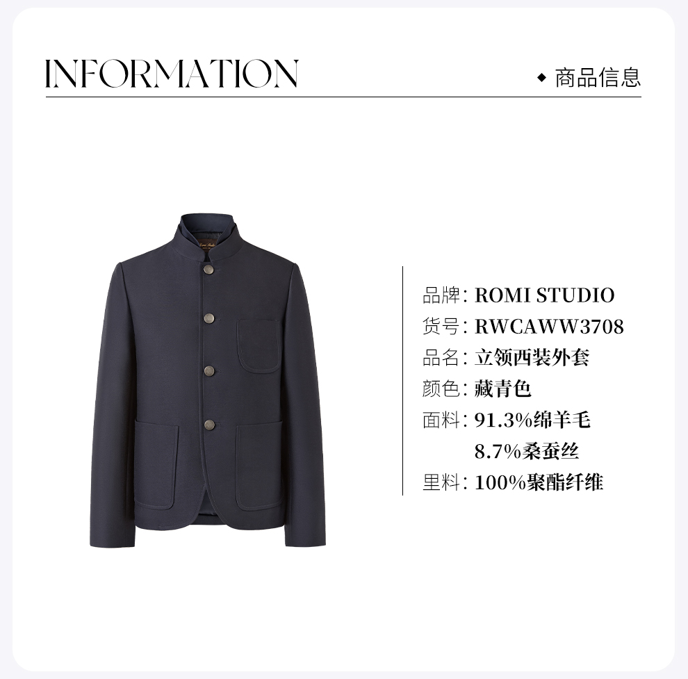 ROMI STUDIO“东方美学”羊毛桑蚕丝混纺气质立领西装 RWCAWW3708