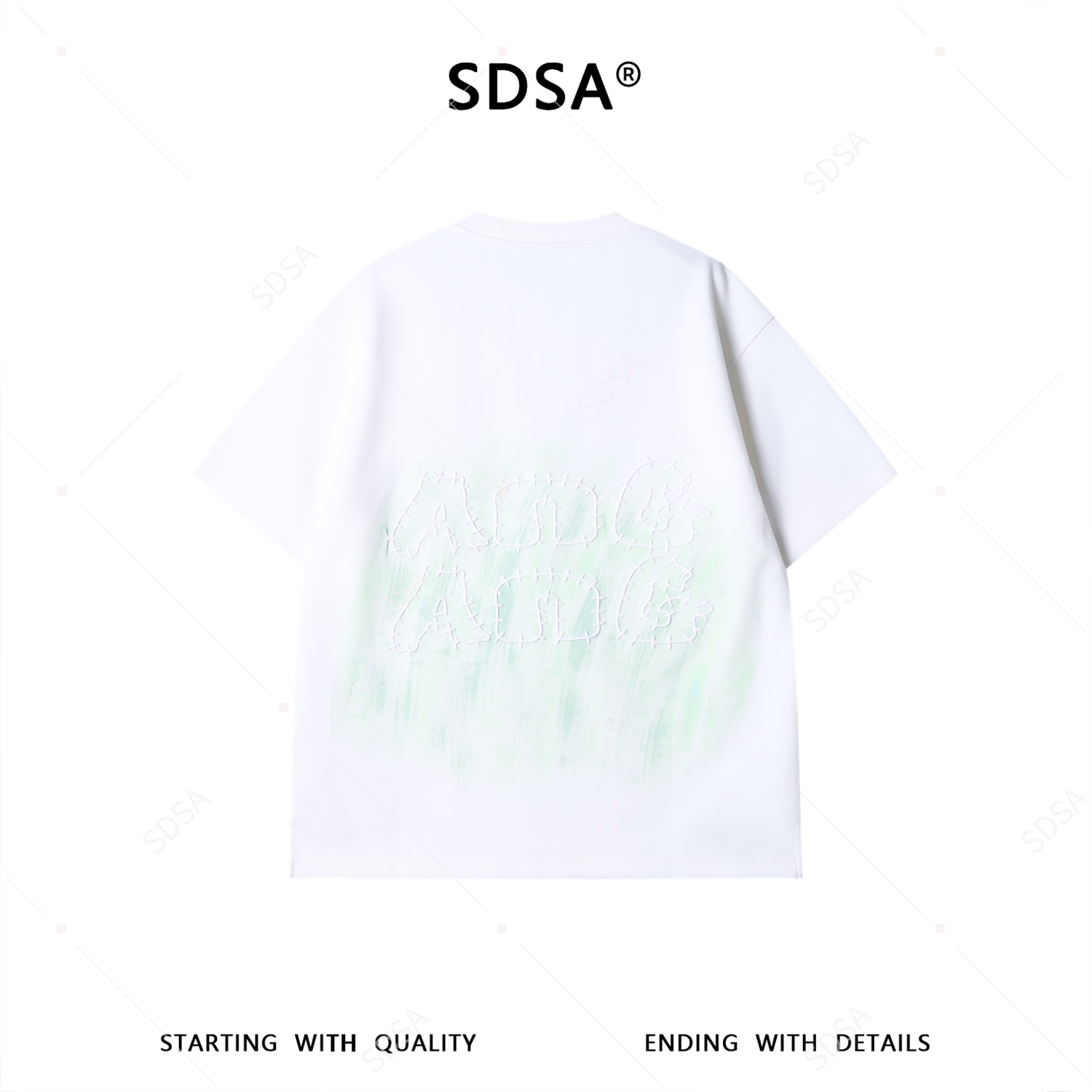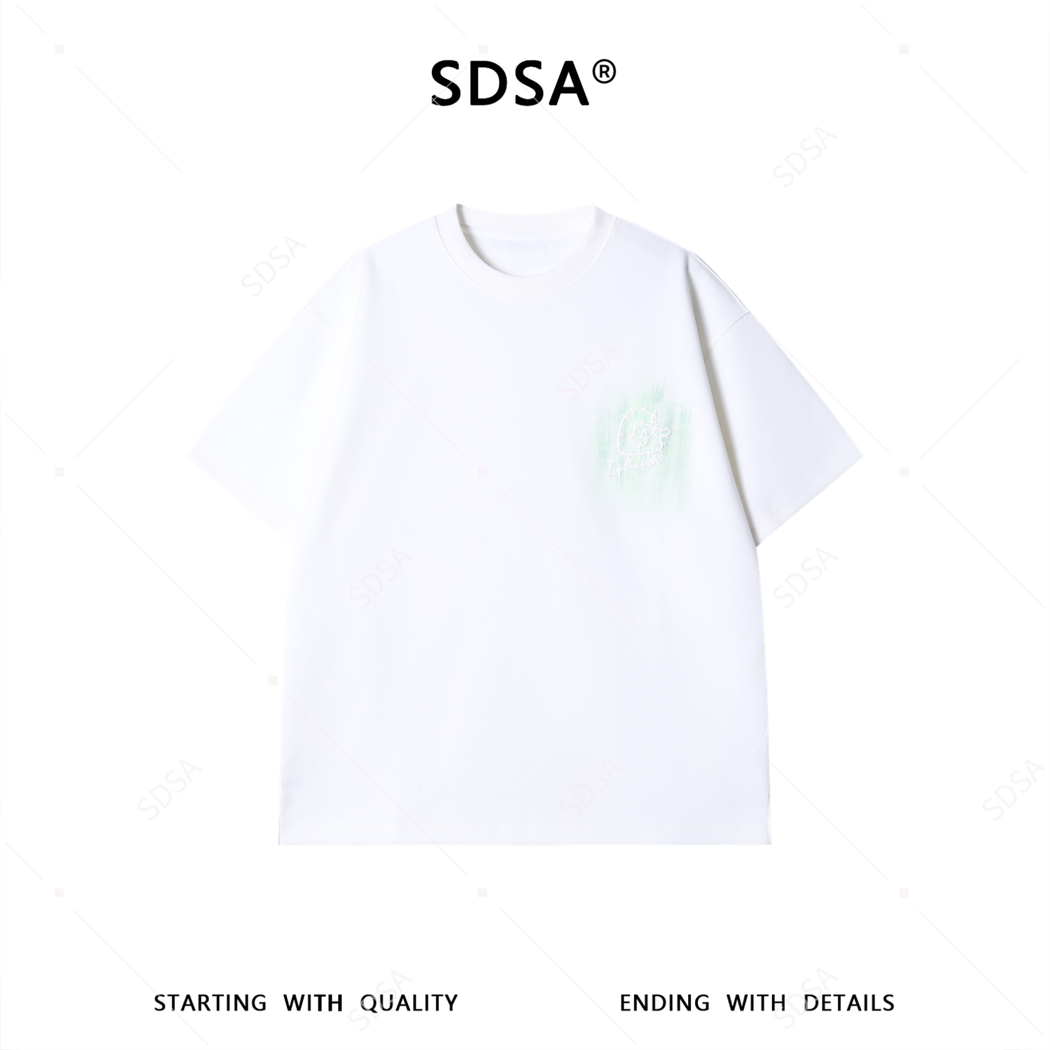 SDSA男装2026新款潮牌简约风短袖t恤男女款绿晕刺绣宽松半袖上衣