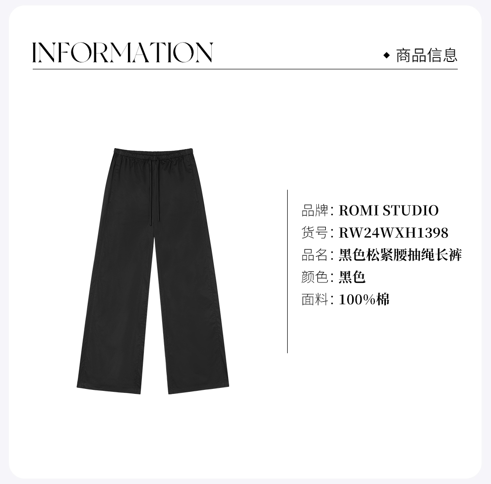 ROMI STUDIO“简约随性”舒适纯棉哑光雾感松紧腰休闲裤RW24WXH1398(现货)