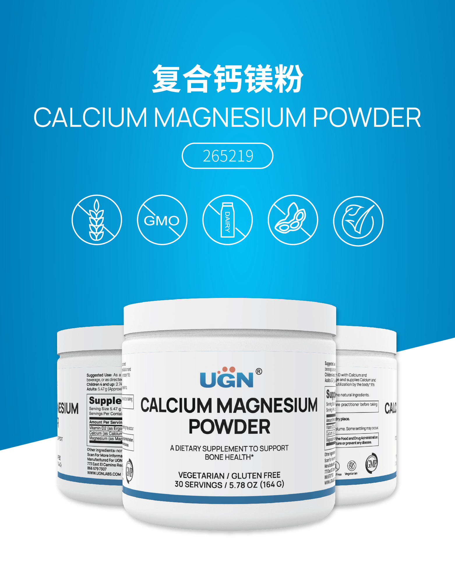 UGN复合钙镁粉(164克/瓶)内含小勺,原味/无味/不苦,建议添加在牛奶、酸奶、蛋白粉或其他食物中服用