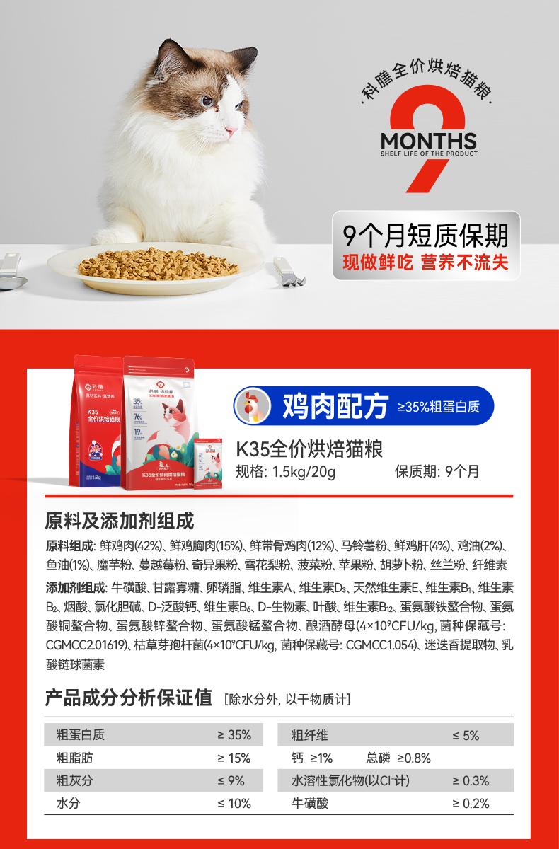 【精准蛋白】K35全价高鲜肉烘焙猫粮益生菌0软便自有工厂