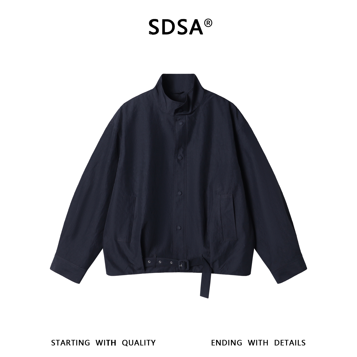 SDSA男装2026新款高贵轻奢韩版简约按扣立领夹克外套百搭宽松纯色