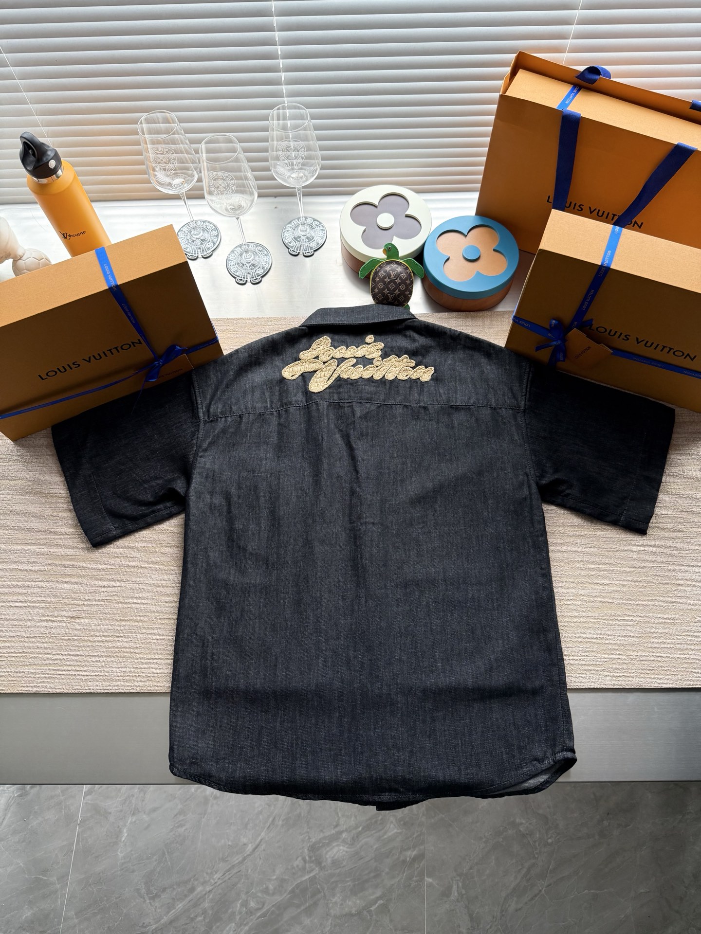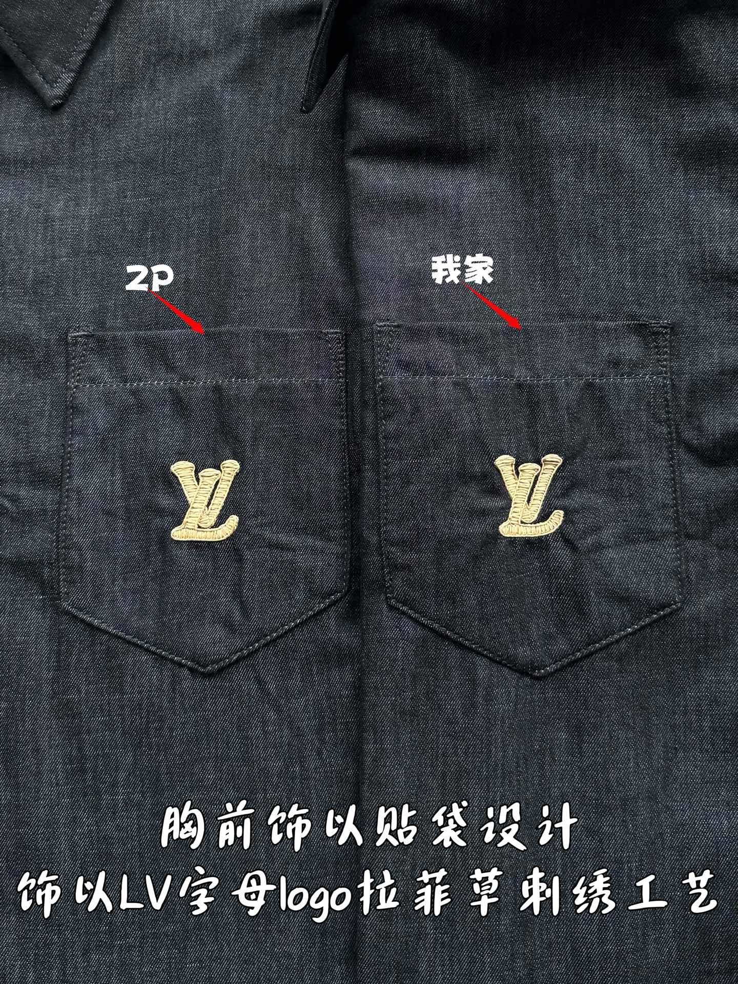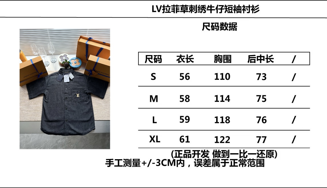 Louis Vuitton25ss拉菲草刺绣牛仔短袖衬衫‼️整件衣服15000购买ZP拆解打造,采用定制牛仔棉质面料,做到100%全棉进口纱线,意大利进口制造,门襟开模定制LV字母标识纽扣,五金底座,胸前贴袋设计,前后幅饰以LV字母标识拉菲草刺绣,真正做到1:1copy 码数: S M L XL