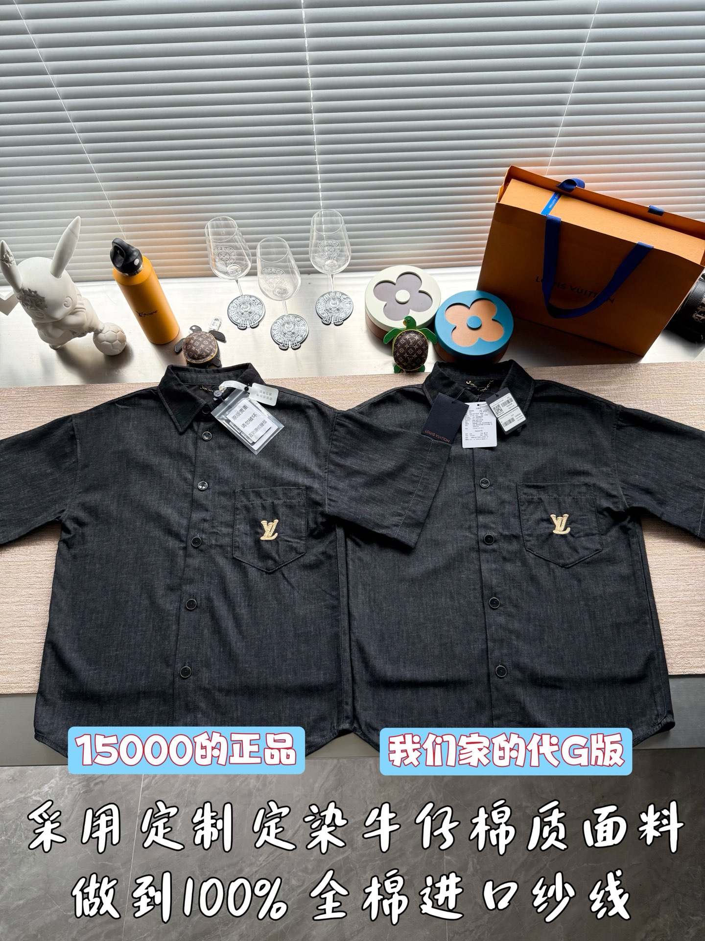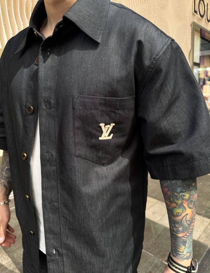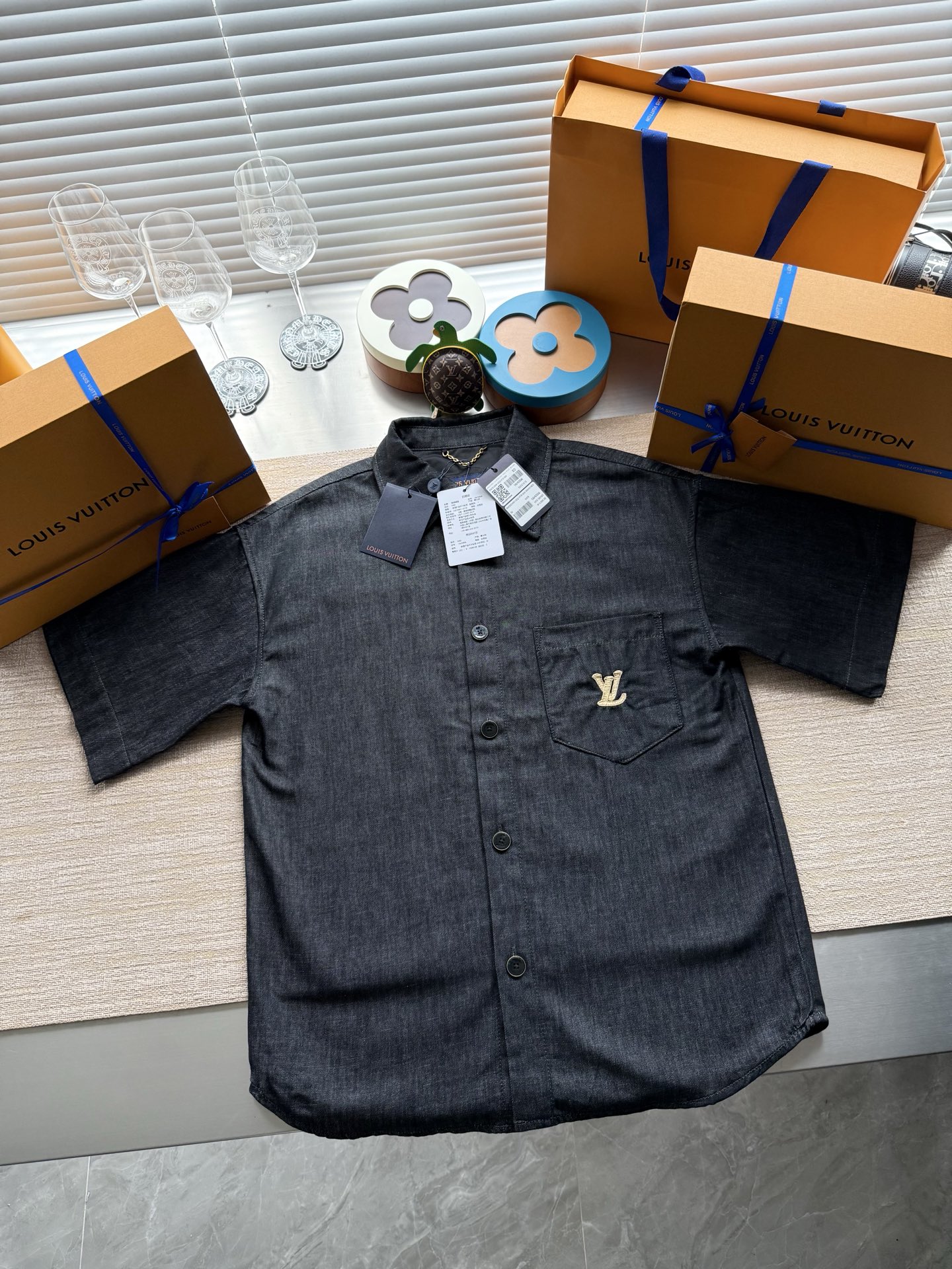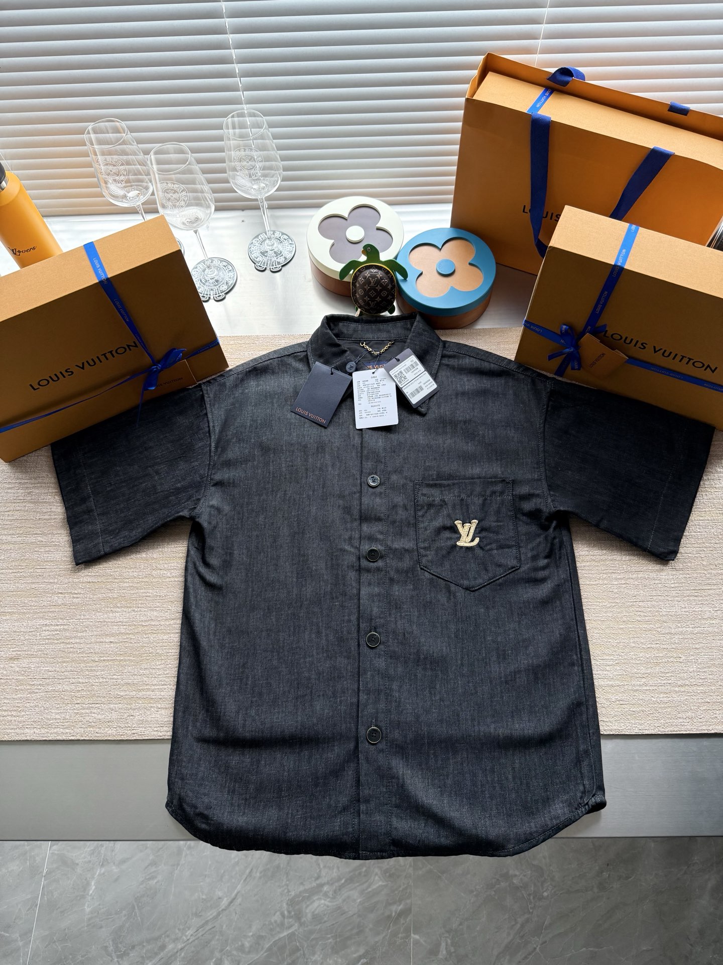 Louis Vuitton25ss拉菲草刺绣牛仔短袖衬衫‼️整件衣服15000购买ZP拆解打造,采用定制牛仔棉质面料,做到100%全棉进口纱线,意大利进口制造,门襟开模定制LV字母标识纽扣,五金底座,胸前贴袋设计,前后幅饰以LV字母标识拉菲草刺绣,真正做到1:1copy 码数: S M L XL