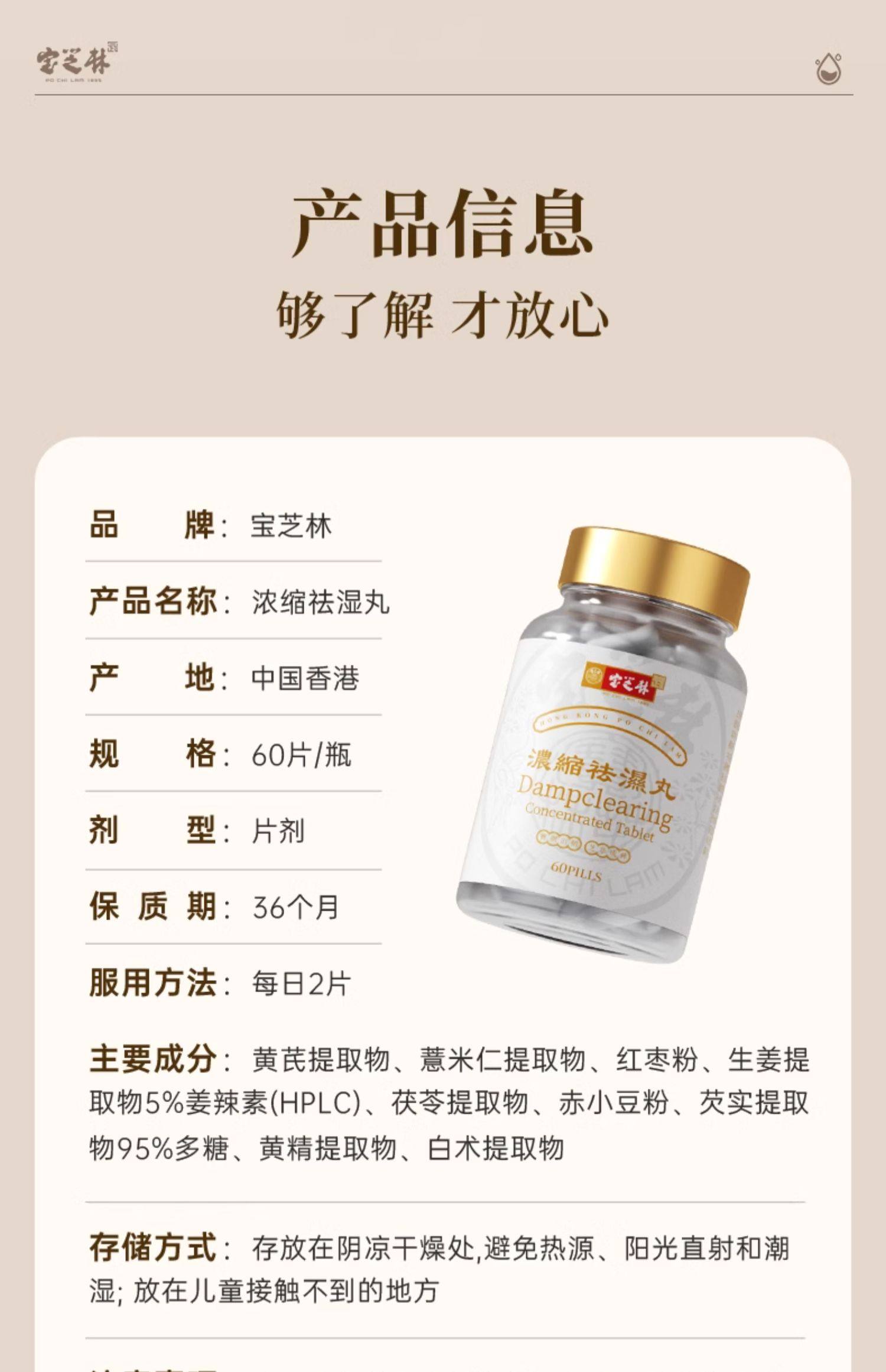 香港宝芝林祛湿丸祛湿轻去湿轻调理水肿草本祛湿60粒进口官方正品