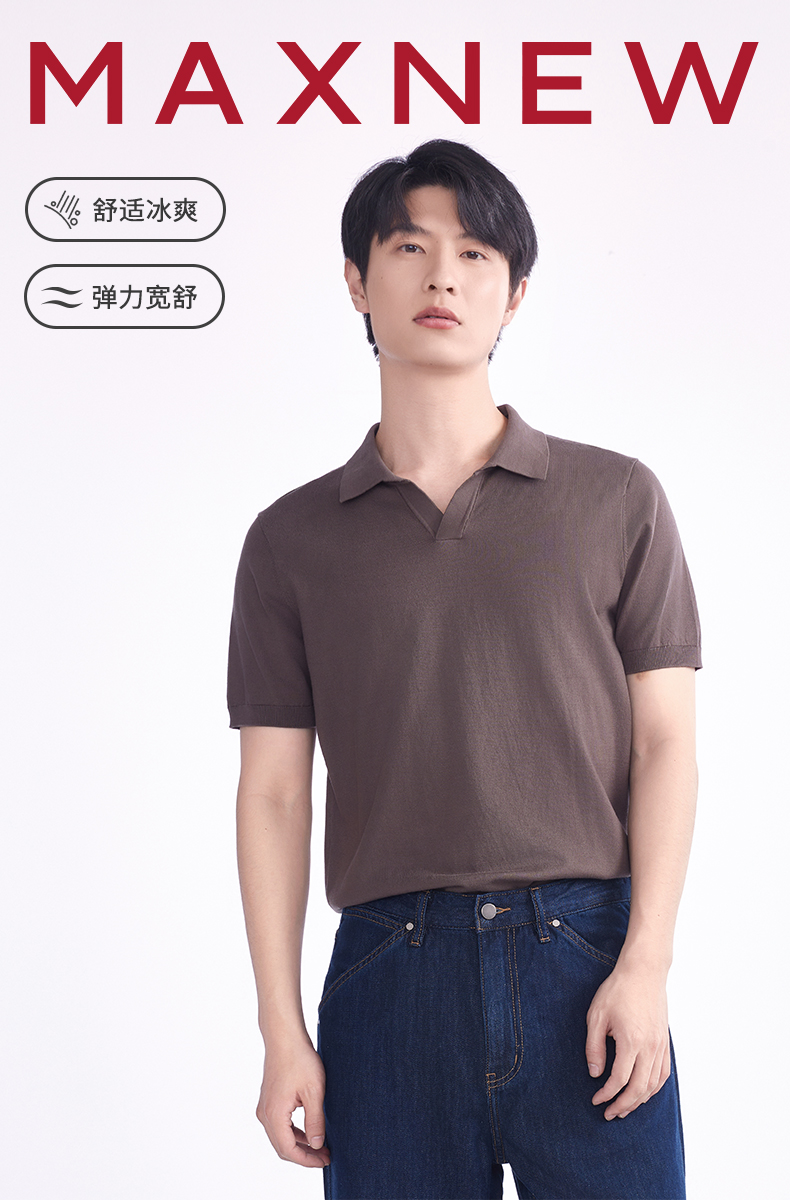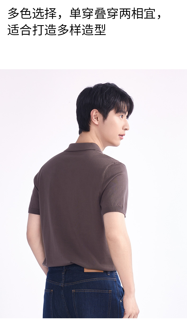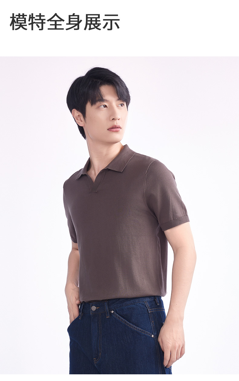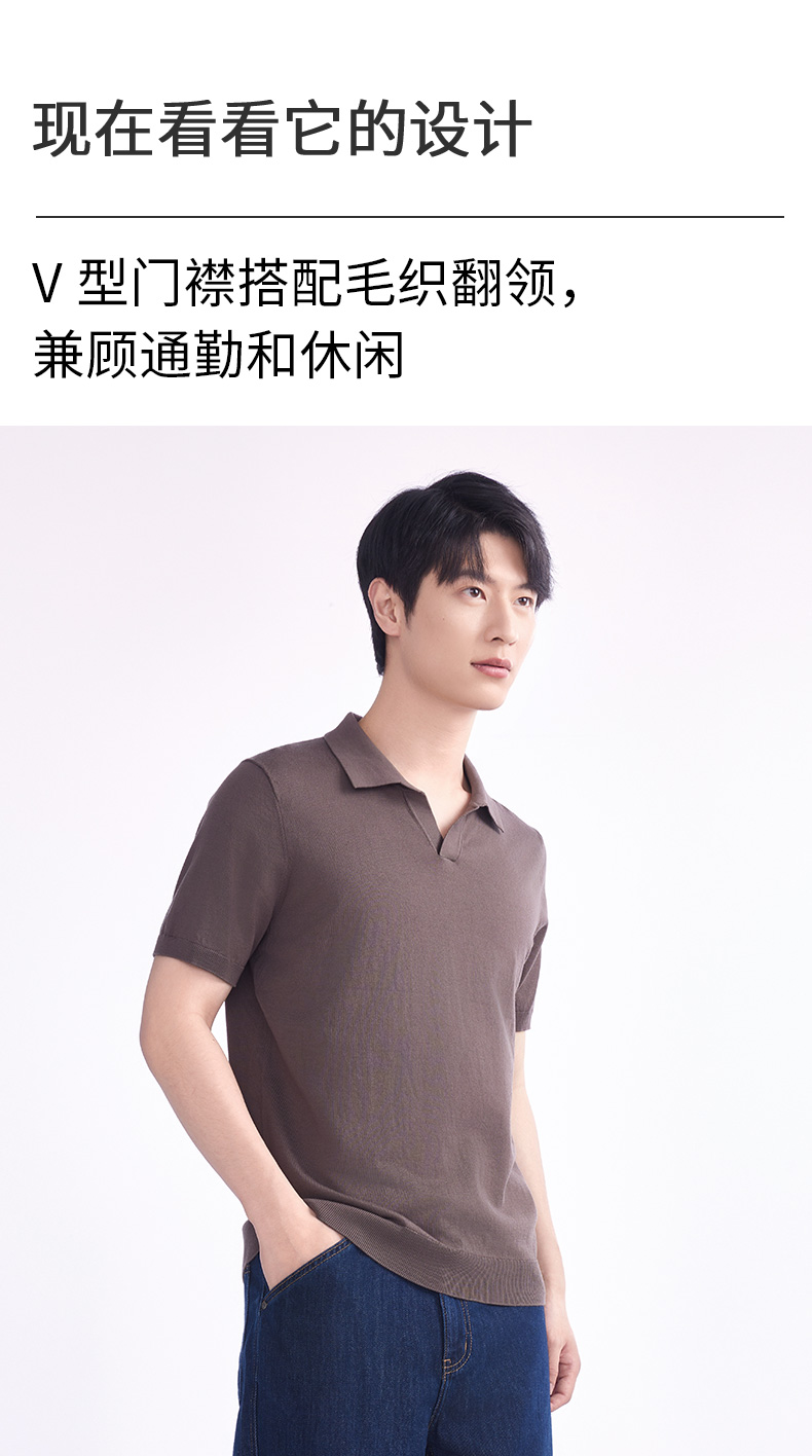 【POLO】男装毛织混纺肌理翻V领POLO V领上衣服合身休闲 1N2111110