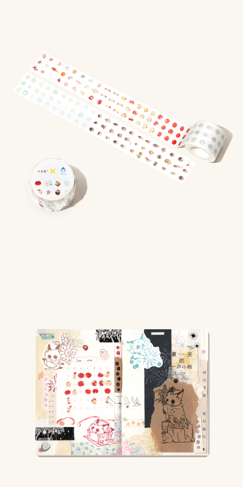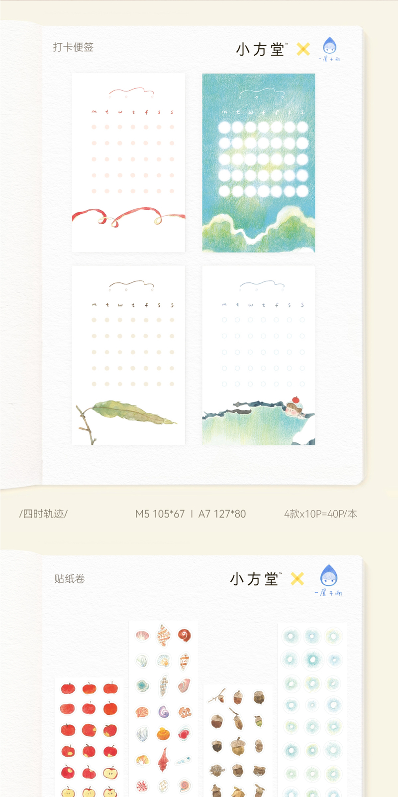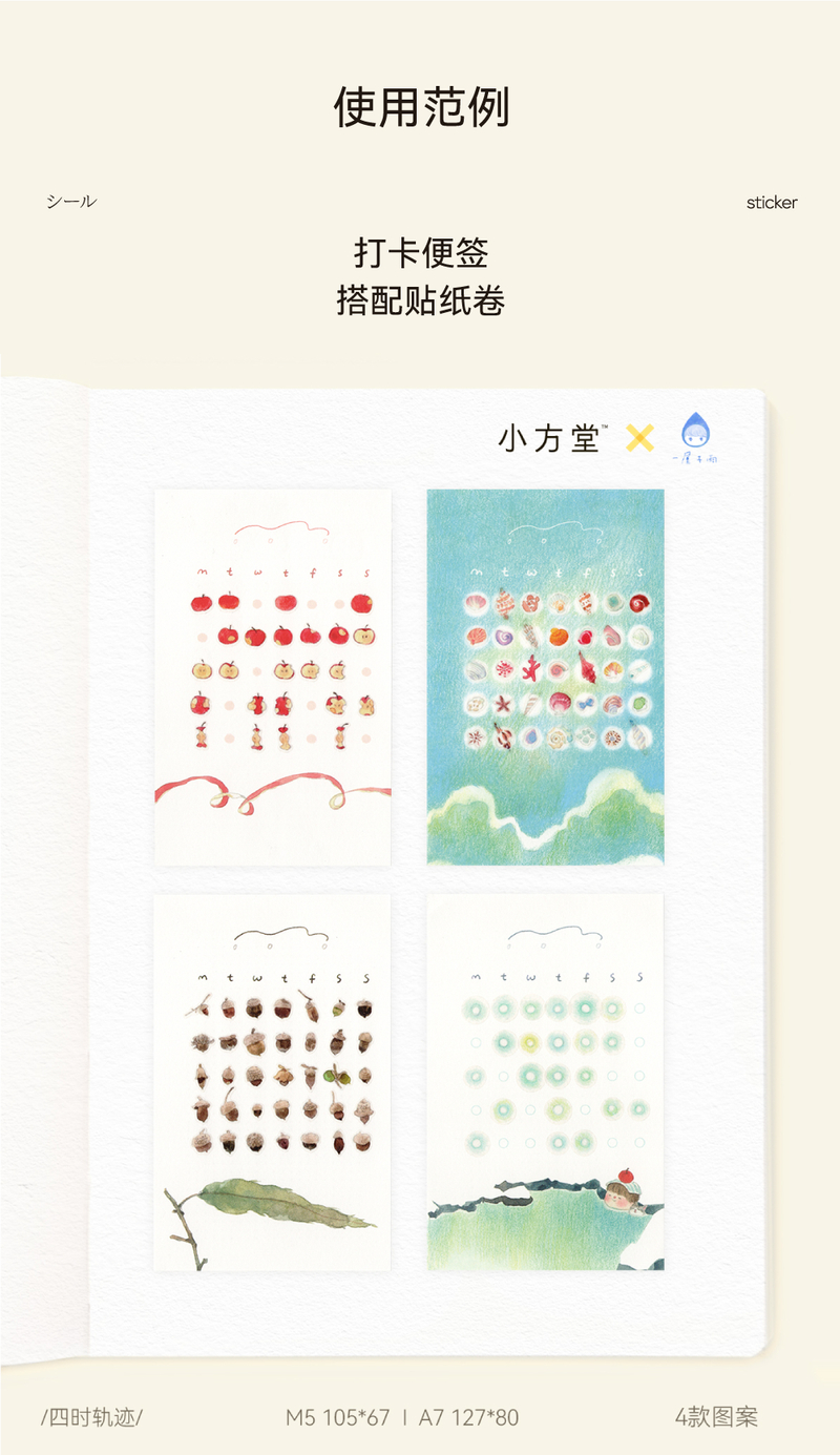 小方堂 四时轨迹 打卡便签内页和纸模切贴纸卷