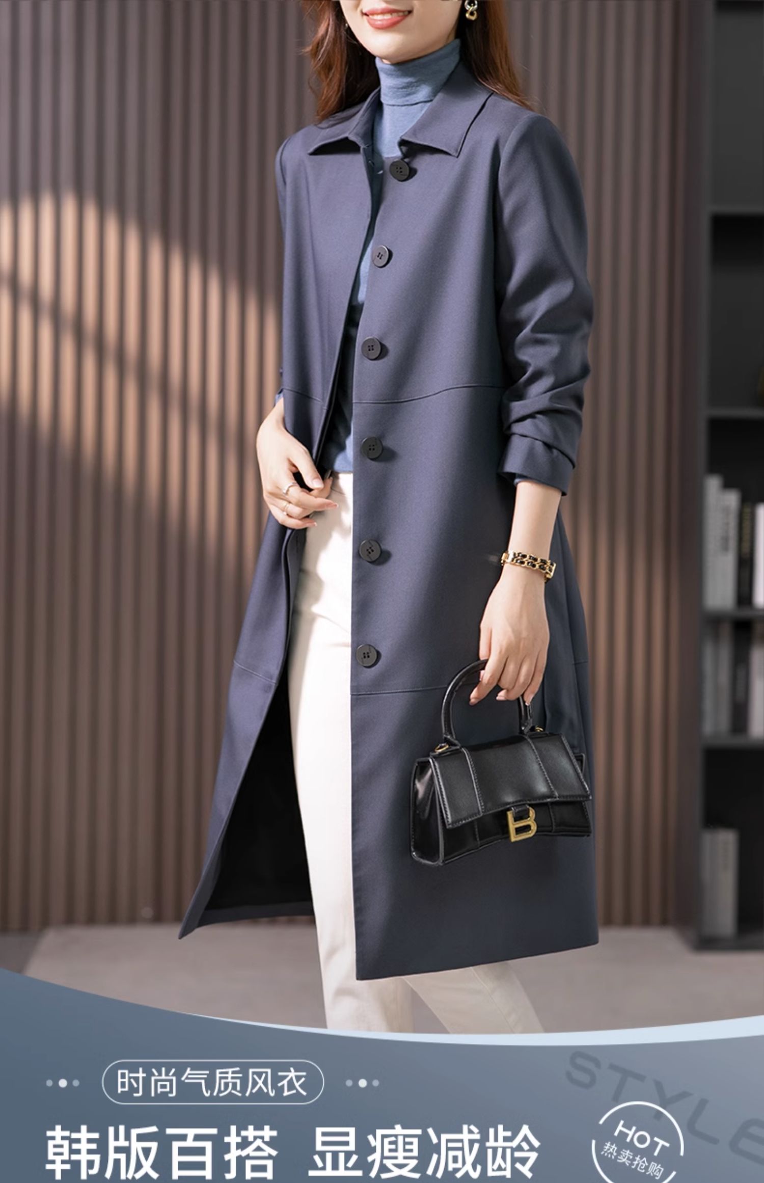 原形风衣外套女2023秋季新款中长款韩系风格高级感宽松休闲大衣
