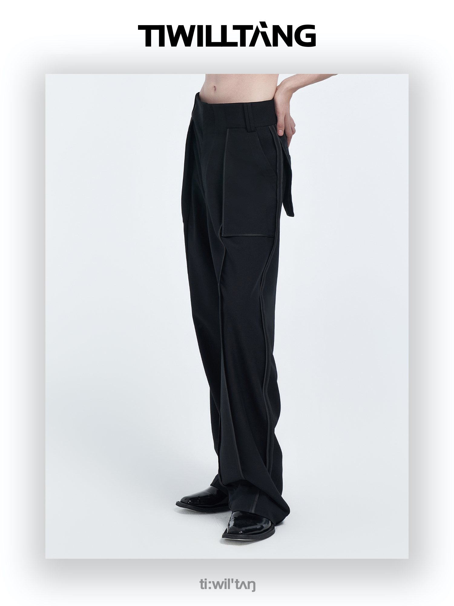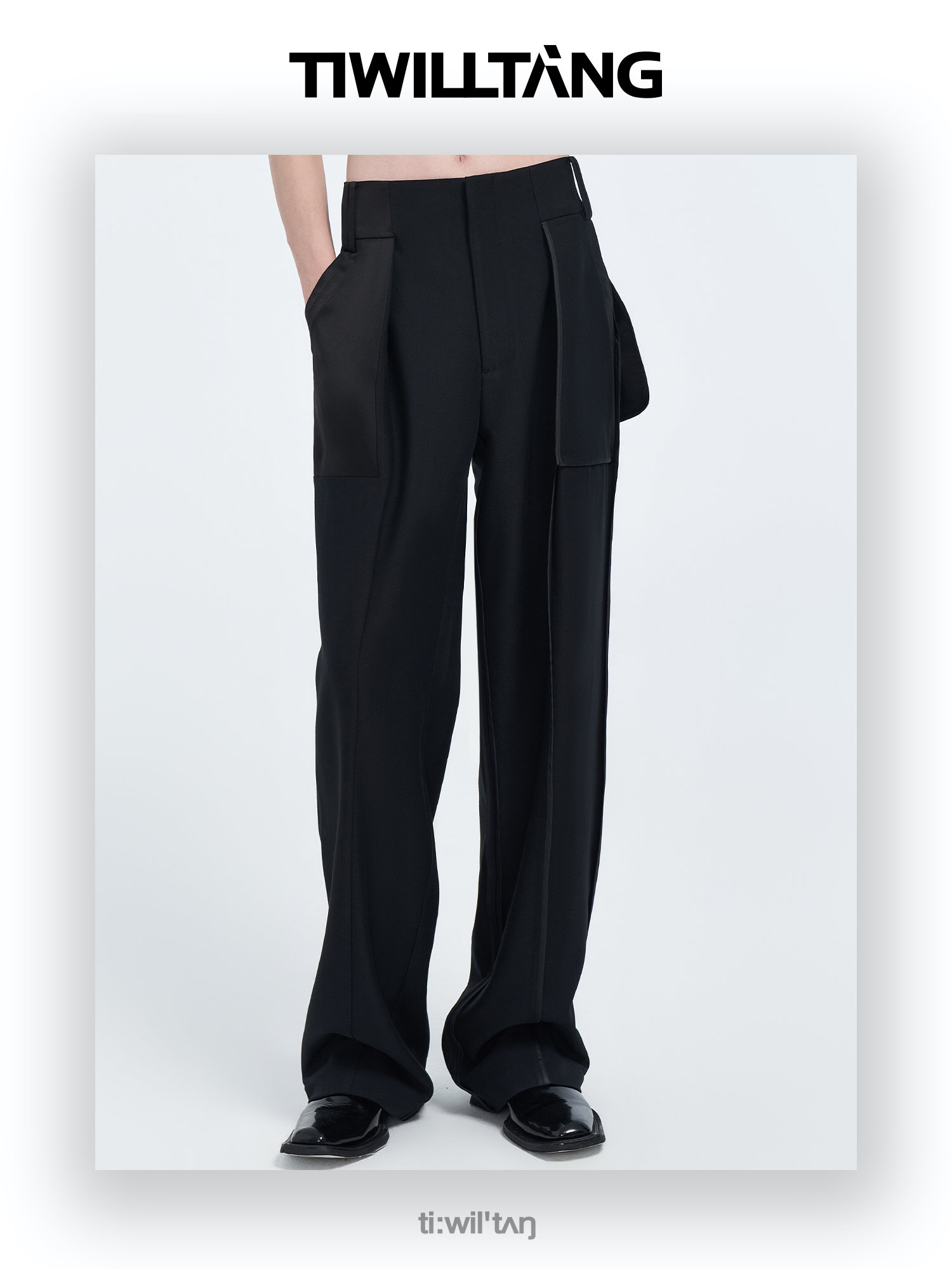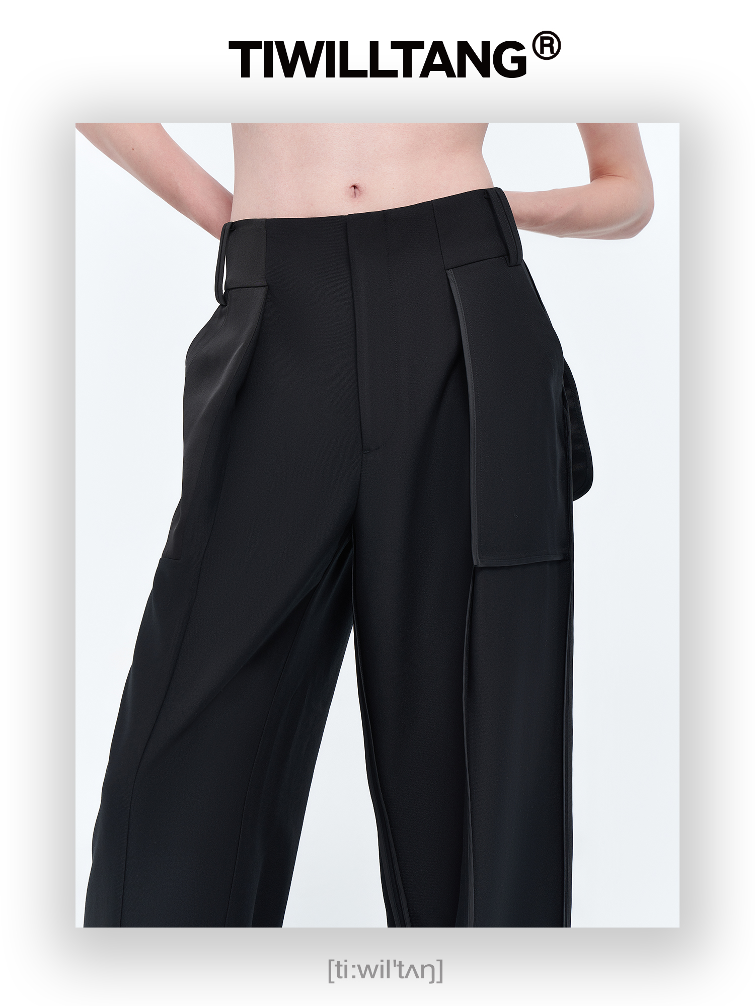 TIWILLTANG启世录 “obsidian”satin“曜岩” 黑色缎面拼接长裤