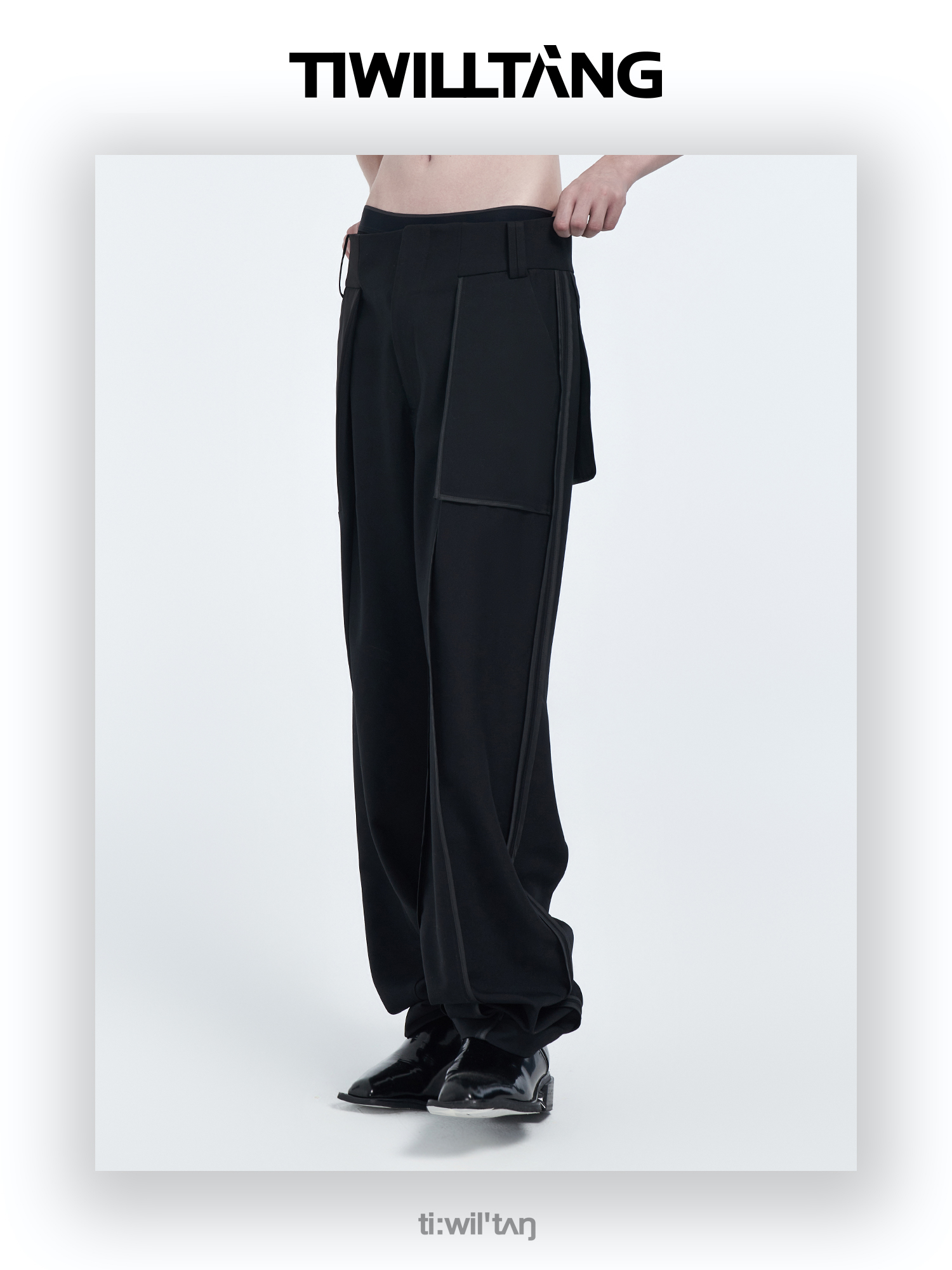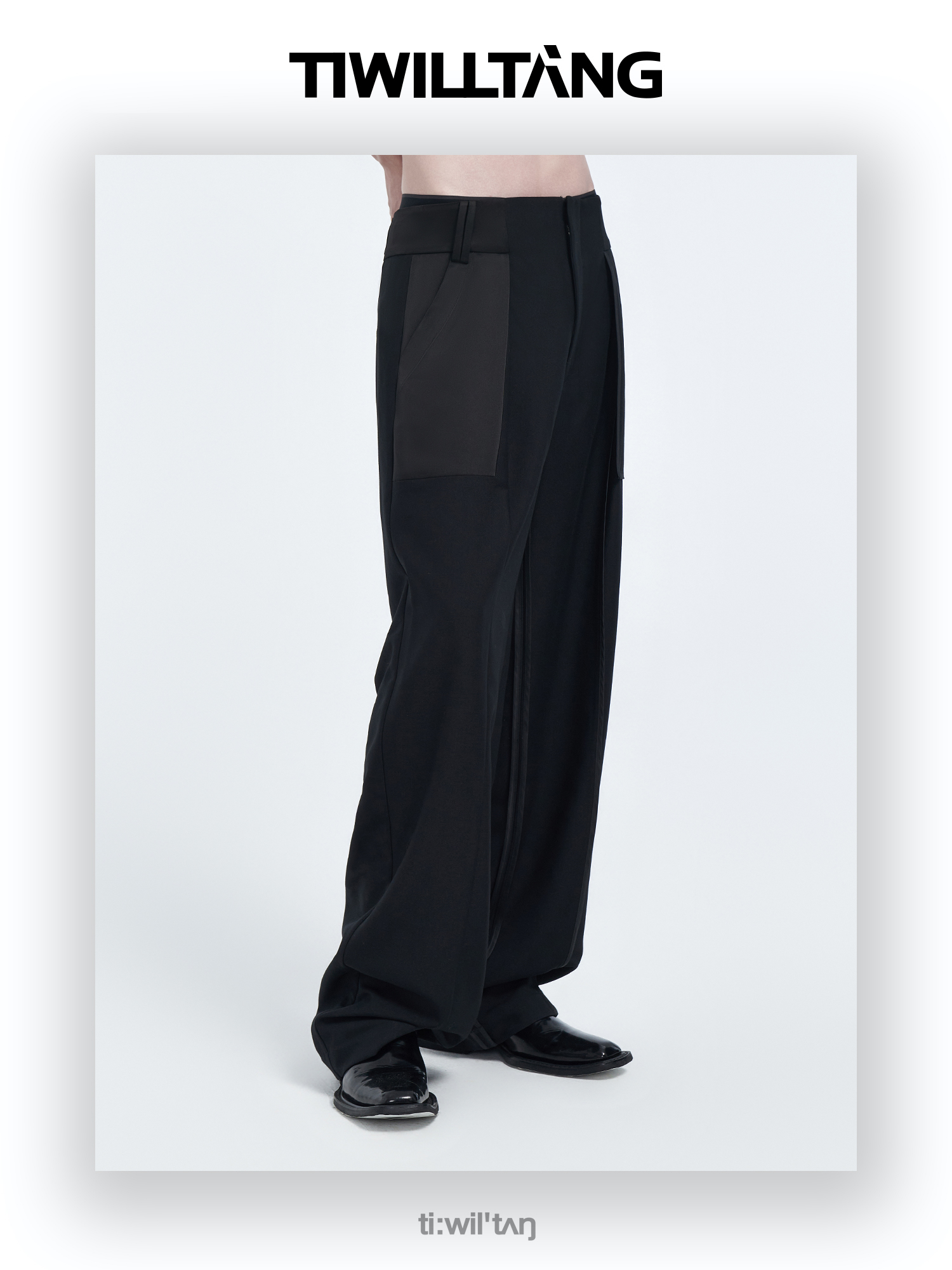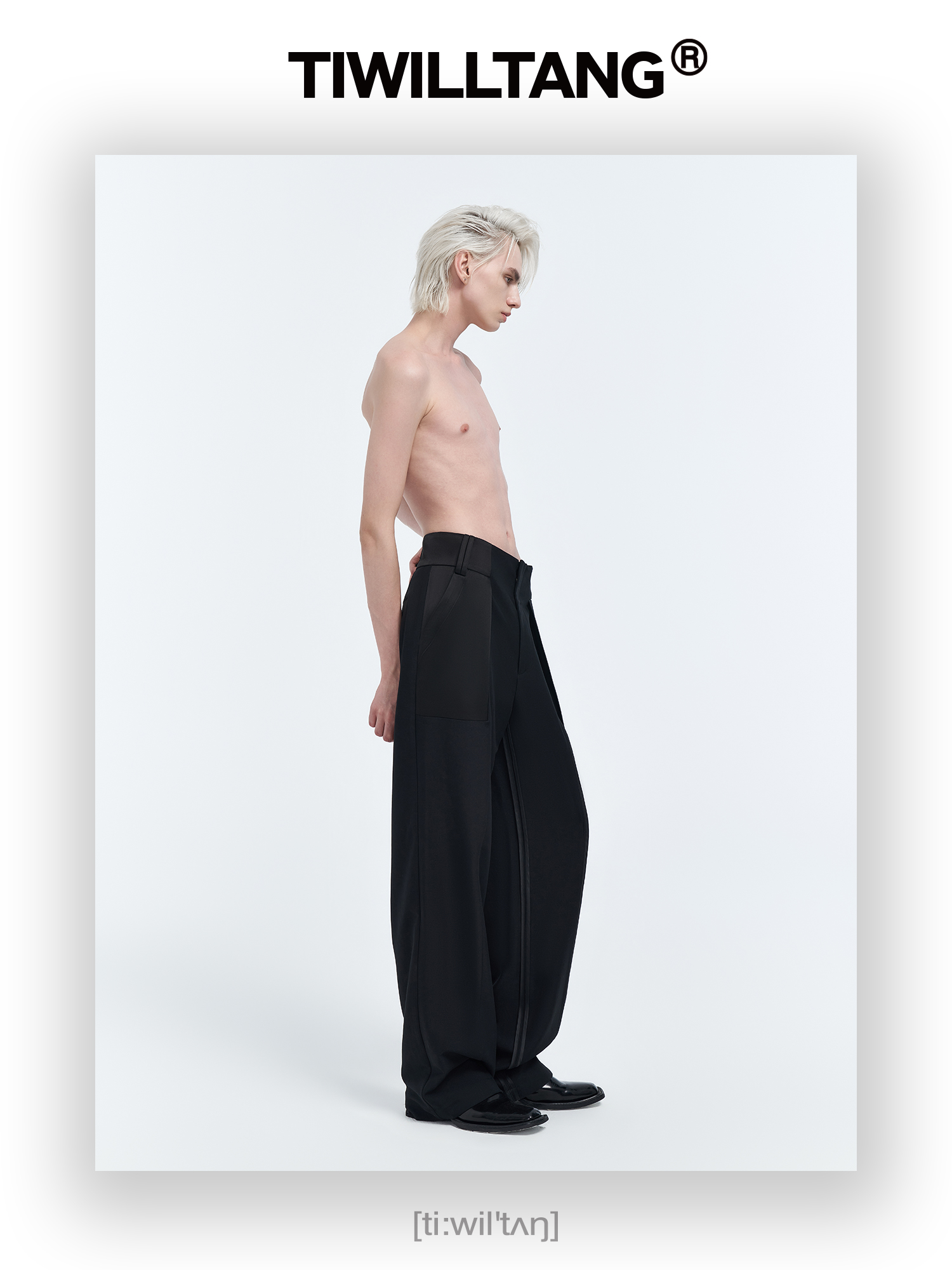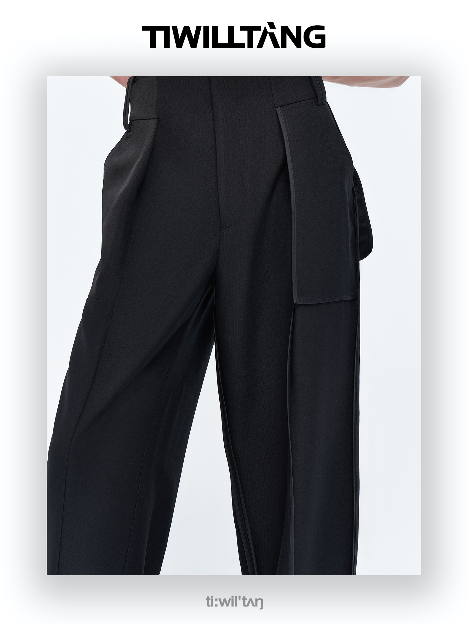 TIWILLTANG启世录 “obsidian”satin“曜岩” 黑色缎面拼接长裤