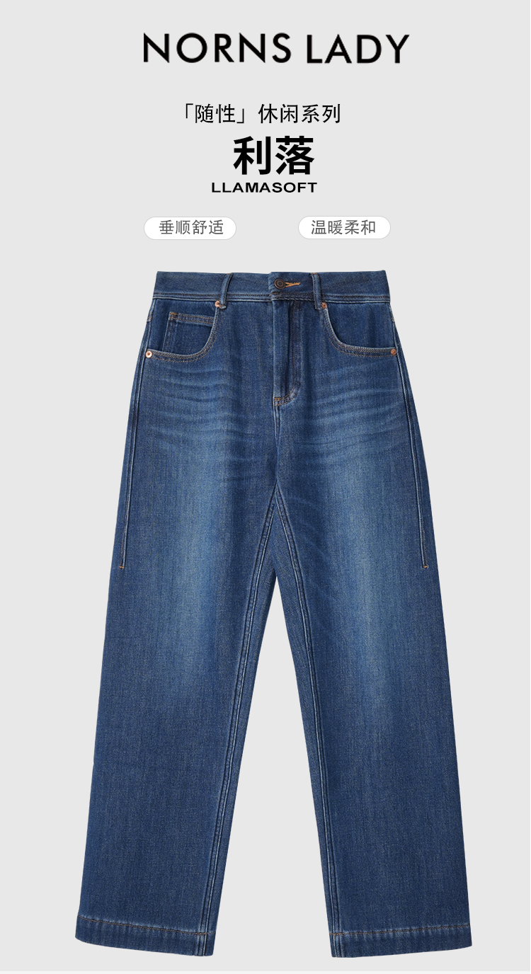 NORNS LADY诺恩 复古直筒牛仔裤宽松高腰阔腿休闲长裤 H25KC14968