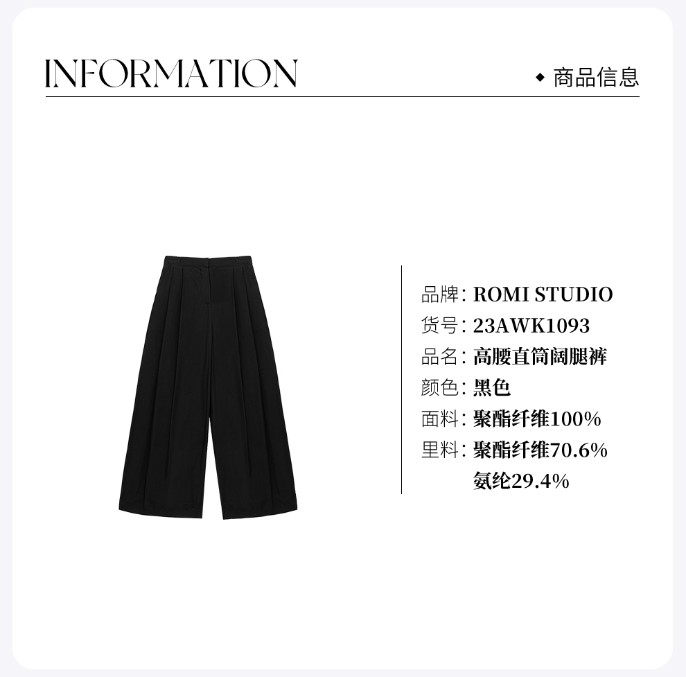 ROMI STUDIO“禅意侘寂”高腰百搭直筒轻盈黑色阔腿裤23AWK1093
