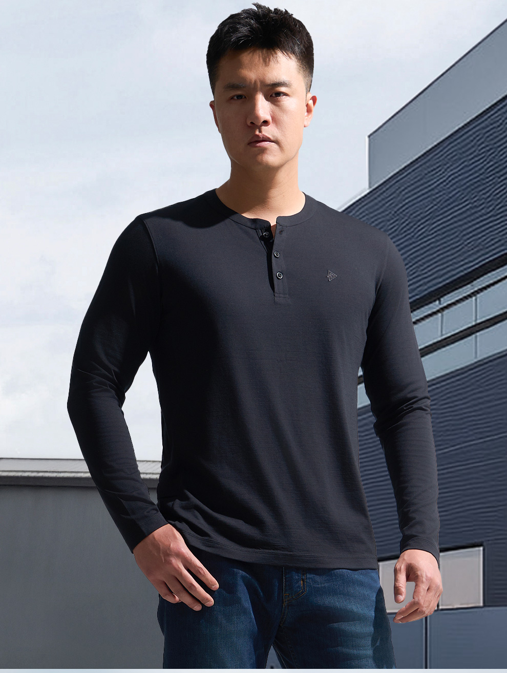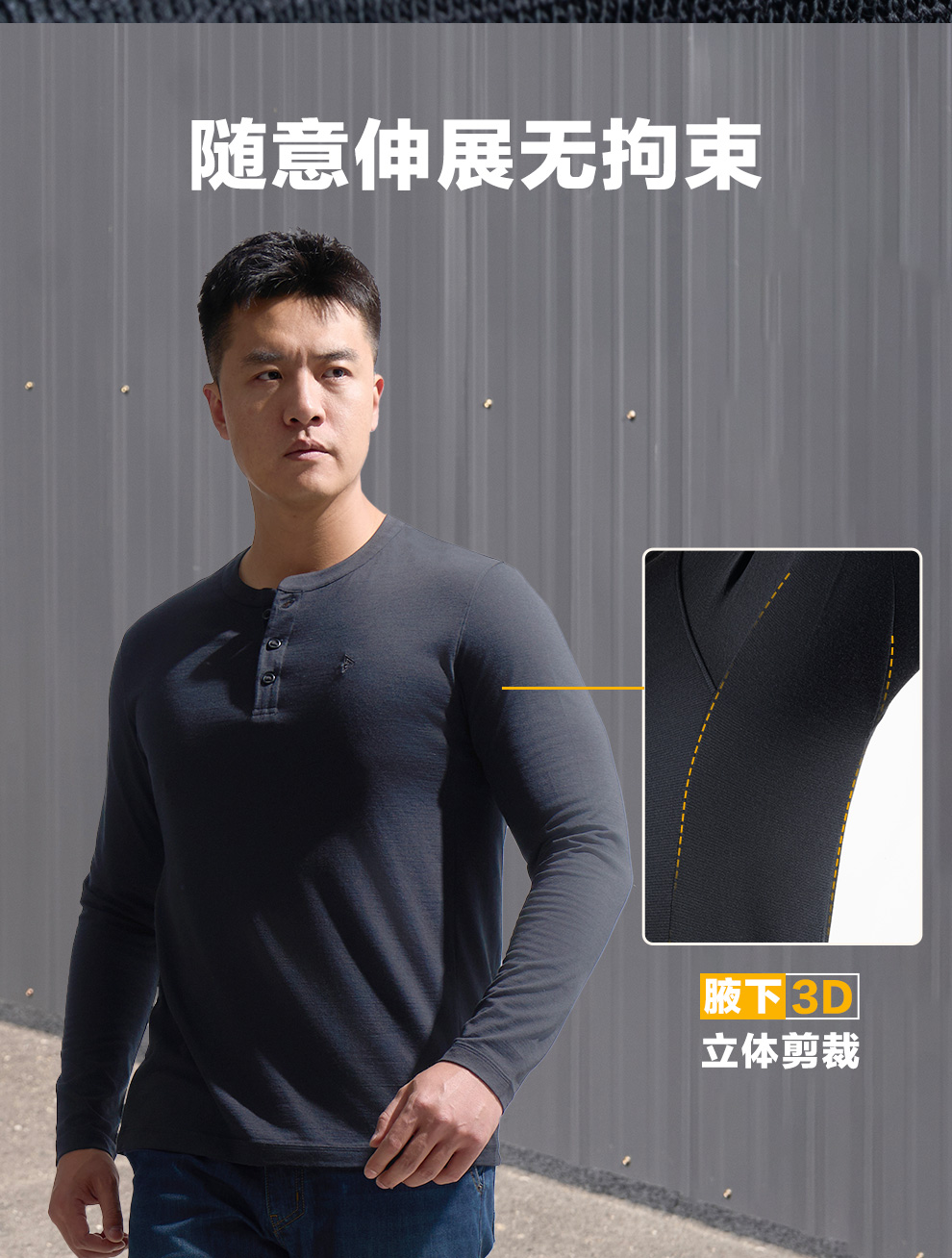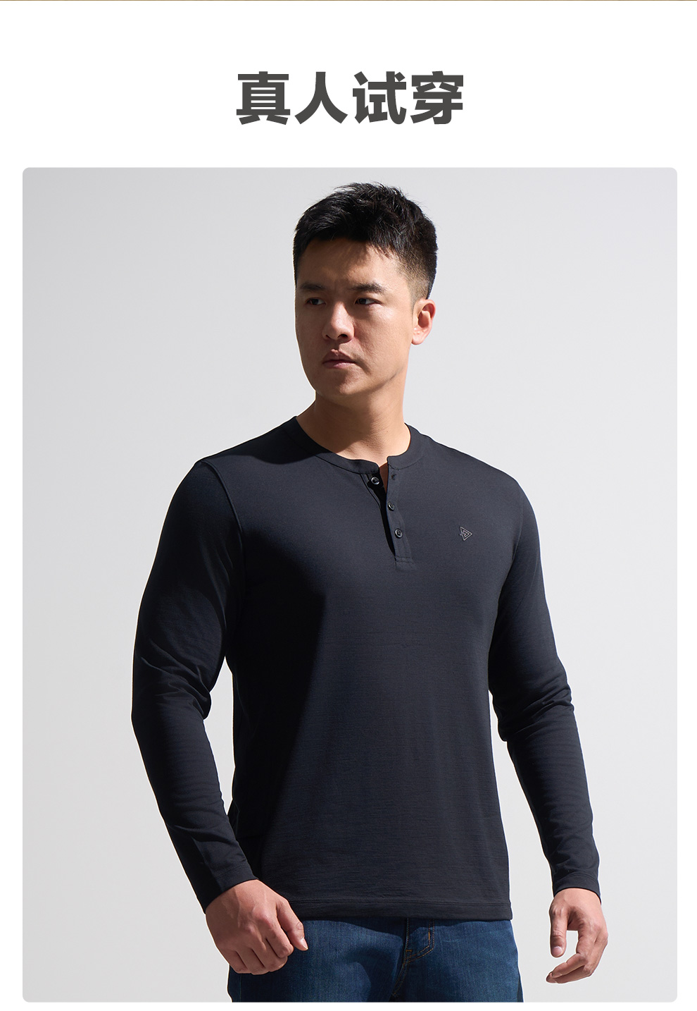 【龙牙上新】龙牙秘之风羽PRO美丽诺羊毛亨利领长袖T恤