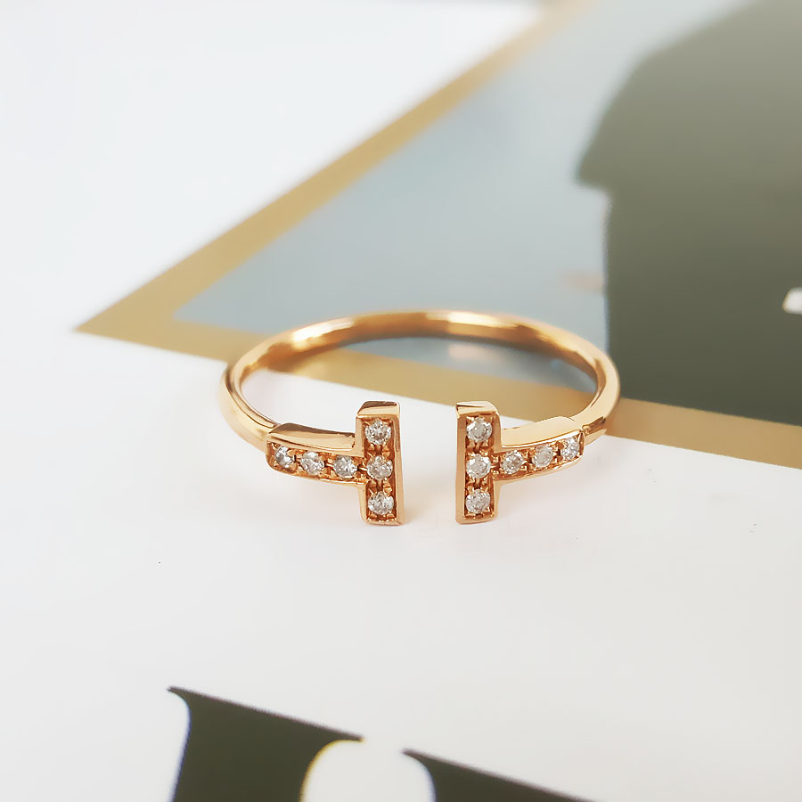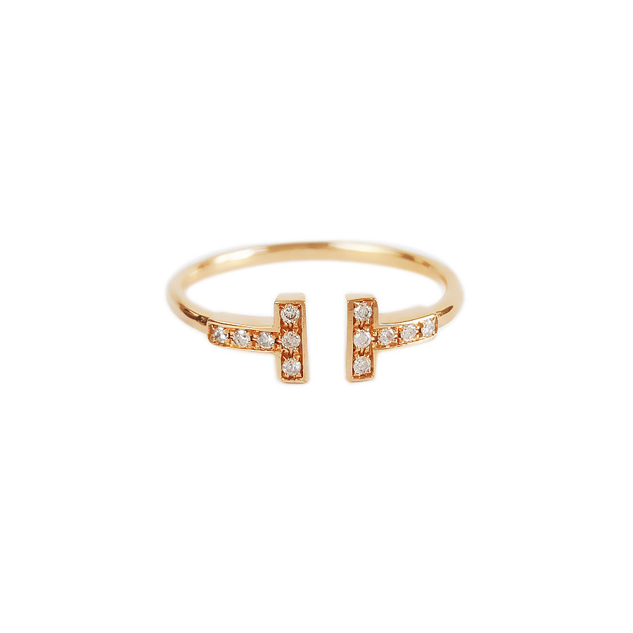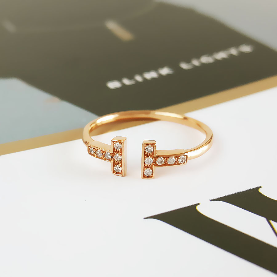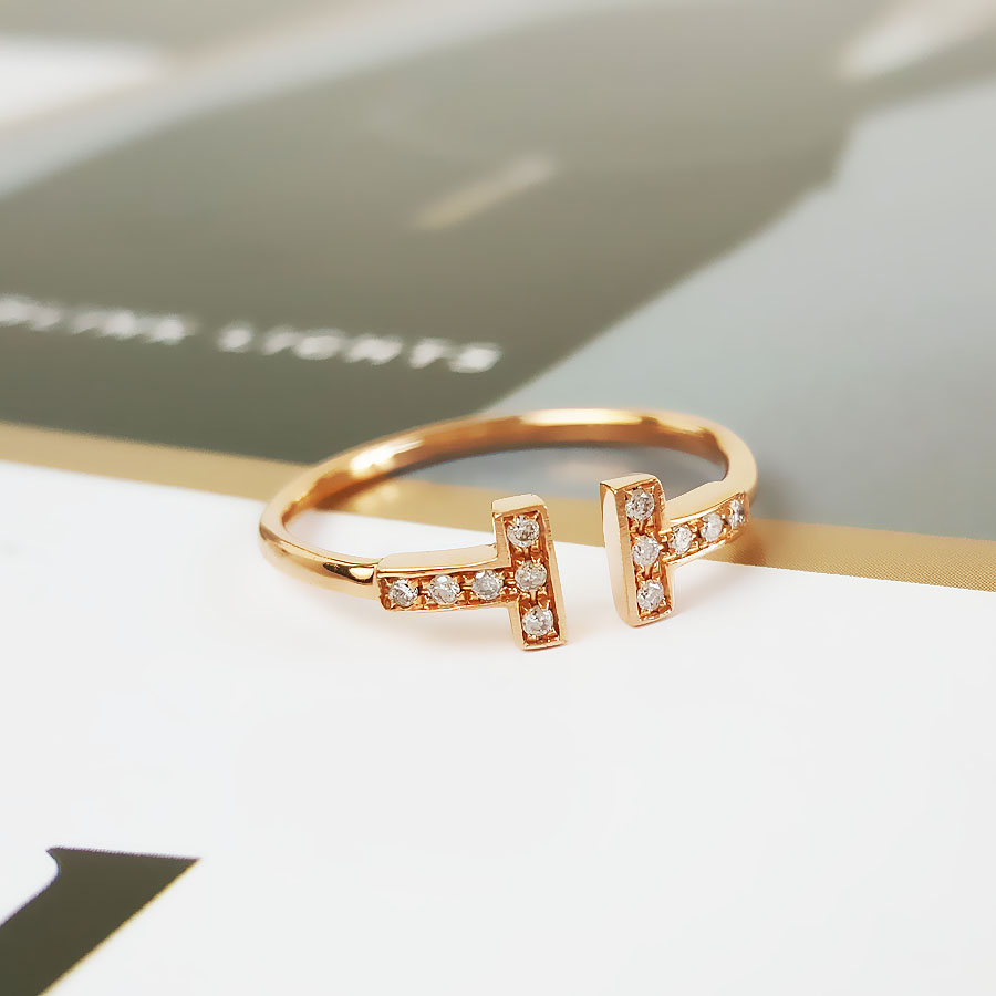 款式 | AU750玫瑰金时尚经典定制款双T钻石戒指 |