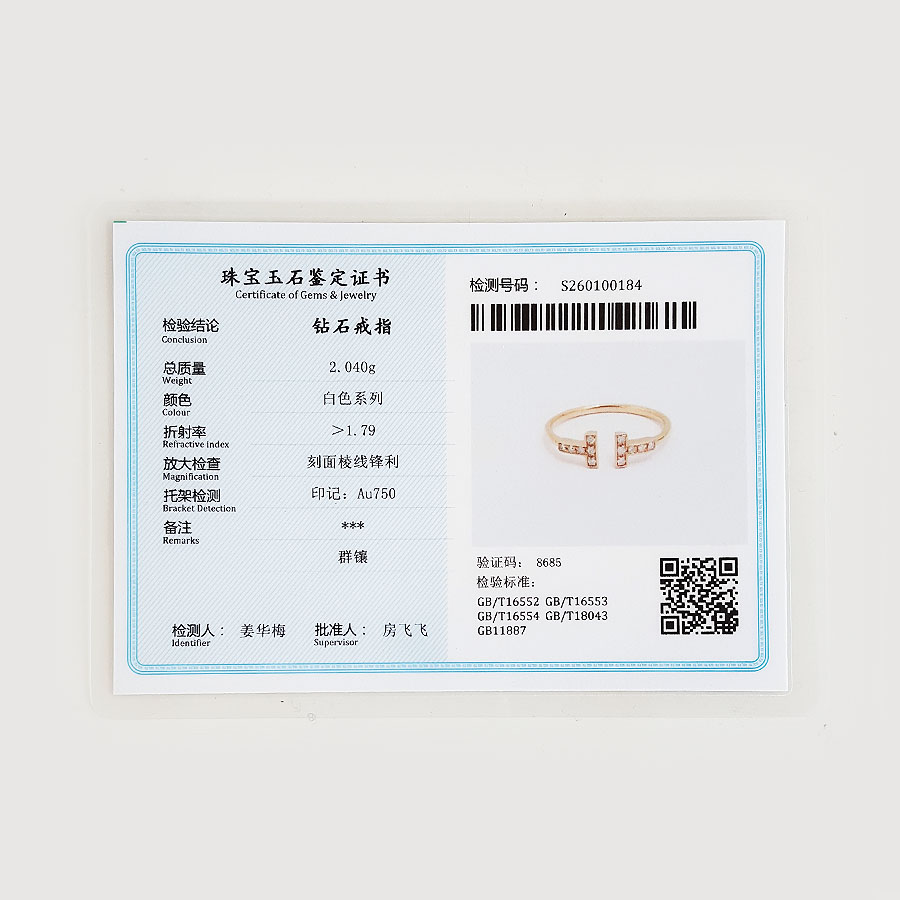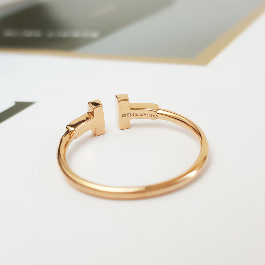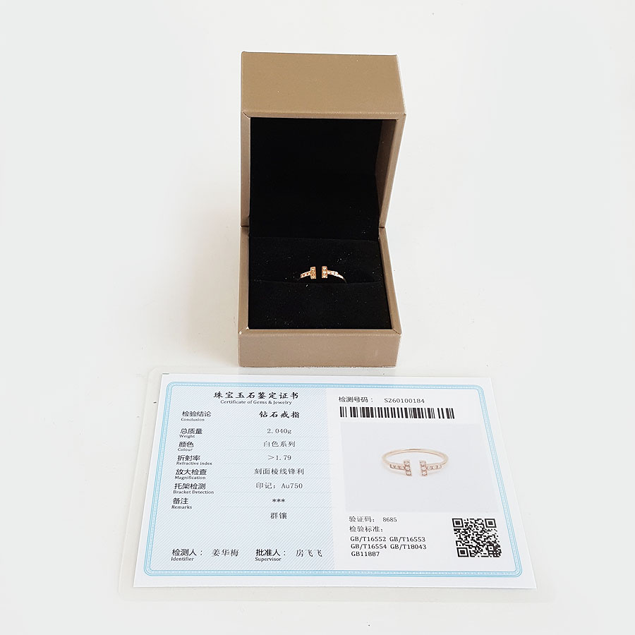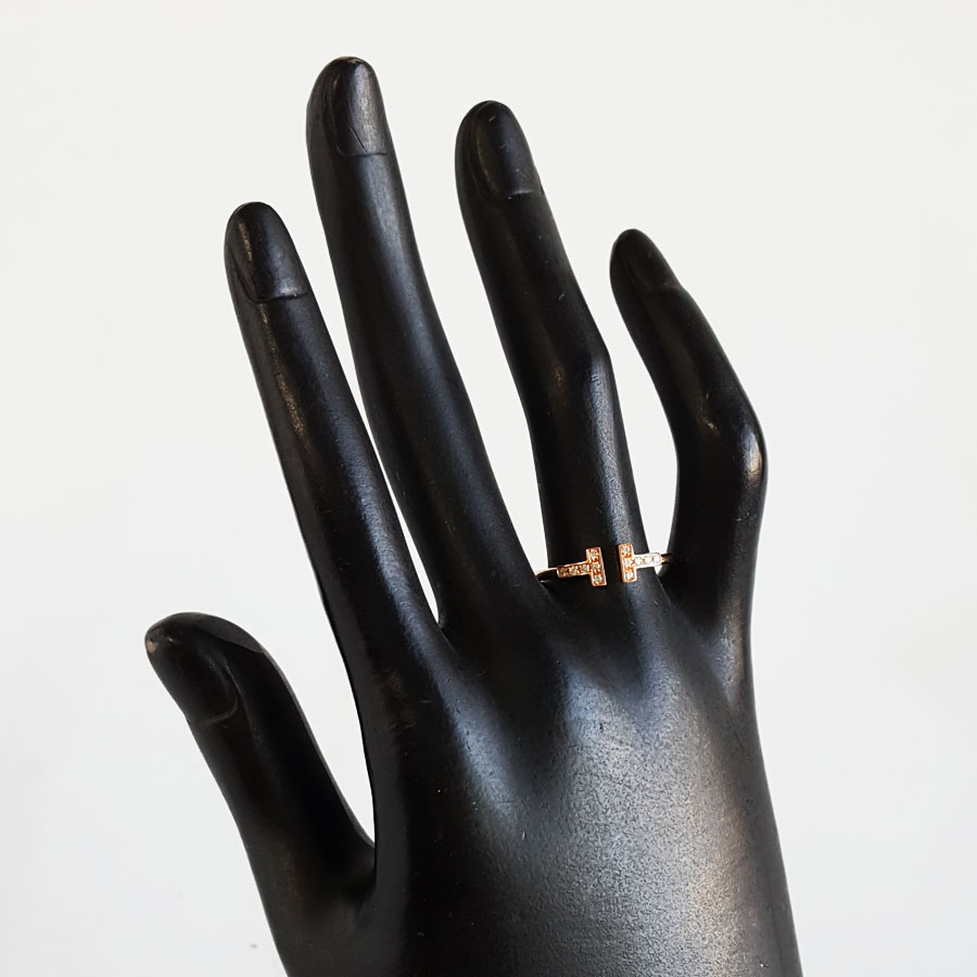 款式 | AU750玫瑰金时尚经典定制款双T钻石戒指 |