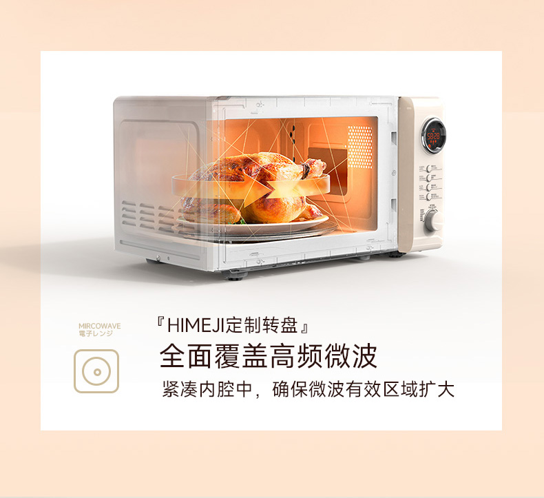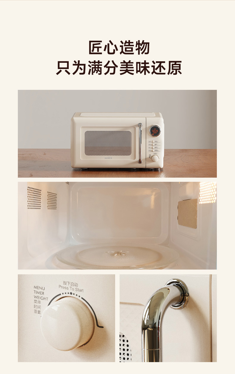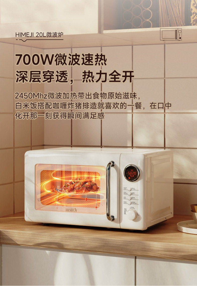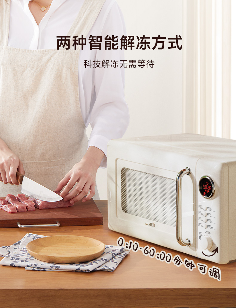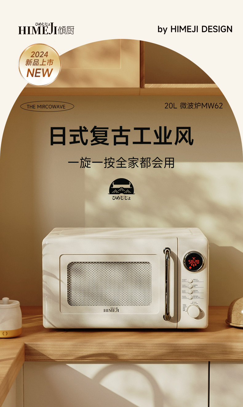 【日式复古设计 5档火力分类解冻 】倾厨日式复古微波炉MW62 旋钮启动 12道菜单 700W速热 转盘360度旋转加热 20L容量