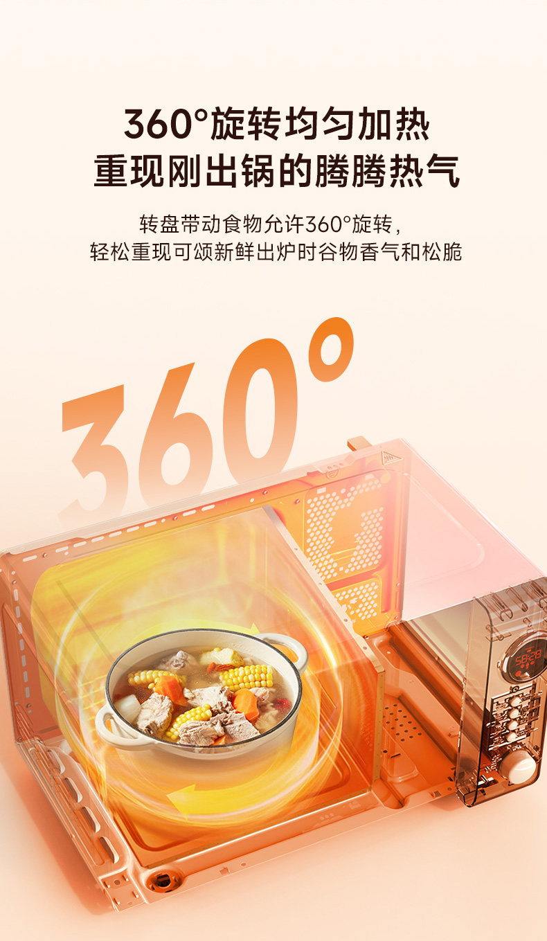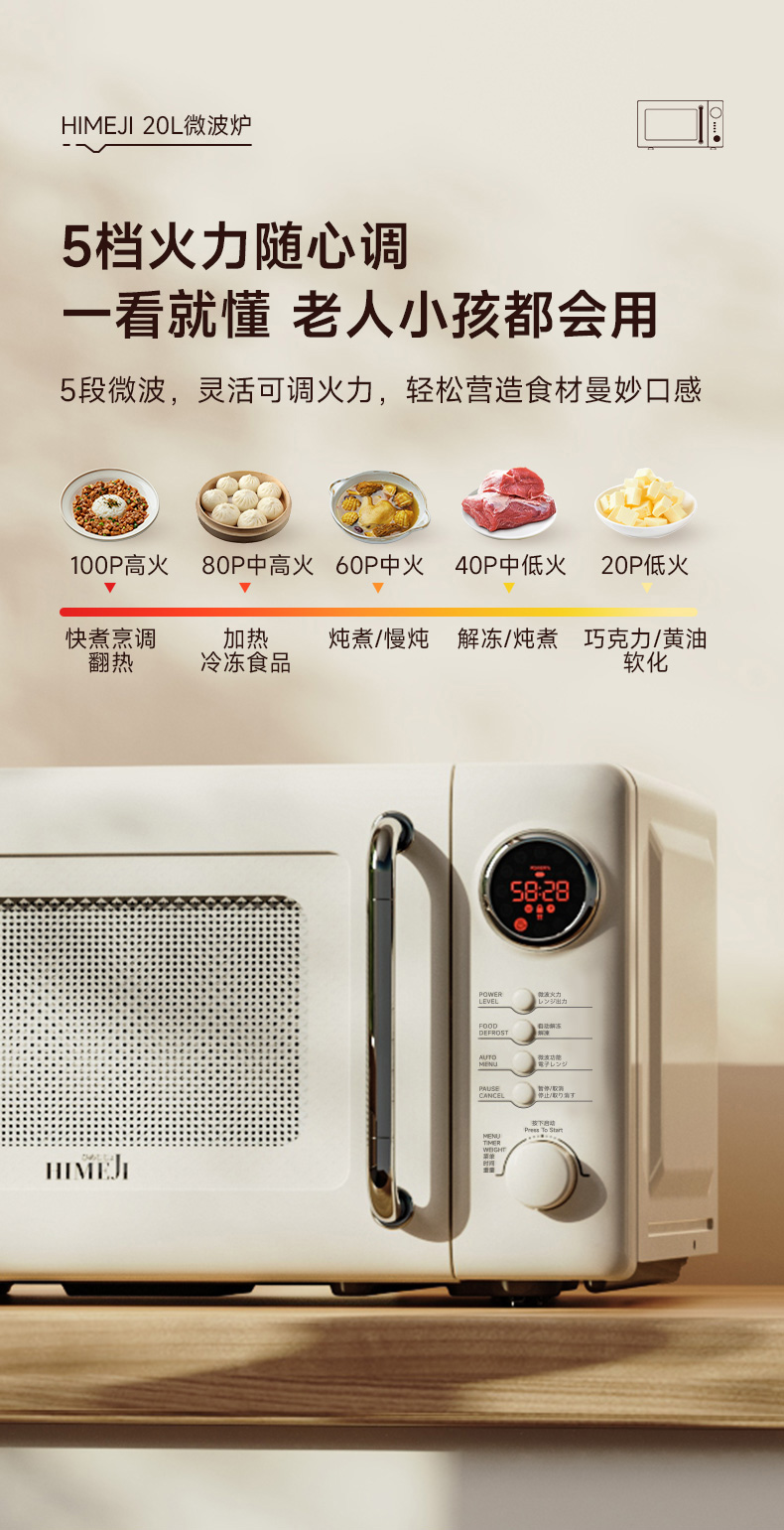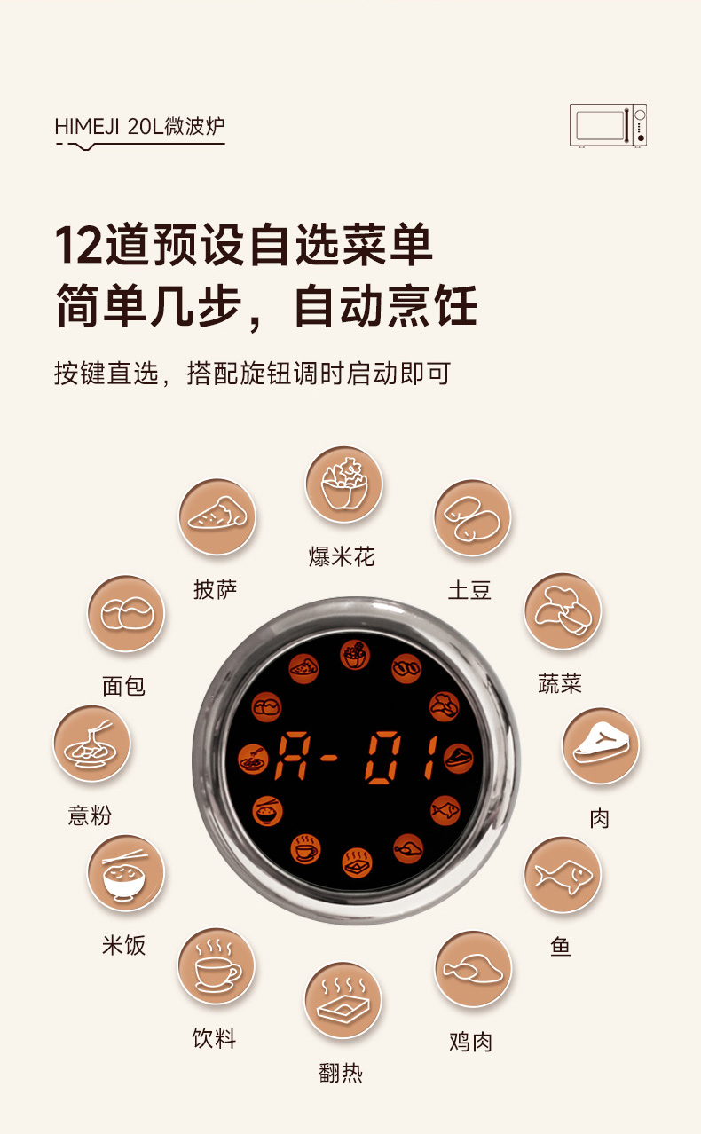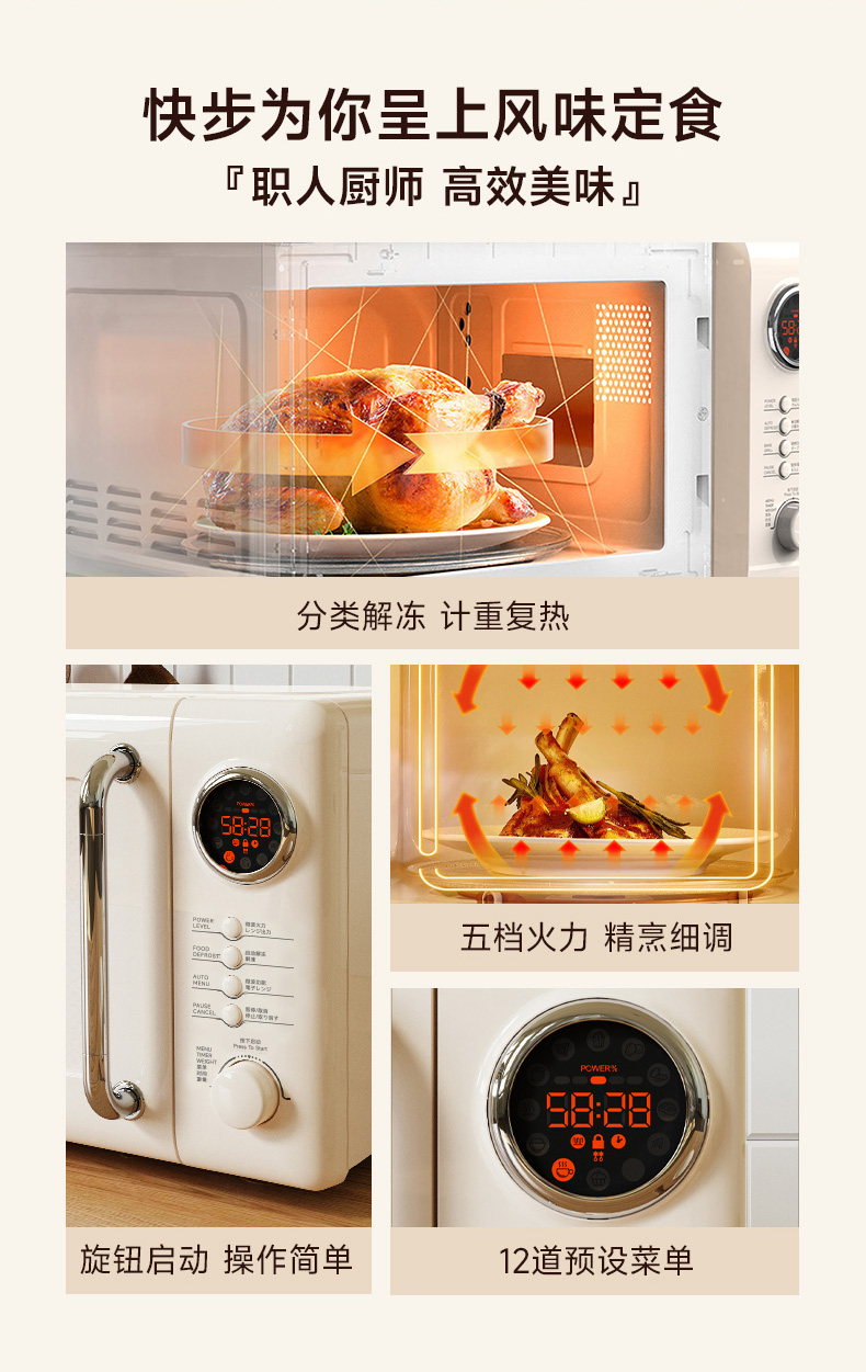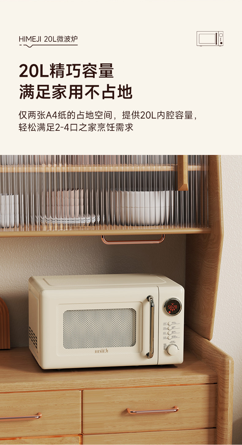 【日式复古设计 5档火力分类解冻 】倾厨日式复古微波炉MW62 旋钮启动 12道菜单 700W速热 转盘360度旋转加热 20L容量