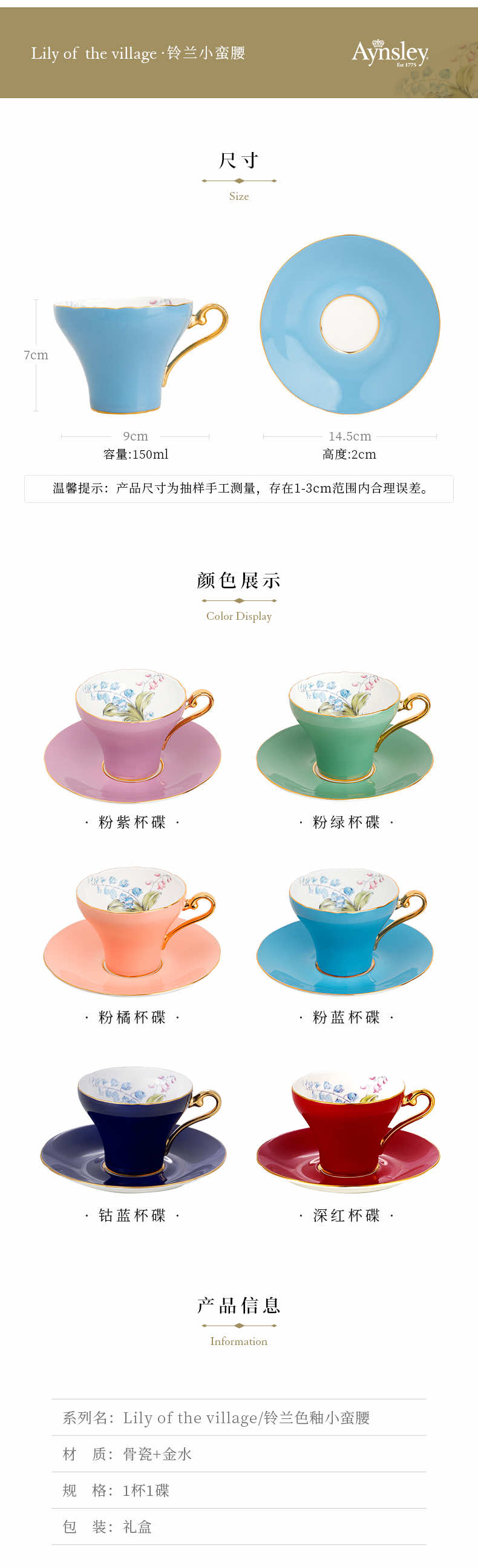 英国 Aynsley安斯丽 色釉铃兰系列小蛮腰咖啡杯