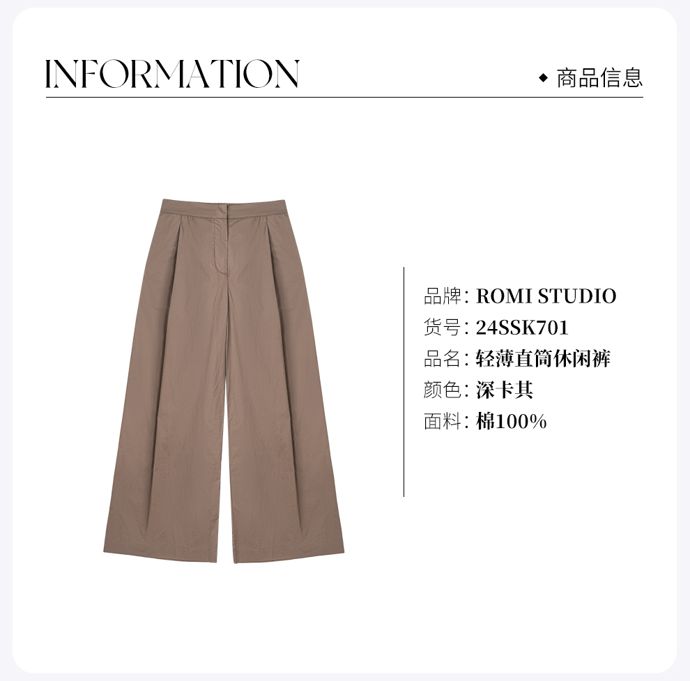 ROMI STUDIO "自由力量" 100%高支棉纸感轻薄直筒休闲裤24SSK701