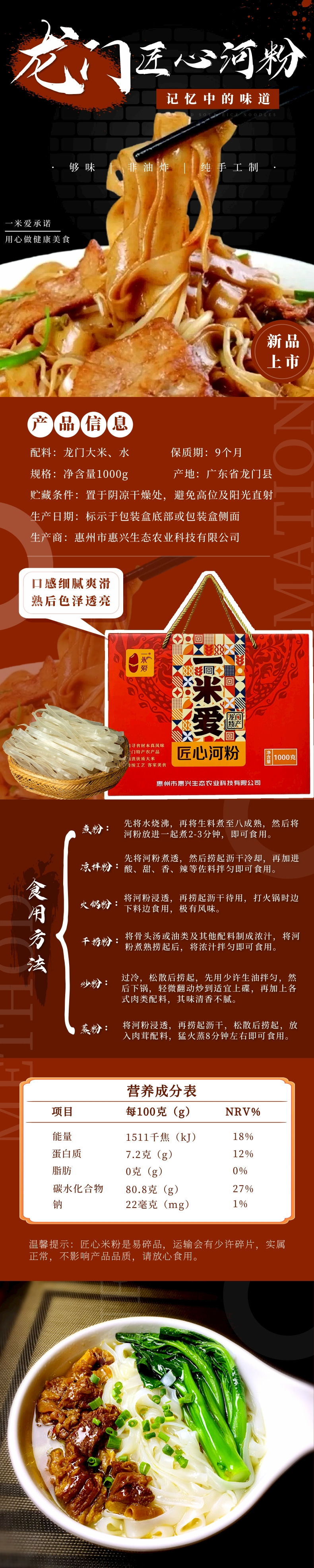 【顺丰包邮】广东惠州龙门一米爱匠心河粉1000g/盒