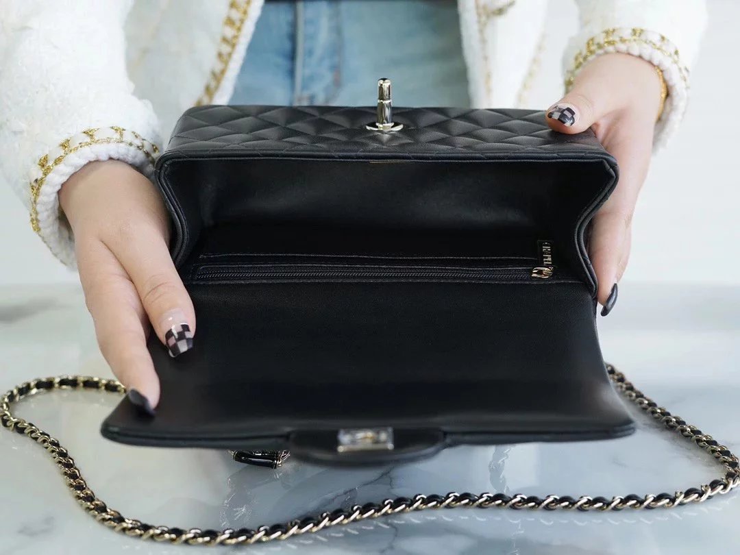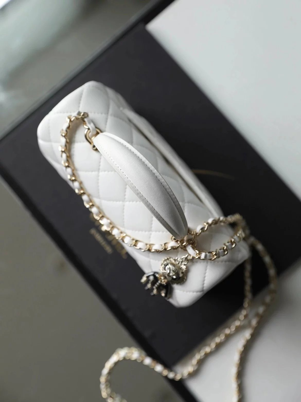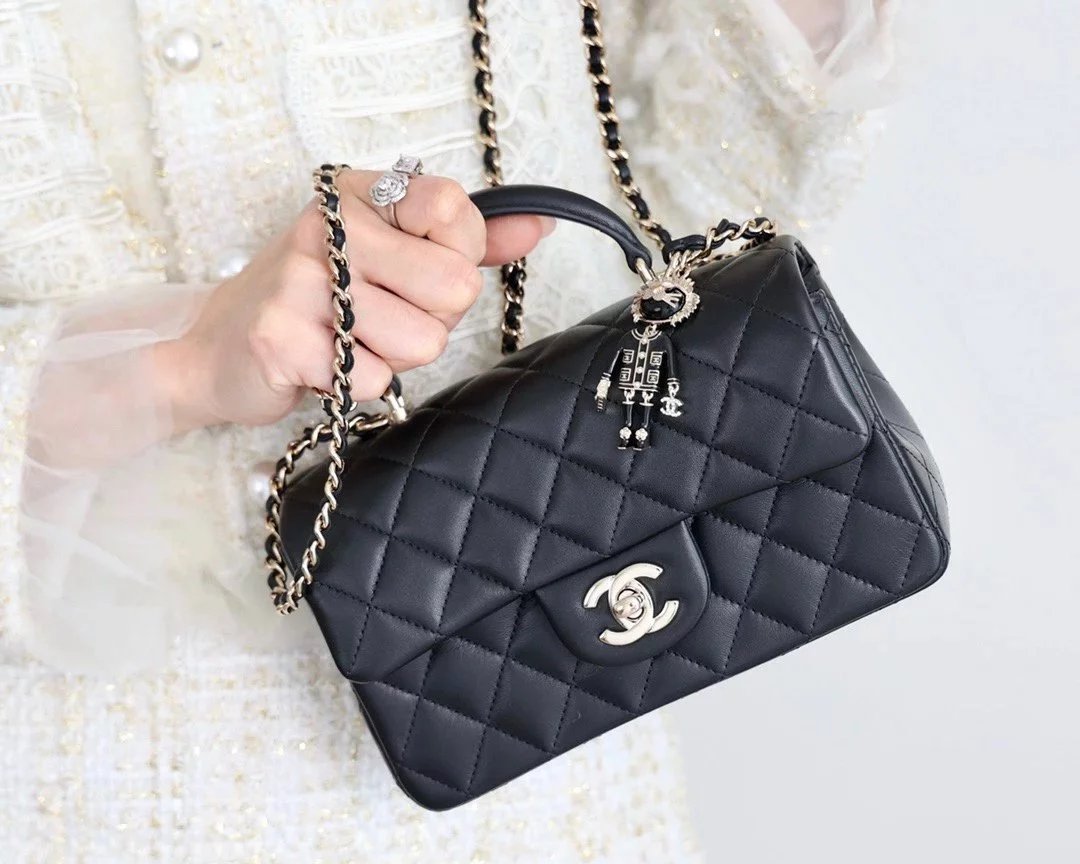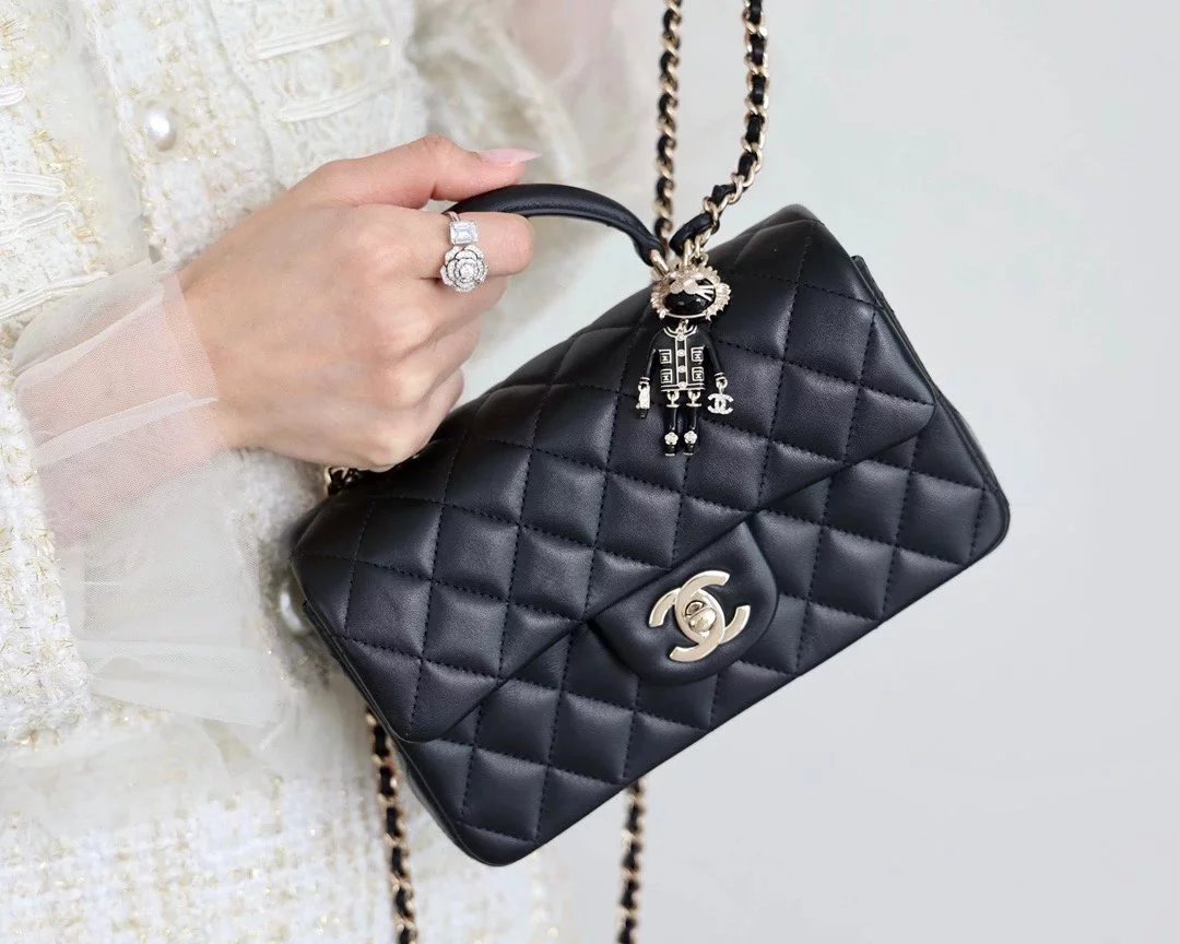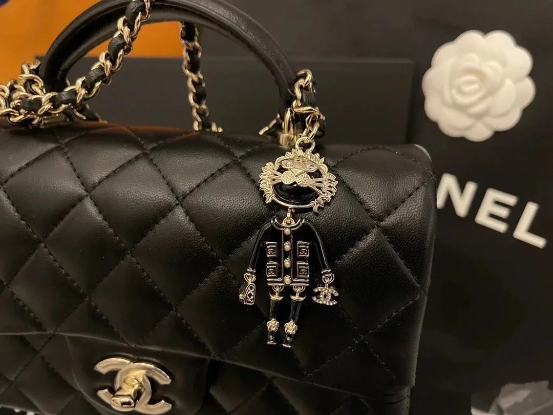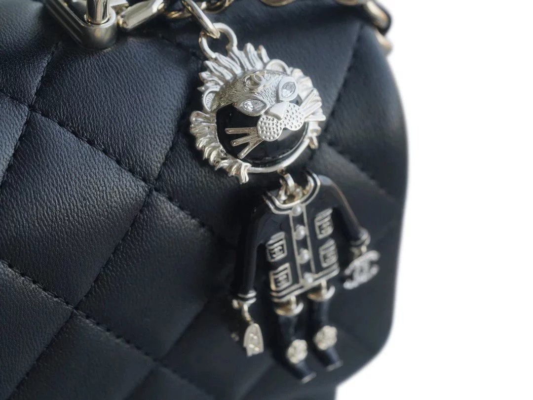 香奈-儿 Classic Flap CF 22S 狮子吊饰手柄款 小羊皮 口盖包单肩包斜挎包手提包 迷你 女款 黑色(HH)