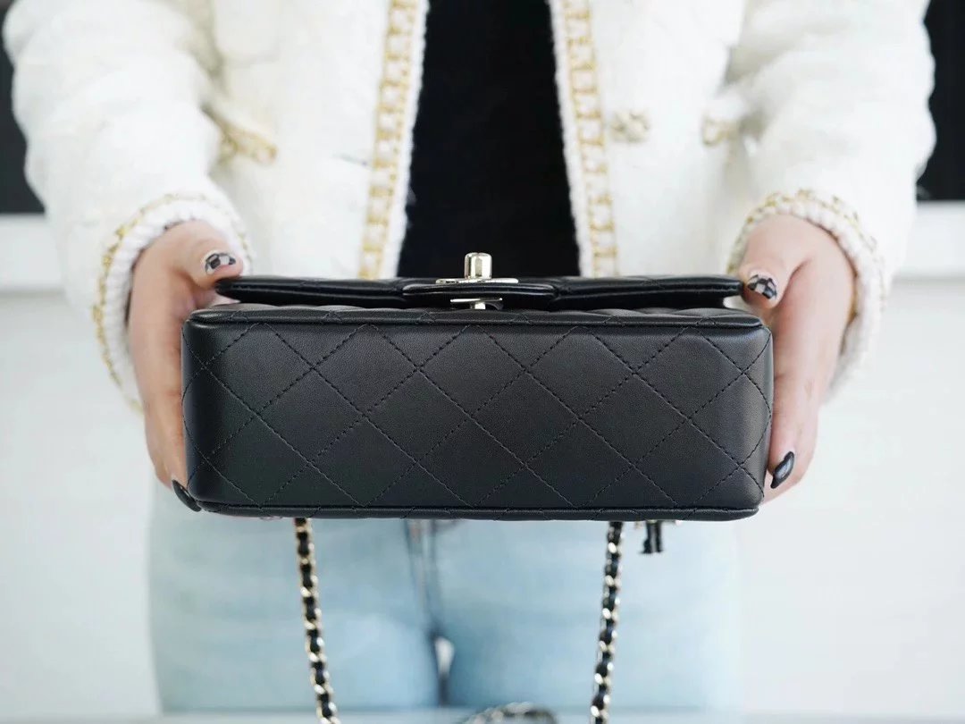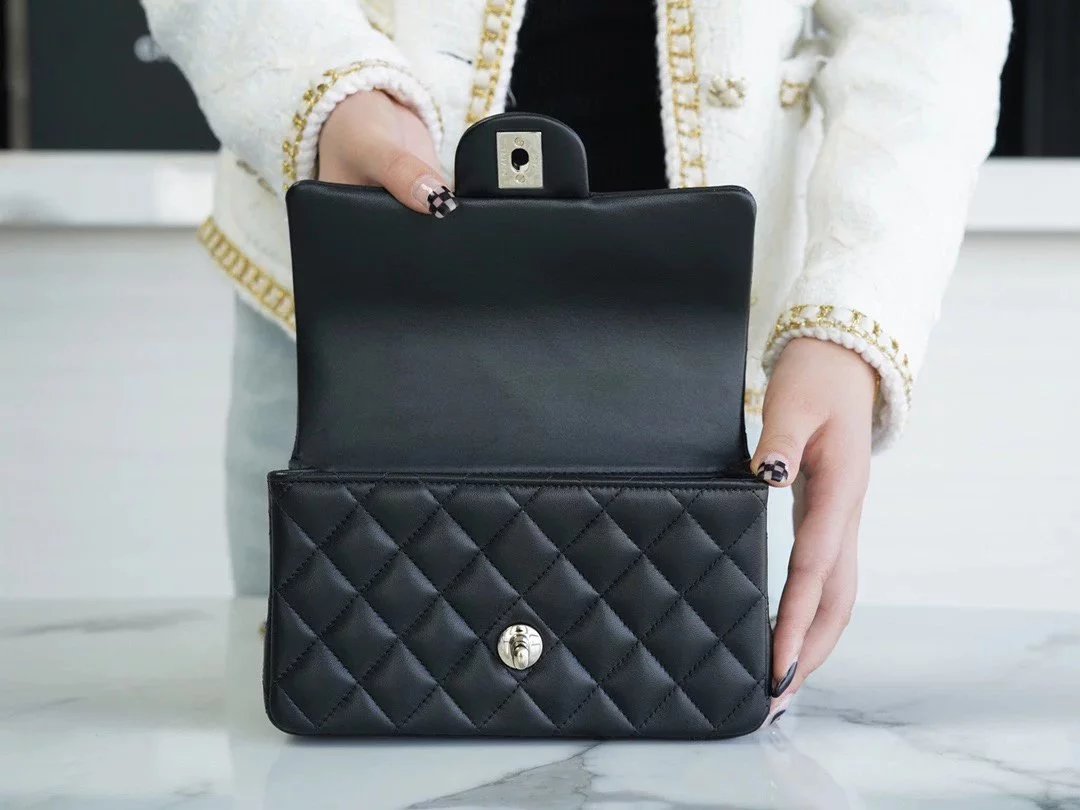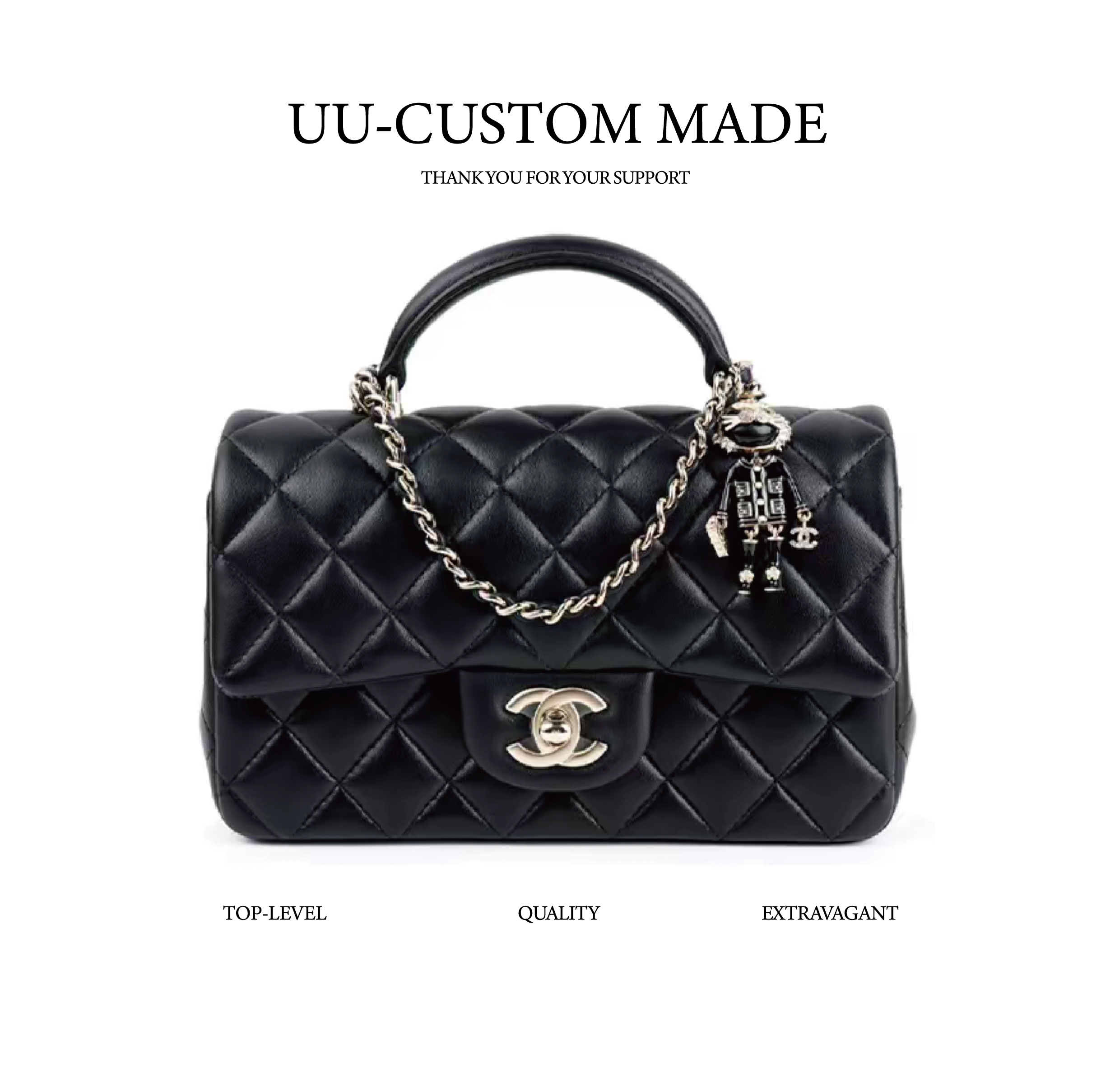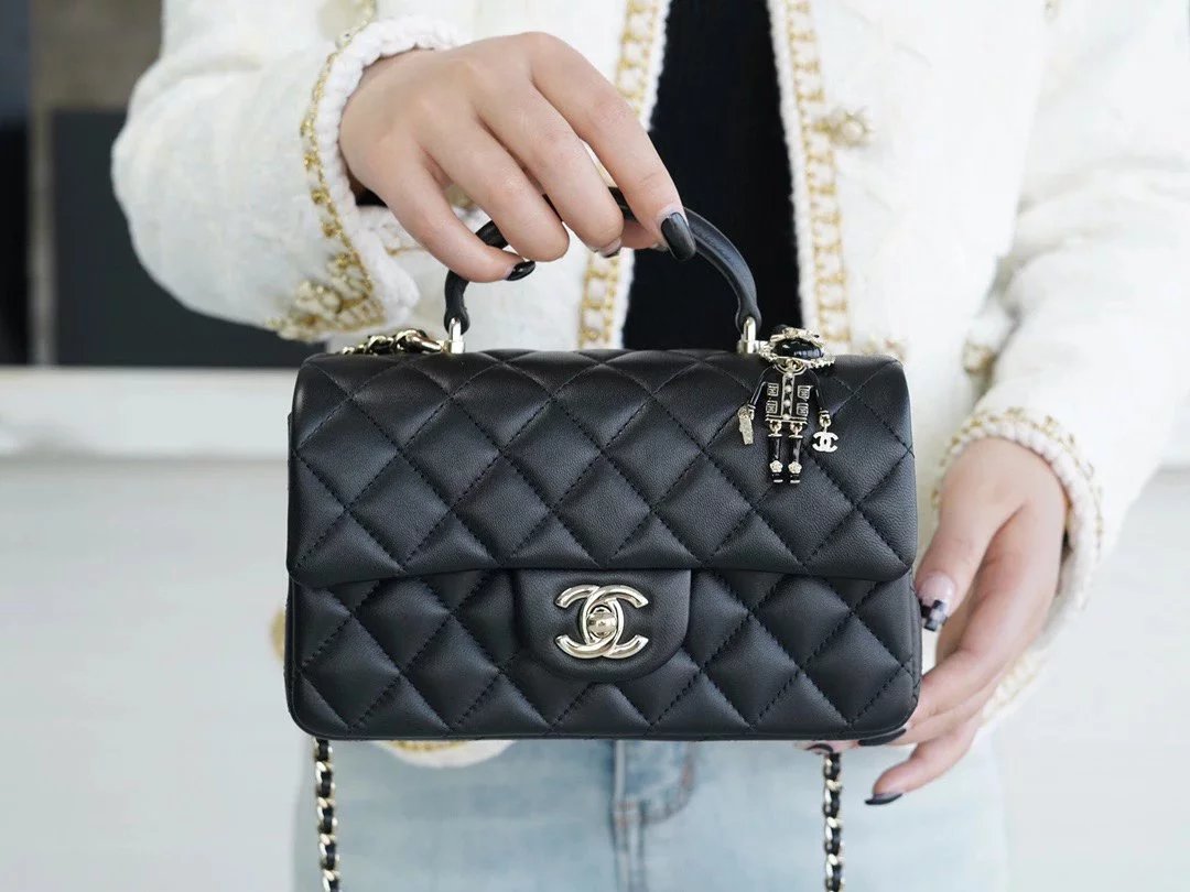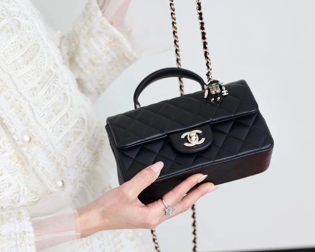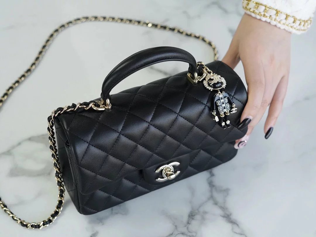 香奈-儿 Classic Flap CF 22S 狮子吊饰手柄款 小羊皮 口盖包单肩包斜挎包手提包 迷你 女款 黑色(HH)
